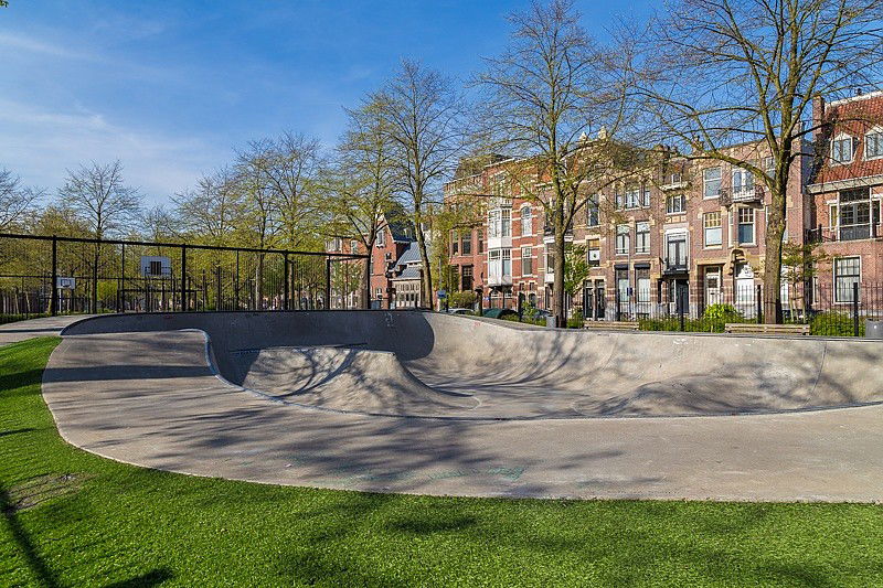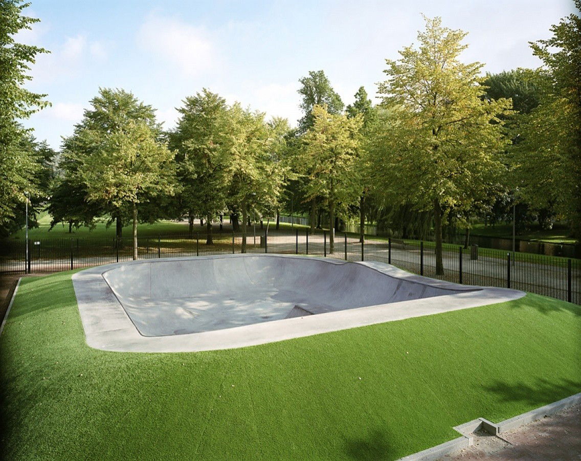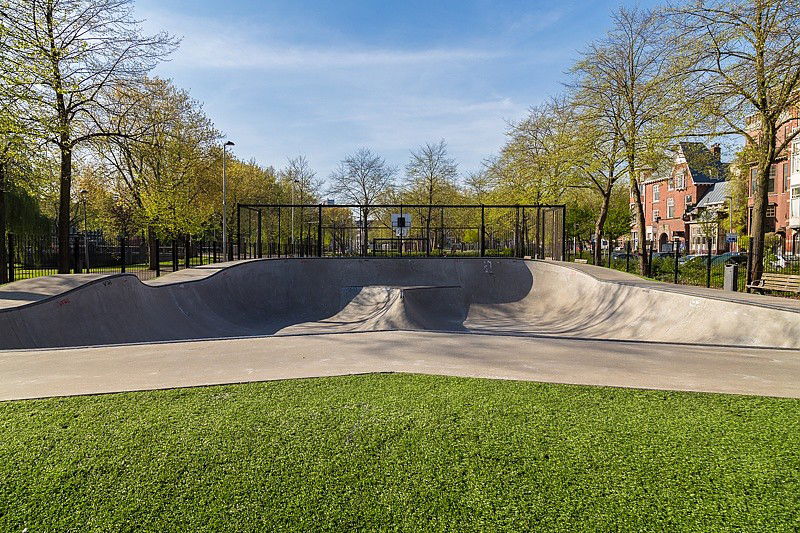 The Heemraadssingel Skatepool in Rotterdam is the city's first concrete skate bowl, built in 2012. This project was initiated by local skaters, including Alexander Keizer, Tijs Niessen, Mink Steekelenburg, and Victor Verhagen, who saw an opportunity to revitalize a neglected playground and basketball court in the area. The pool was designed and constructed in collaboration with SkateOn and LAGADO architects, and it features a unique freeform design that integrates smoothly into the landscape.