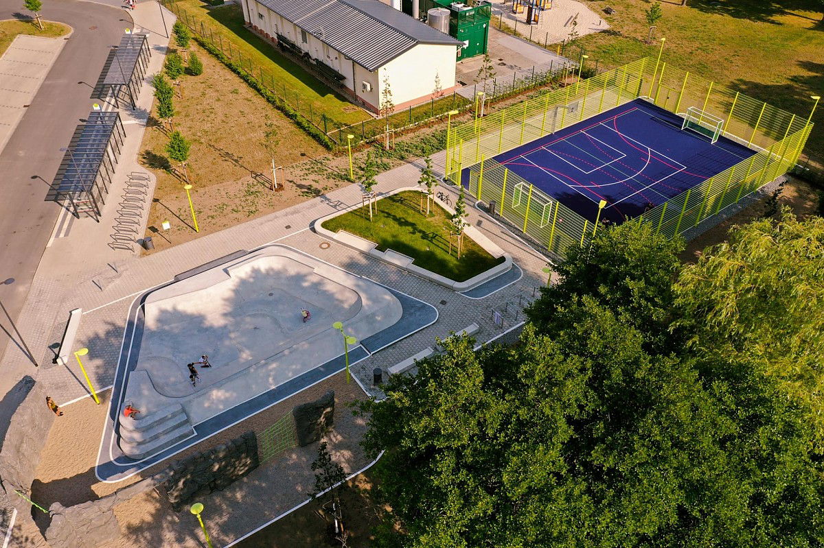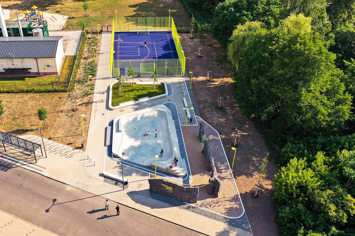 Herzberg skatepark came out really nice regarding looks and surroundings of the place, despite the lack of crazy extra features and relatively moderate size of around 250m2. On the backwalls there are a few small street features like a small wallie ledge, manny pad and bank. Herzberg skatepark was designed and built by Yamato Living ramps in 2021.