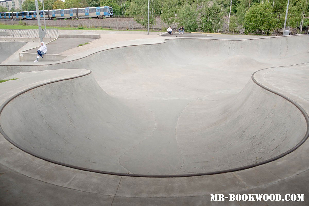 This is the largest skatepark in Stockholm. With a system of bowls that are all connected, from the top where they are smaller all the way to the cradle and yet another bowl. It has a + 300 feet ditch a red freestyle area. Now used as a street course. A small kiosk/café & parking for around 60 cars. Take the subway from downtown and in 25 min you’re there.