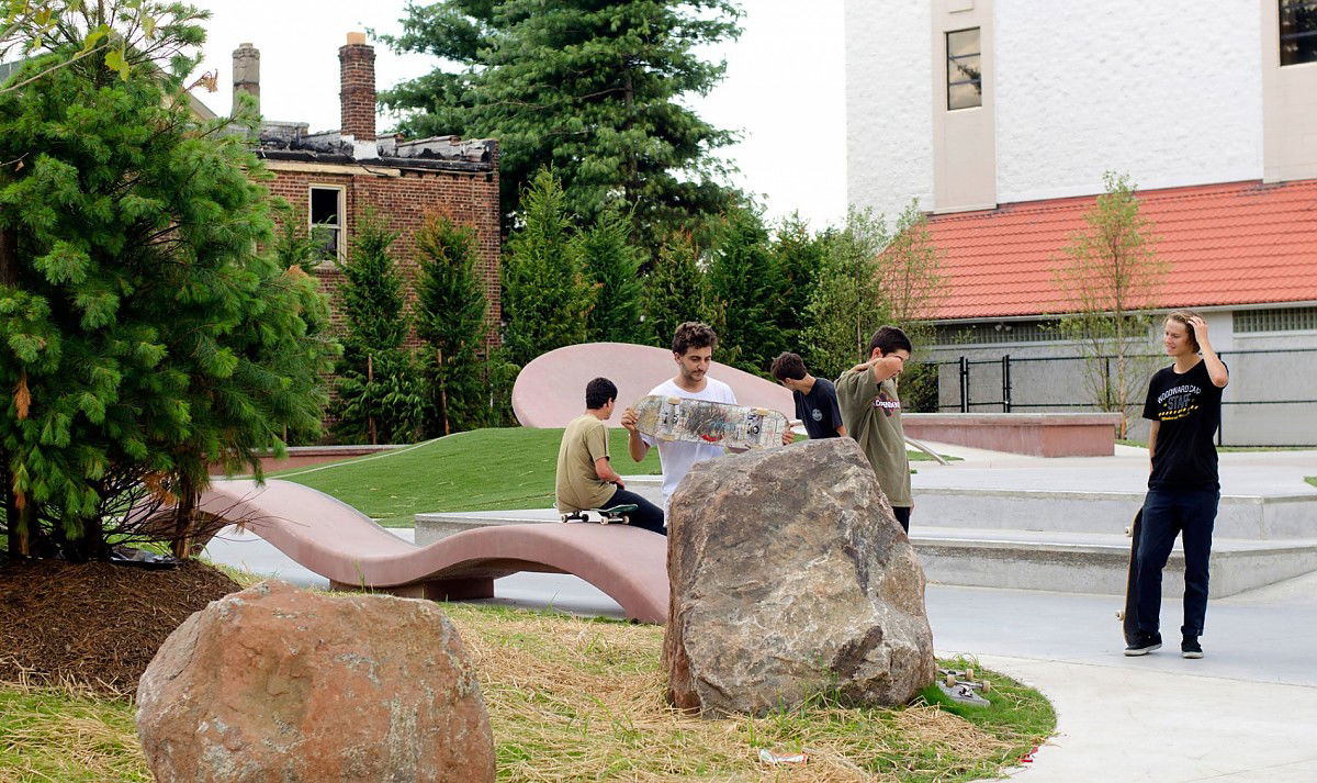 The park was designed to cater to skaters of various skill levels, with a flowing layout that integrates ledges, rails, stairs, and other street-style features. This ensures the space is accessible to beginners while also challenging enough for more advanced skaters. Holland Skate Plaza was intended to be a multi-use space, inviting non-skaters to appreciate the sculptural elements and observe the action, making it a welcoming community space.