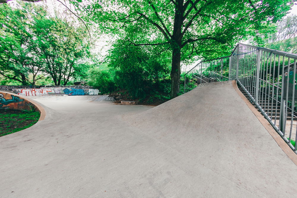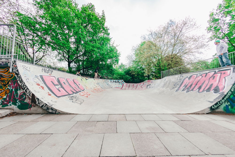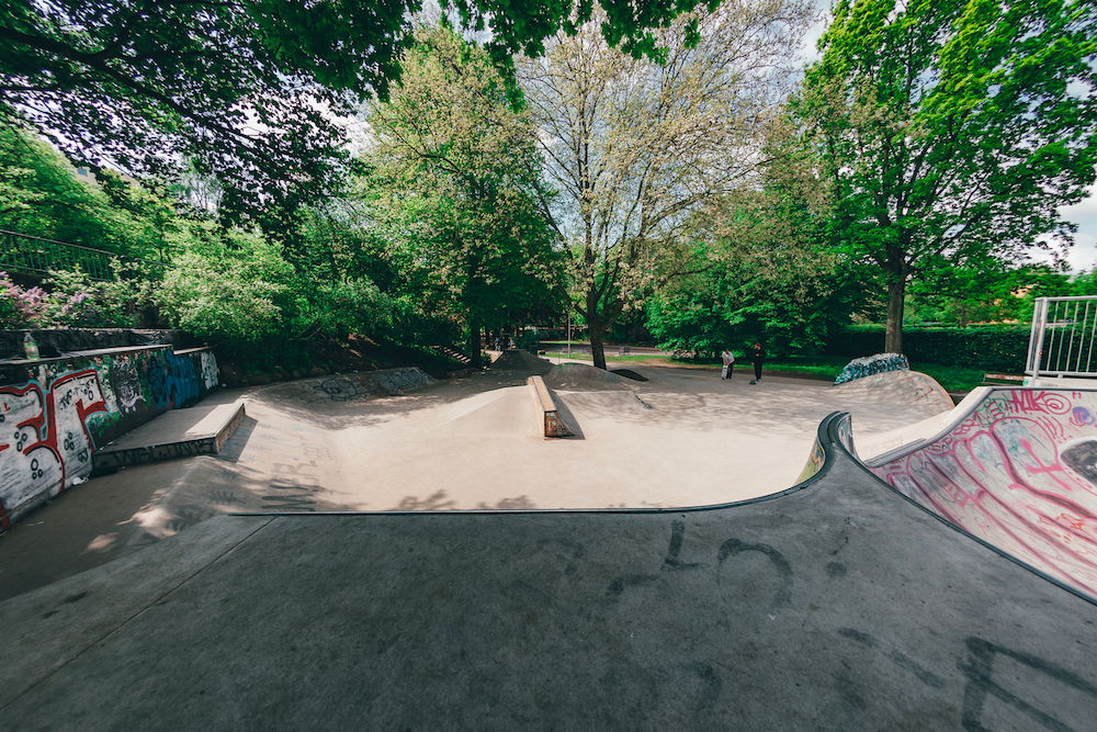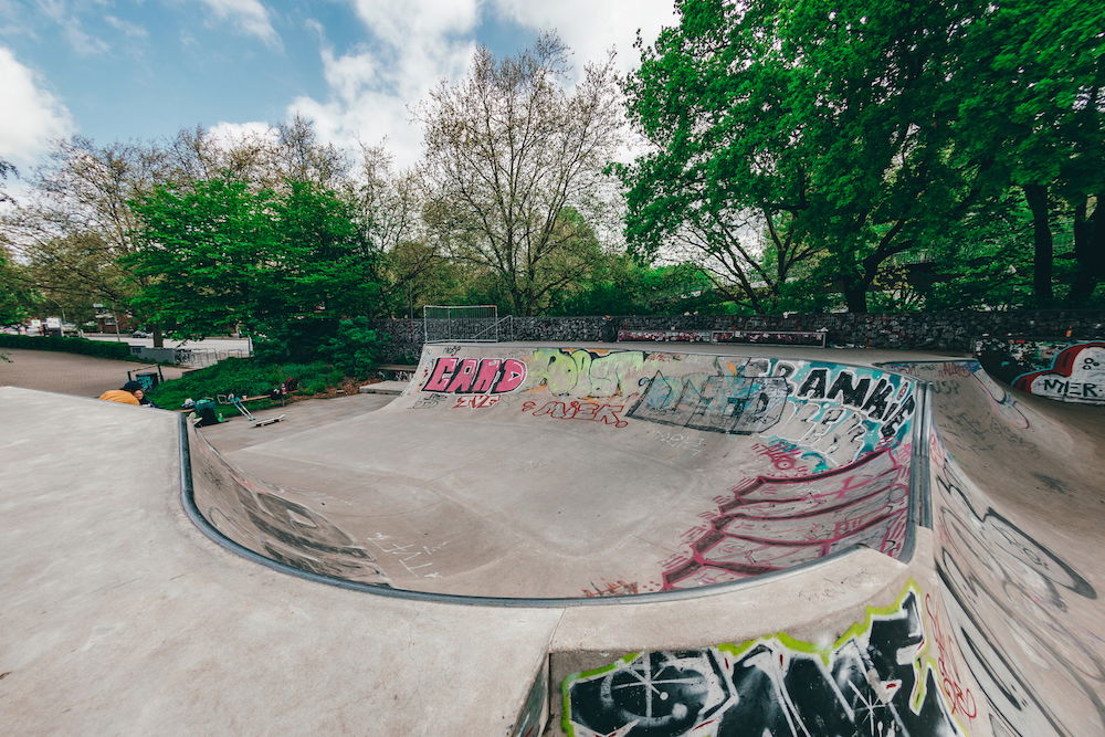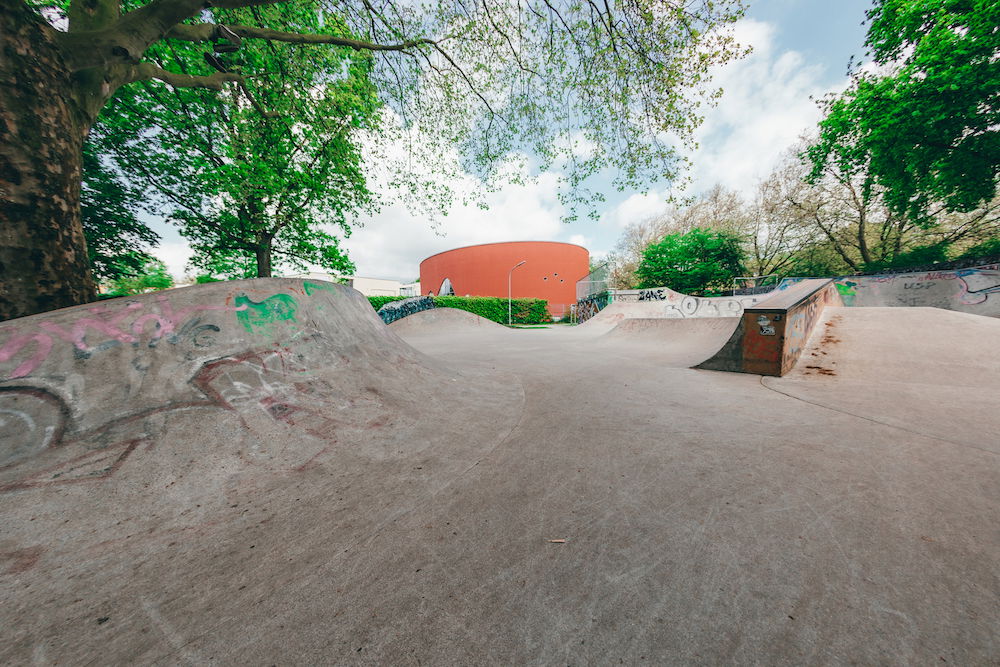 Holstenstraße Skatepark is a plaza-like concrete park with plenty of banks and transition, an open bowl and a halfpipe.