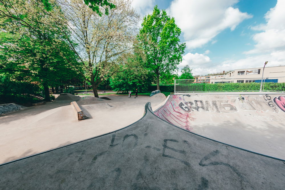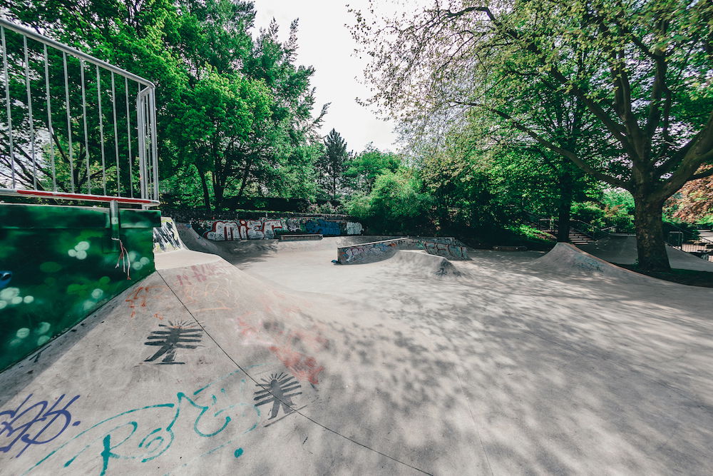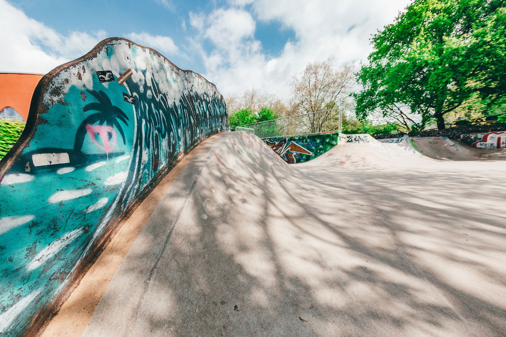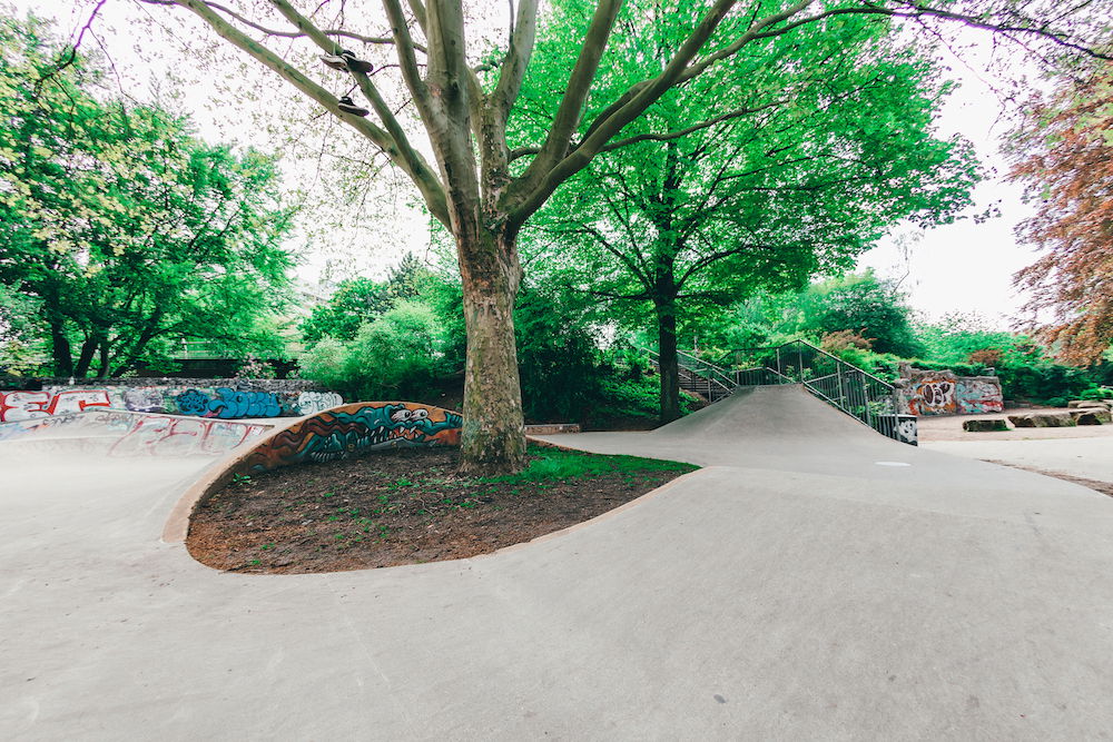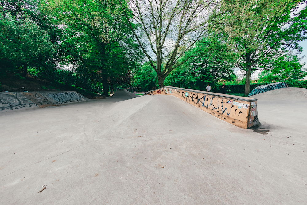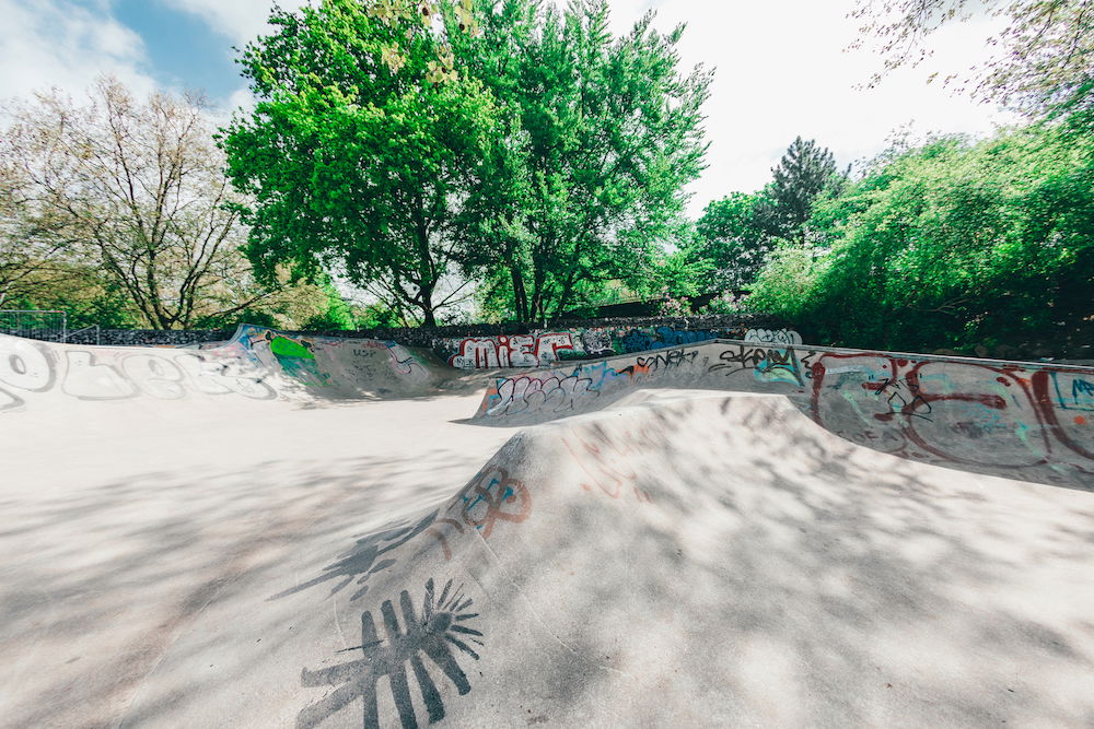 Holstenstraße Skatepark is a plaza-like concrete park with plenty of banks and transition, an open bowl and a halfpipe.