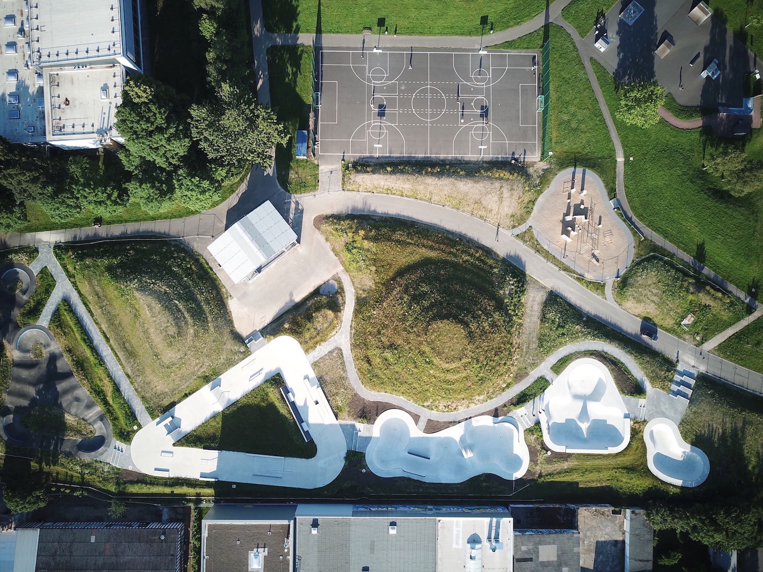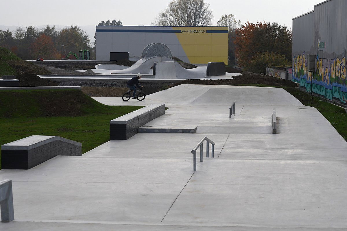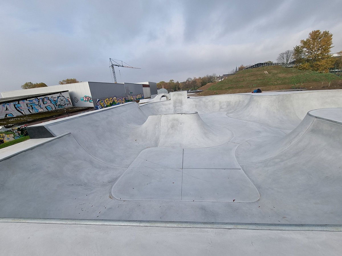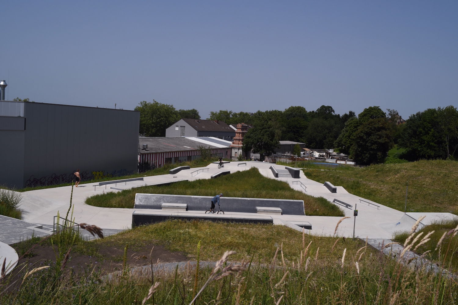 The park is called Skatepark Hombruch it is built on an old mining area and symbolizes the industrial aesthetic common to the area. It includes a snake run with tunnel, one large bowl with pool coping and one smaller bowl with steel coping. The street course is around 900 m² and has all kinds of fun features like a china bank and our machine gun obstacle. The park also includes two pumptracks, basketball, calisthenics, parkour and a 14 m tall climbing wall.