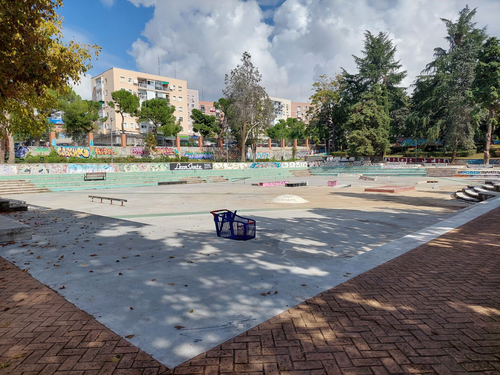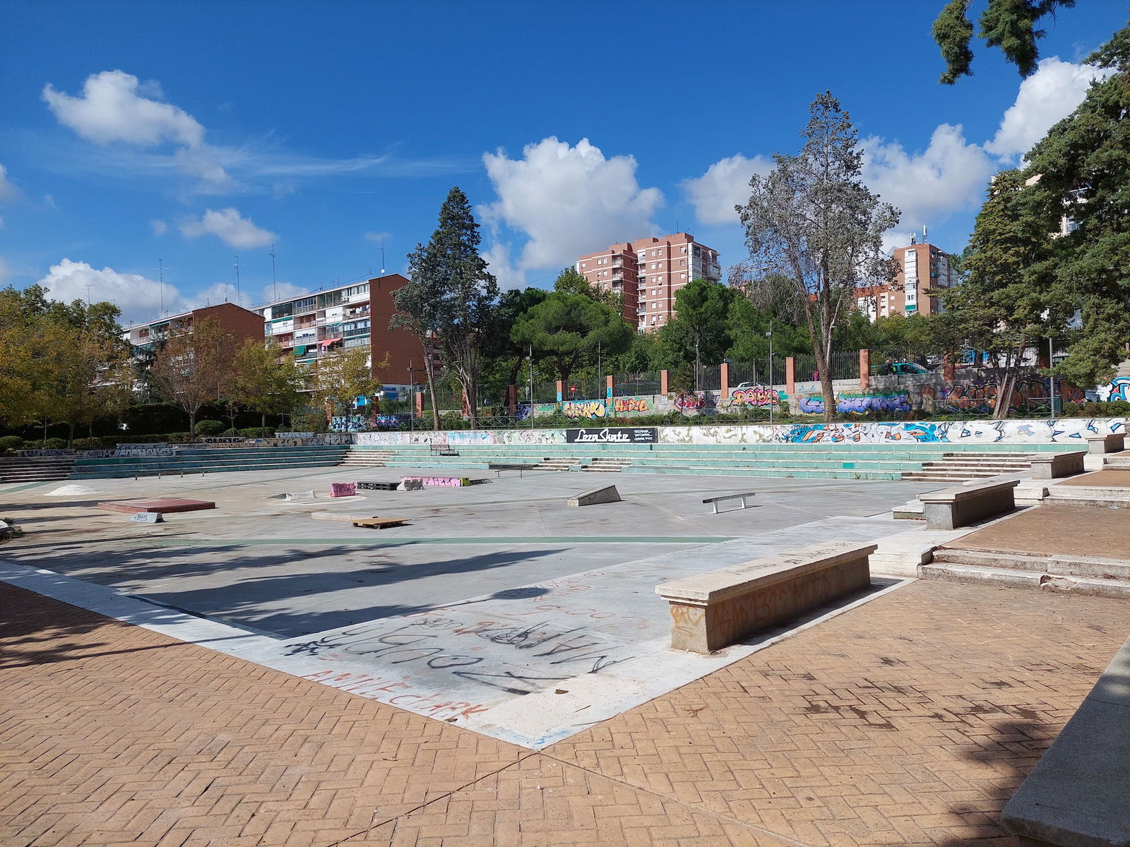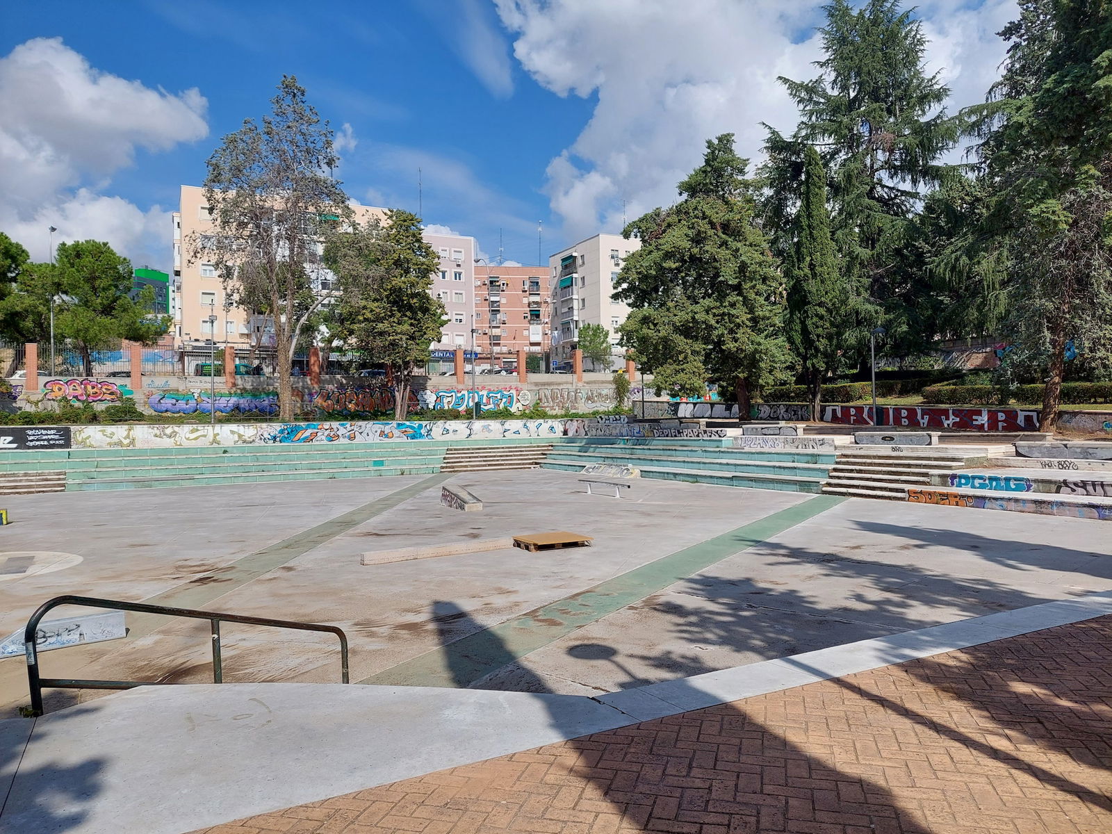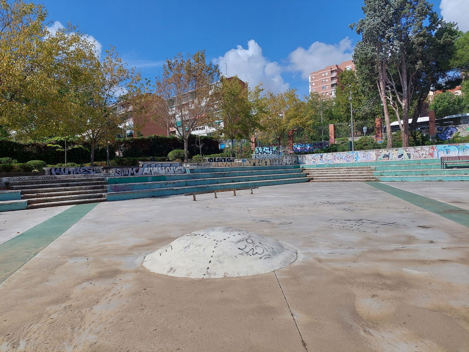 Hortaleza skatepark is a lighted skate plaza in Madrid.