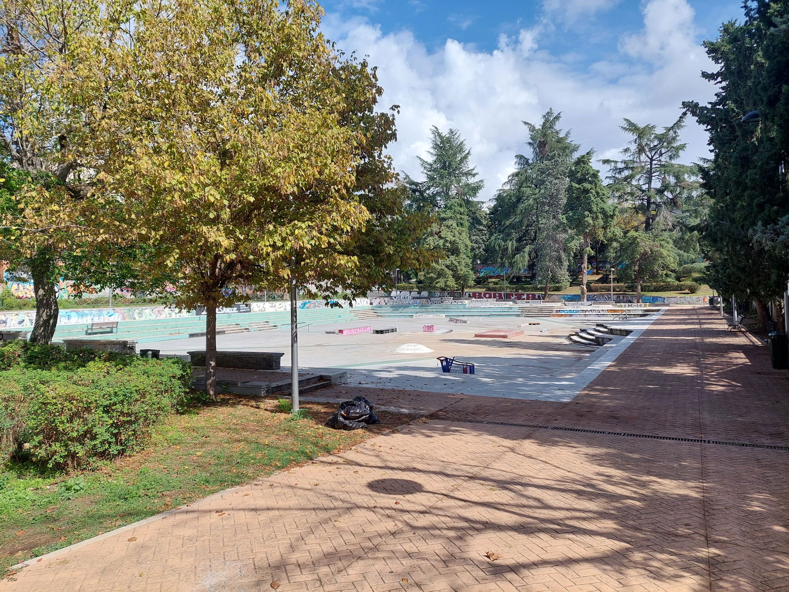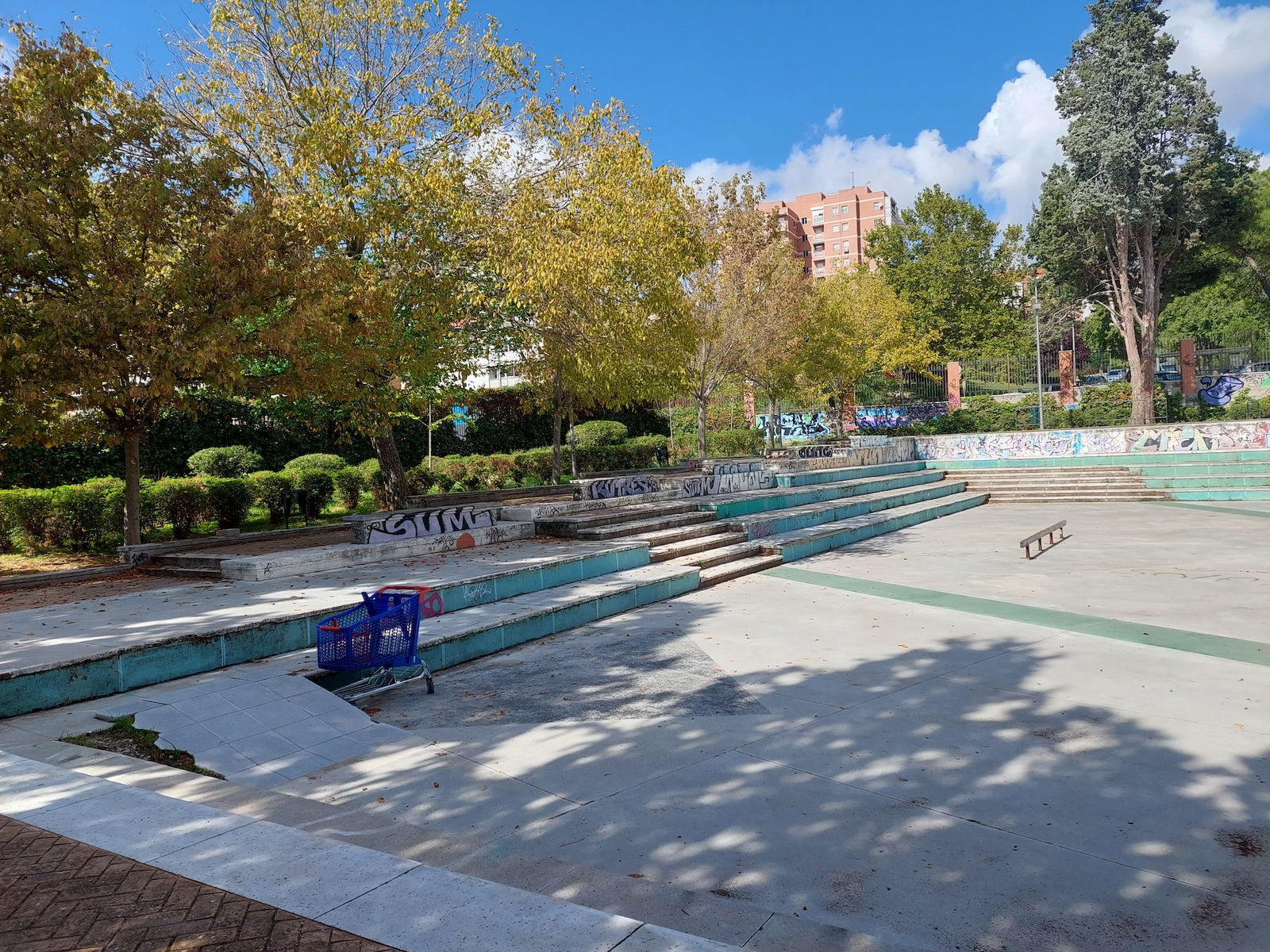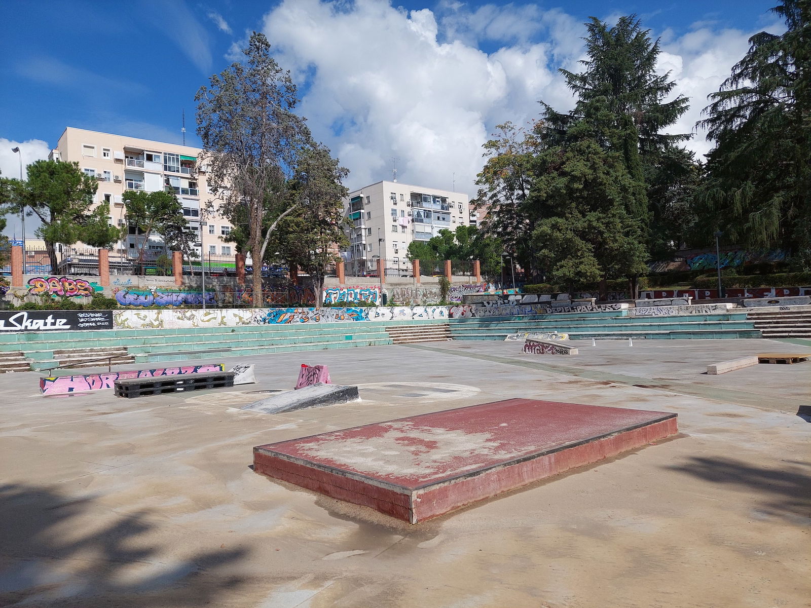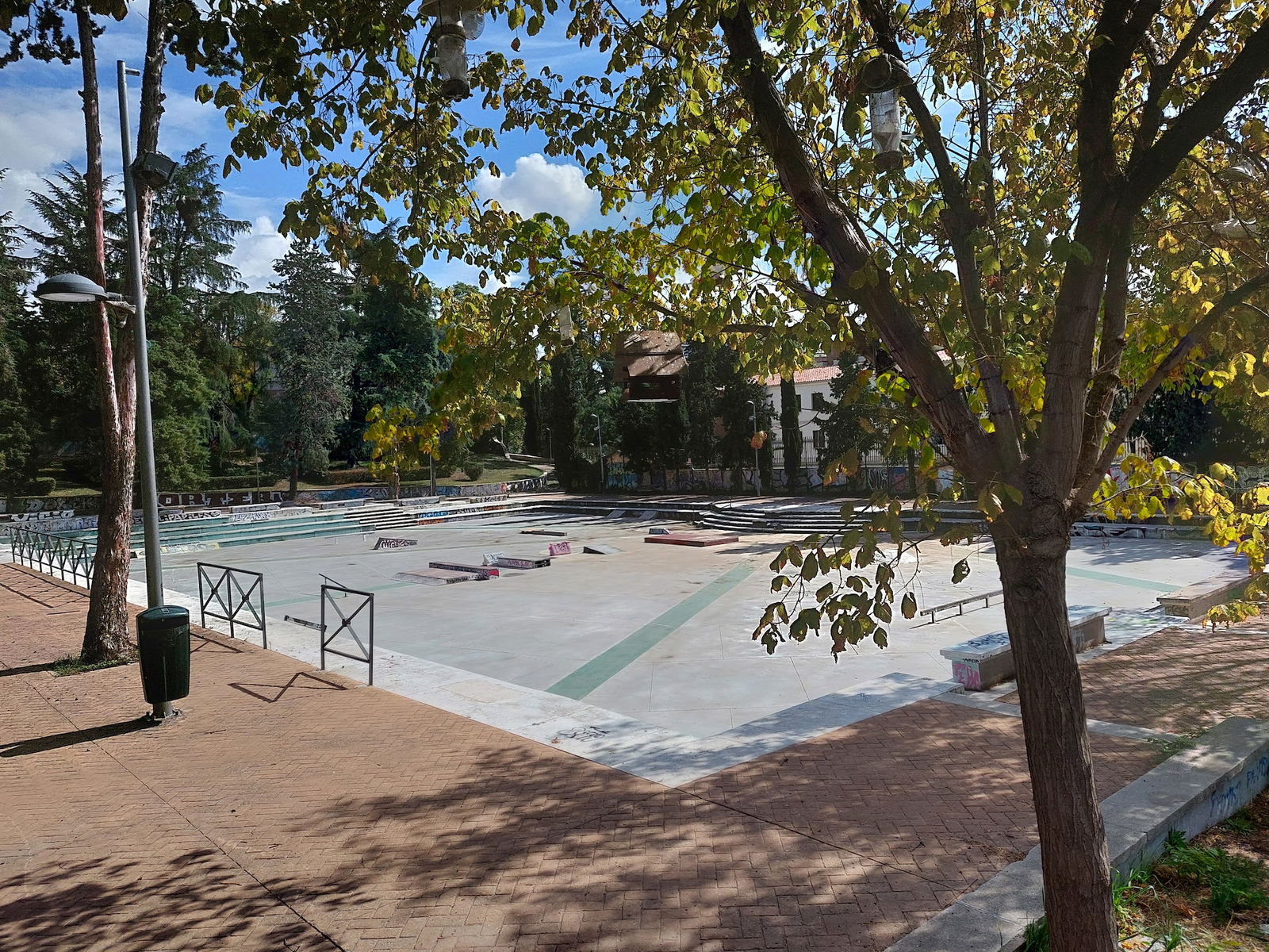 Hortaleza skatepark is a lighted skate plaza in Madrid.
