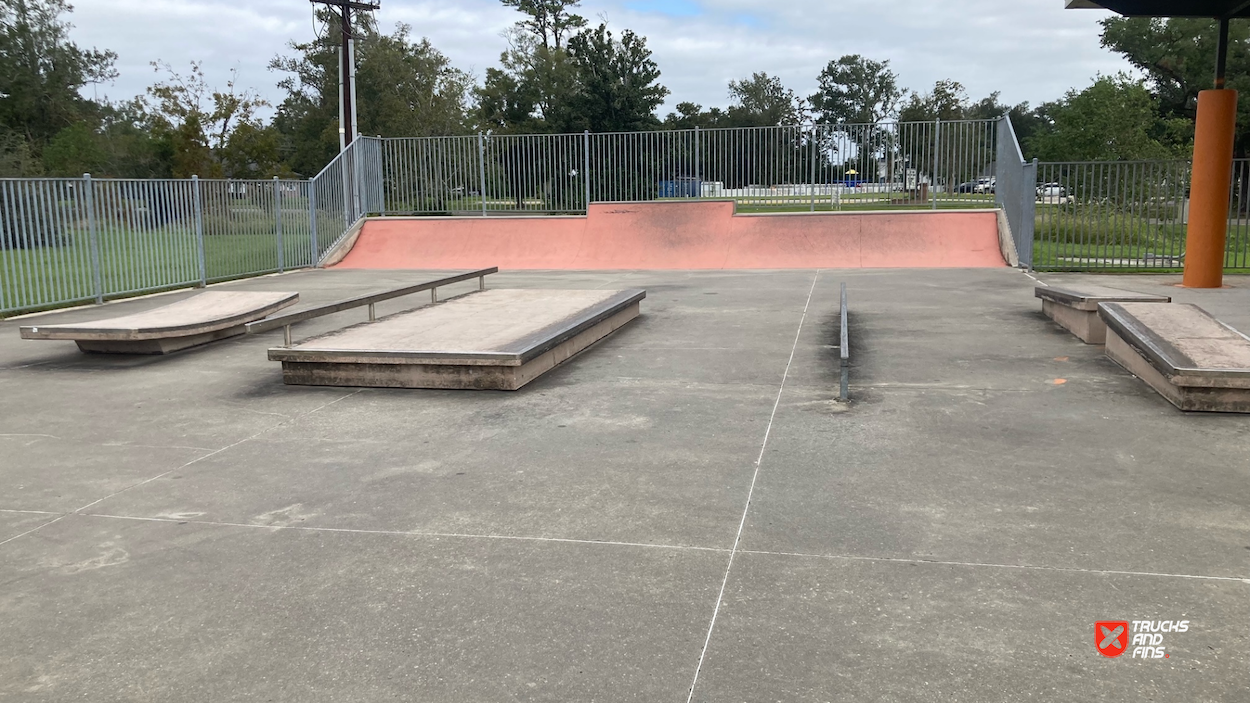 Houma Skatepark, also known as Fireman’s Skate and Bike Park, is a 15,000-square-foot concrete skatepark located in Houma, Louisiana. It was completed in 2015 and built by SpohnRanch, a well-known company specializing in skatepark design and construction. The park features a combination of street and transition elements, including an open bowl, quarterpipes, handrails, stairs, hubbas, ledges, and a mini snake run. It caters to skaters, BMX riders, and scooter users of all skill levels.
