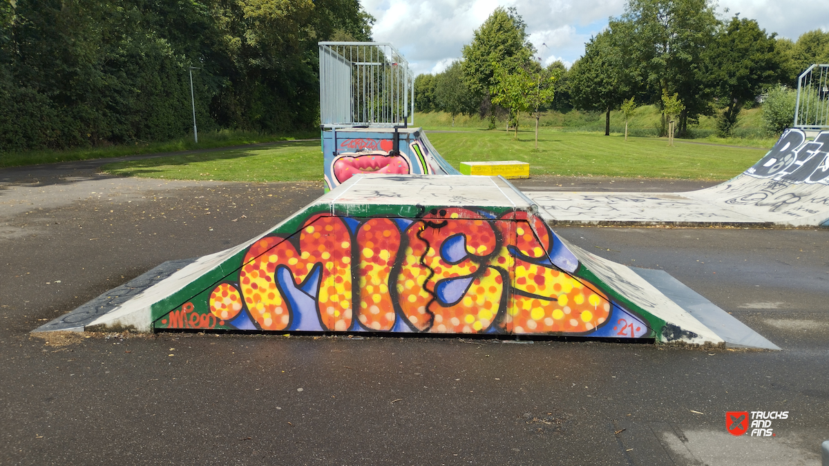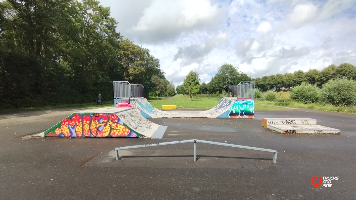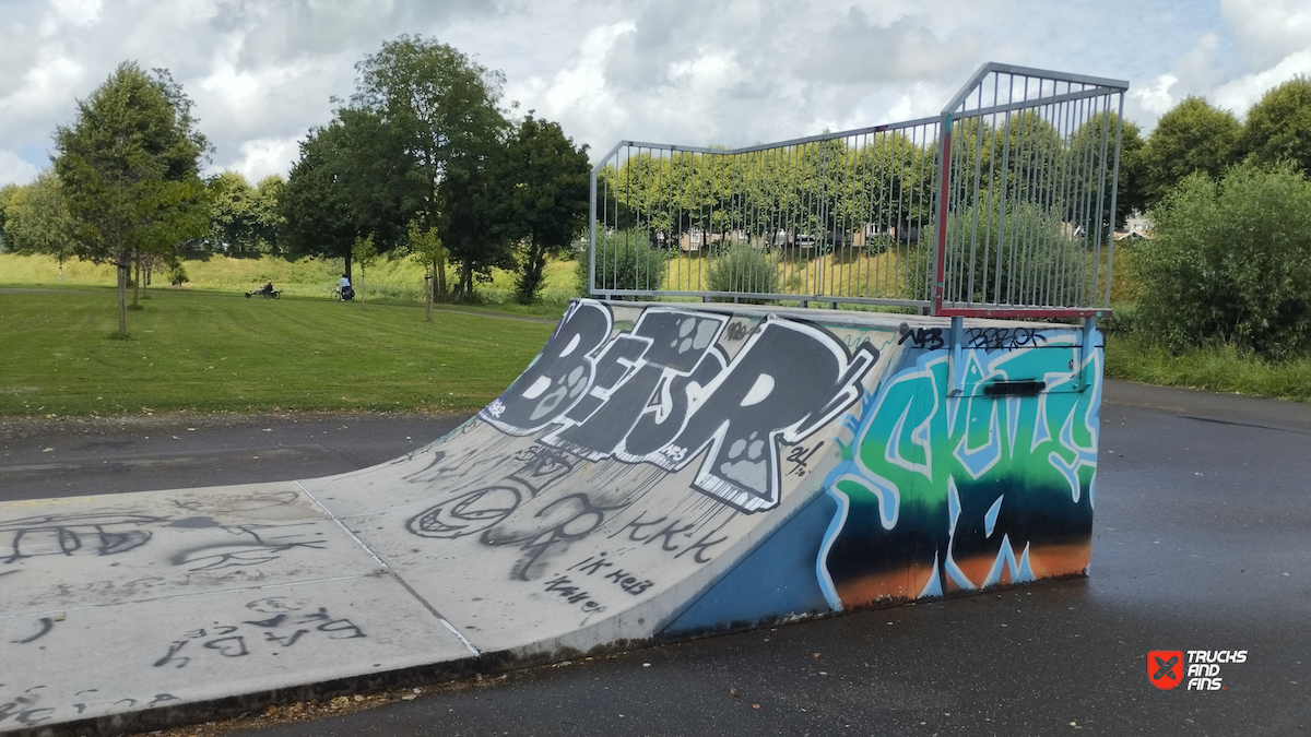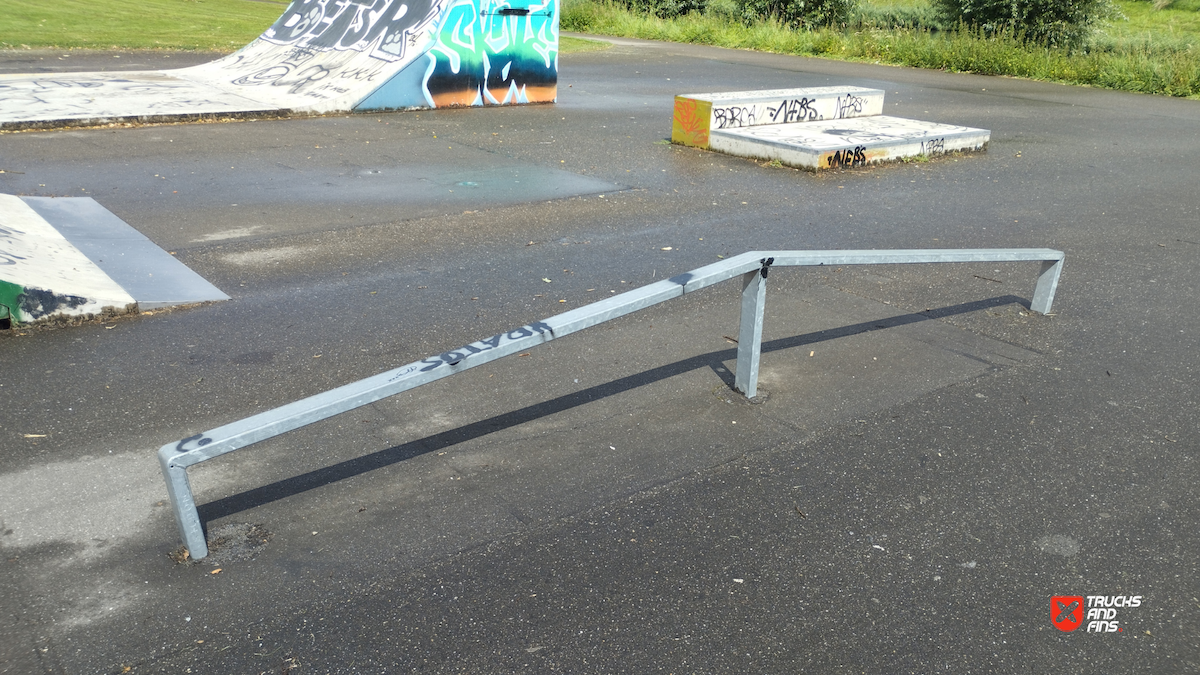 Hulst skatepark features a concrete miniramp and several other basic skateboard obstacles.