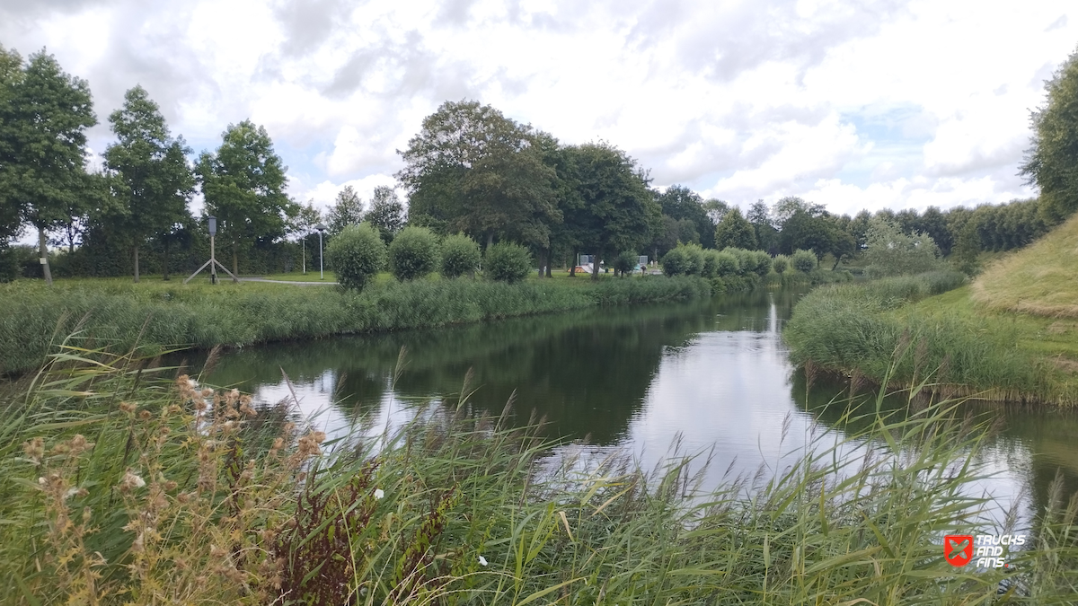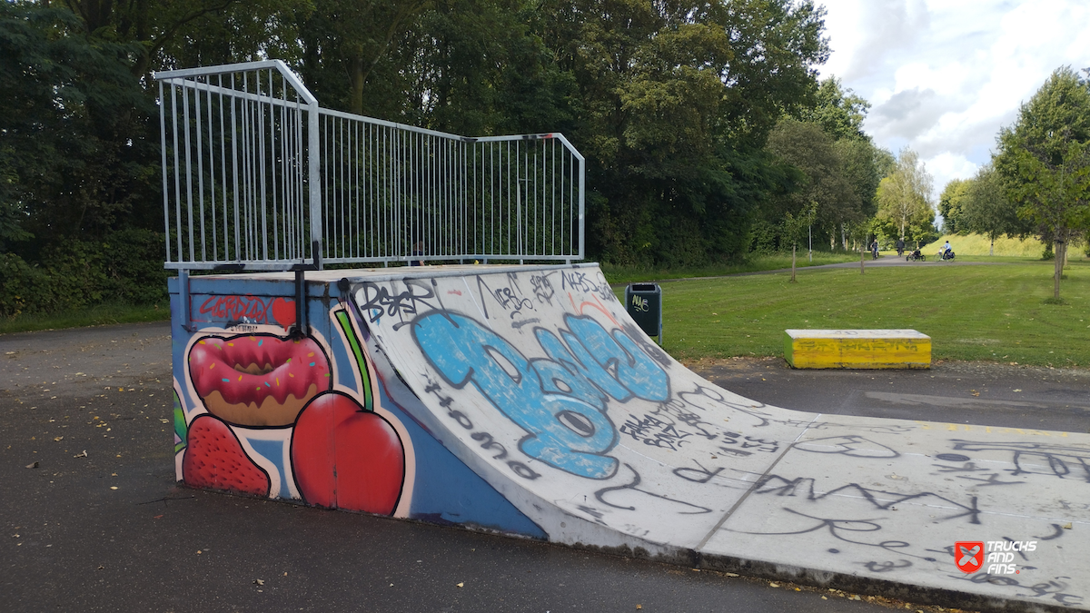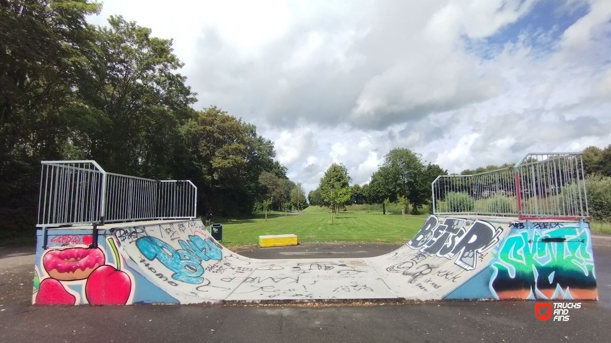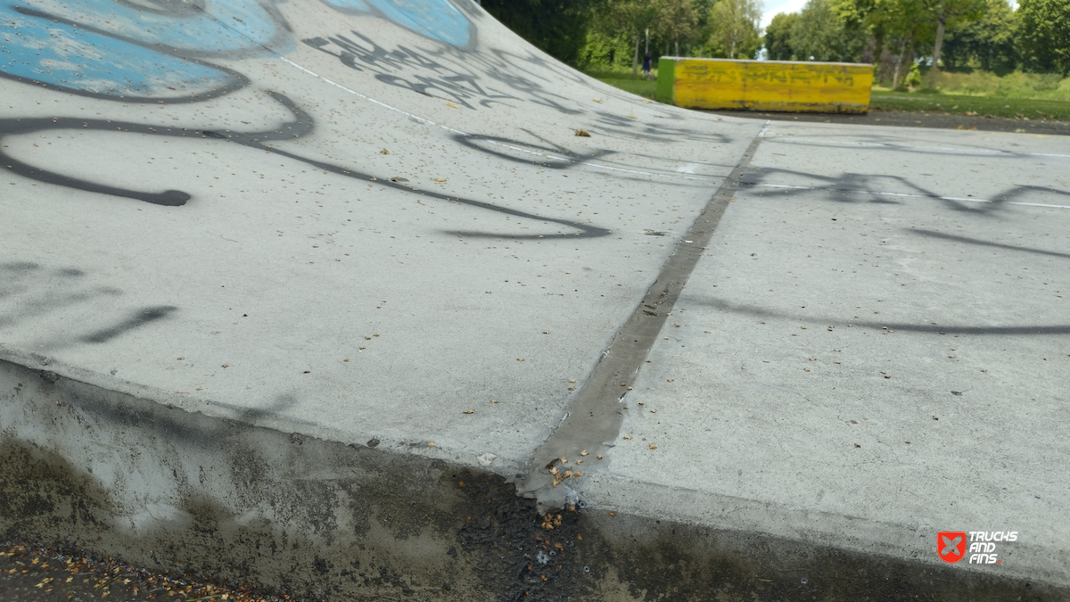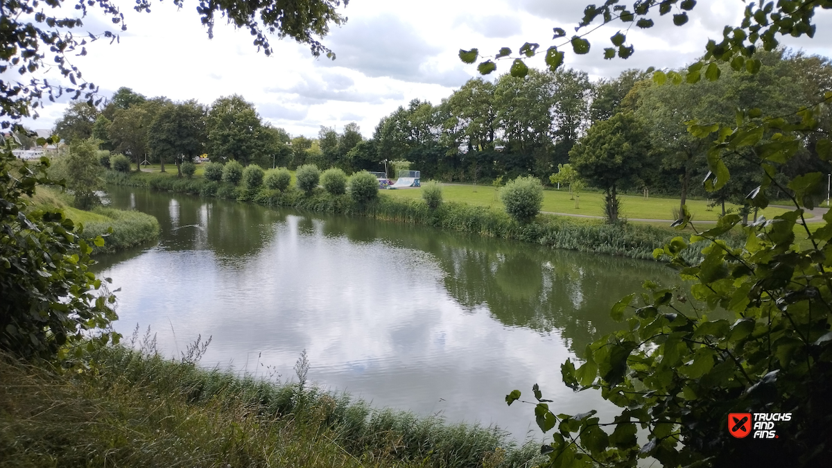 Hulst skatepark features a concrete miniramp and several other basic skateboard obstacles.