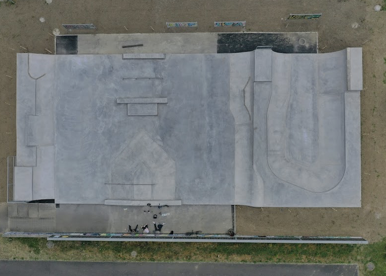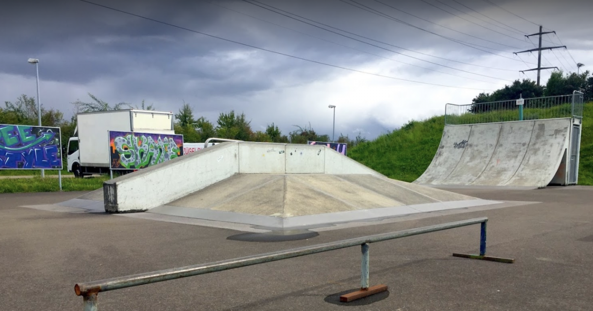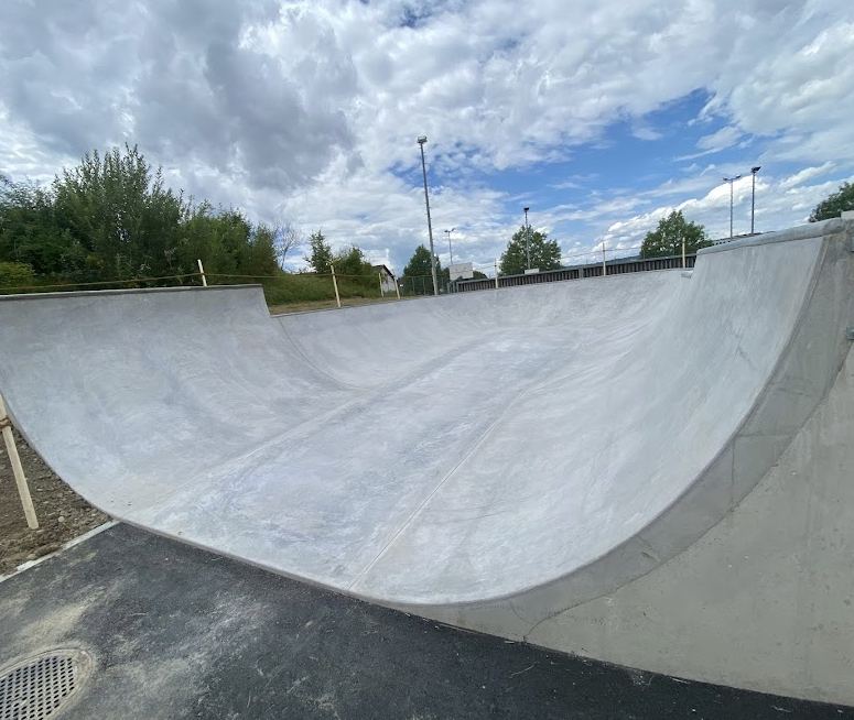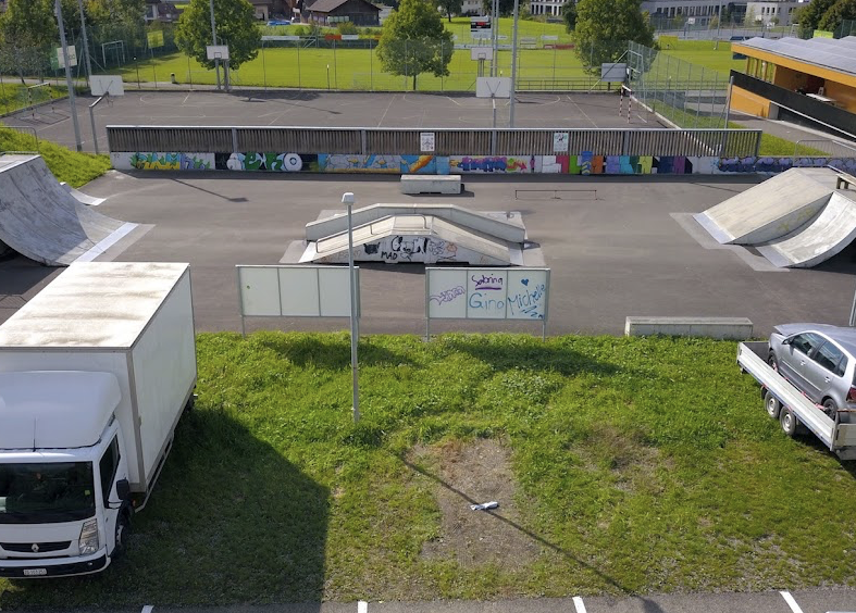 The 550 m² Hünenberg skatepark is a back and forth type skatepark with two quarterpipes and a funbox.