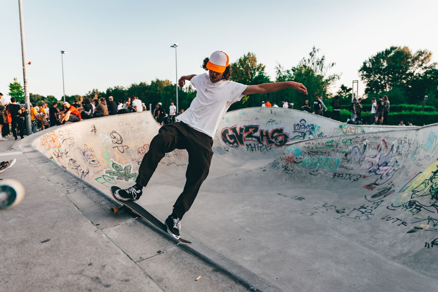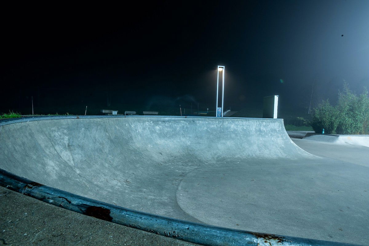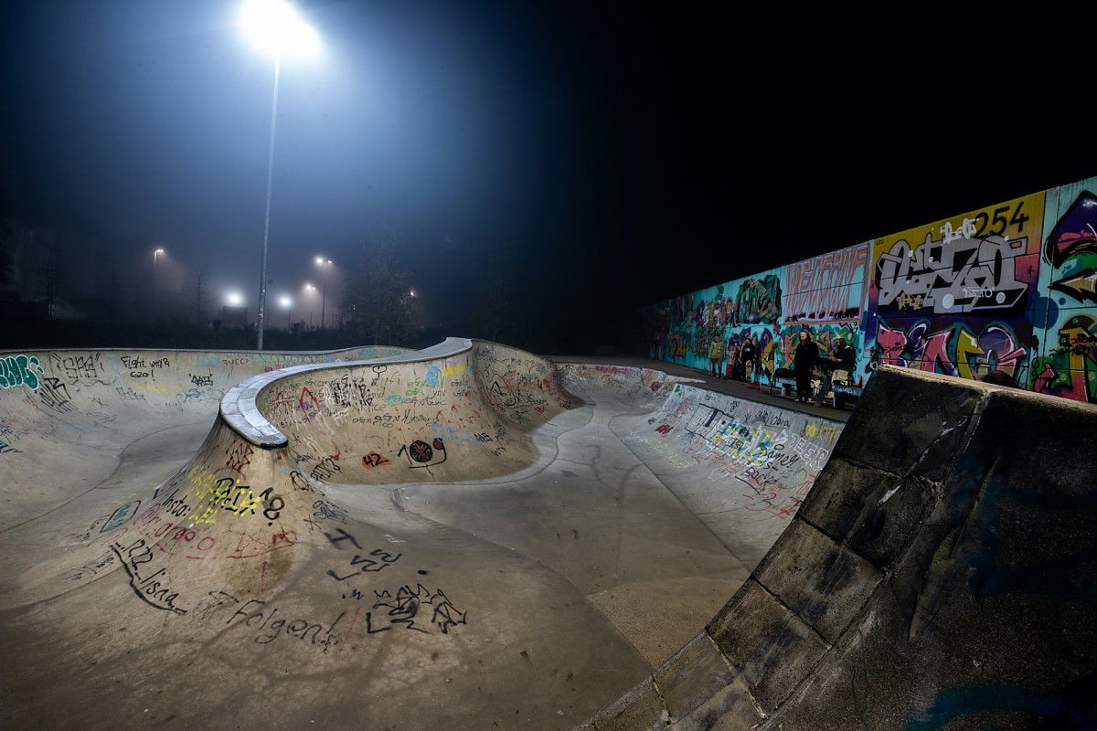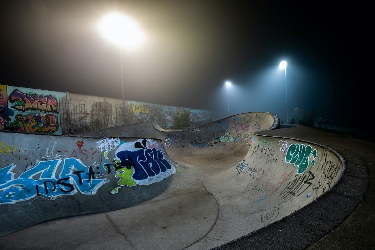 IGS skatepark is Hamburg is a concrete skatepark, featuring a large bowl and a street area.