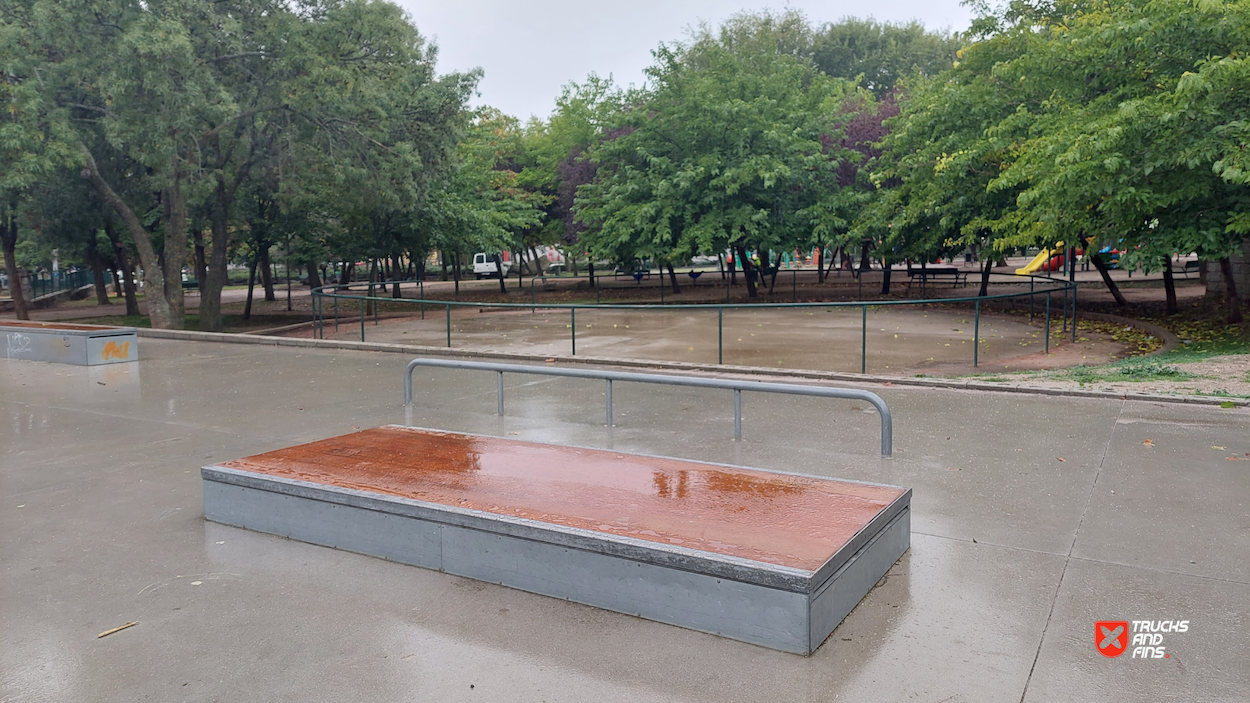Ignacio Echeverría skatepark is a wooden skatepark featuring several ramps, street obstacles and a miniramp.