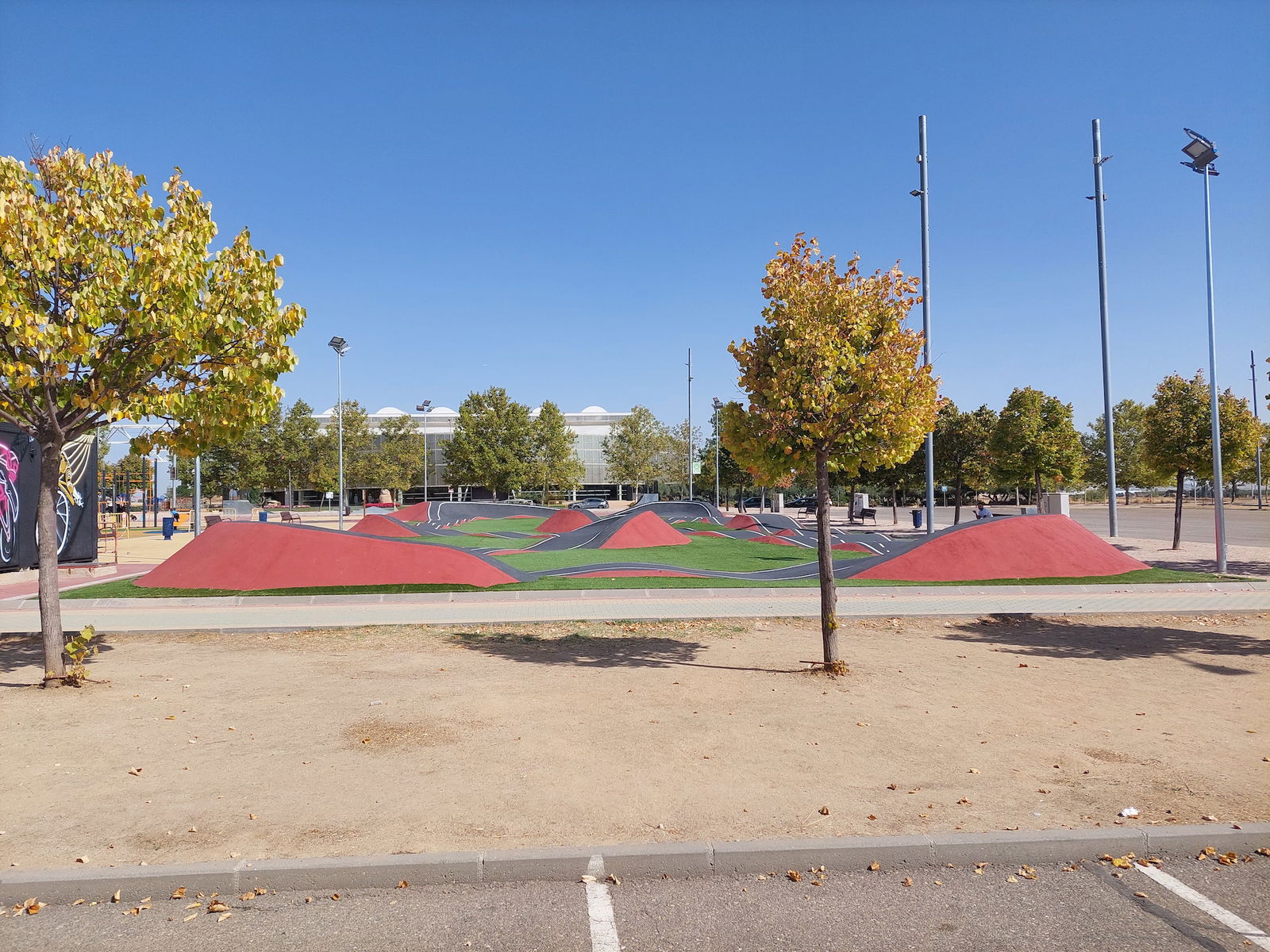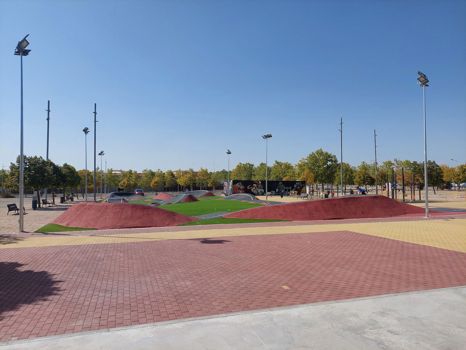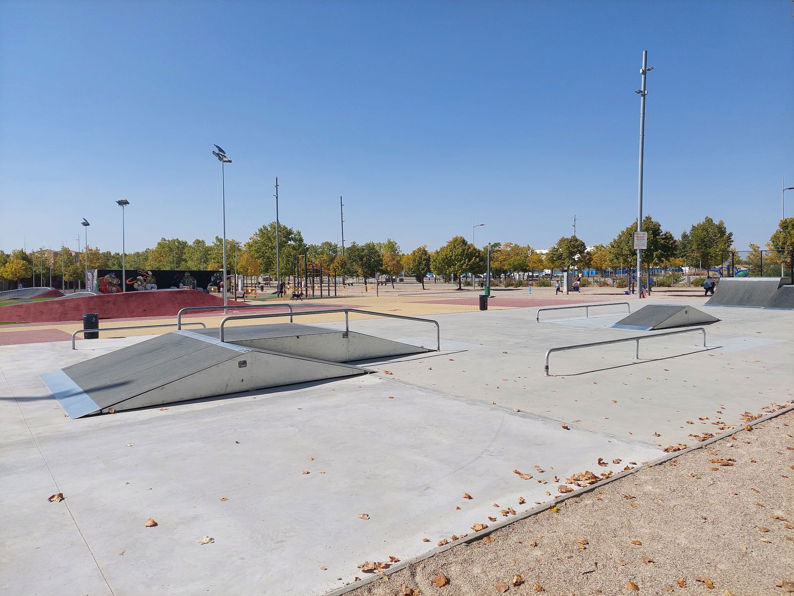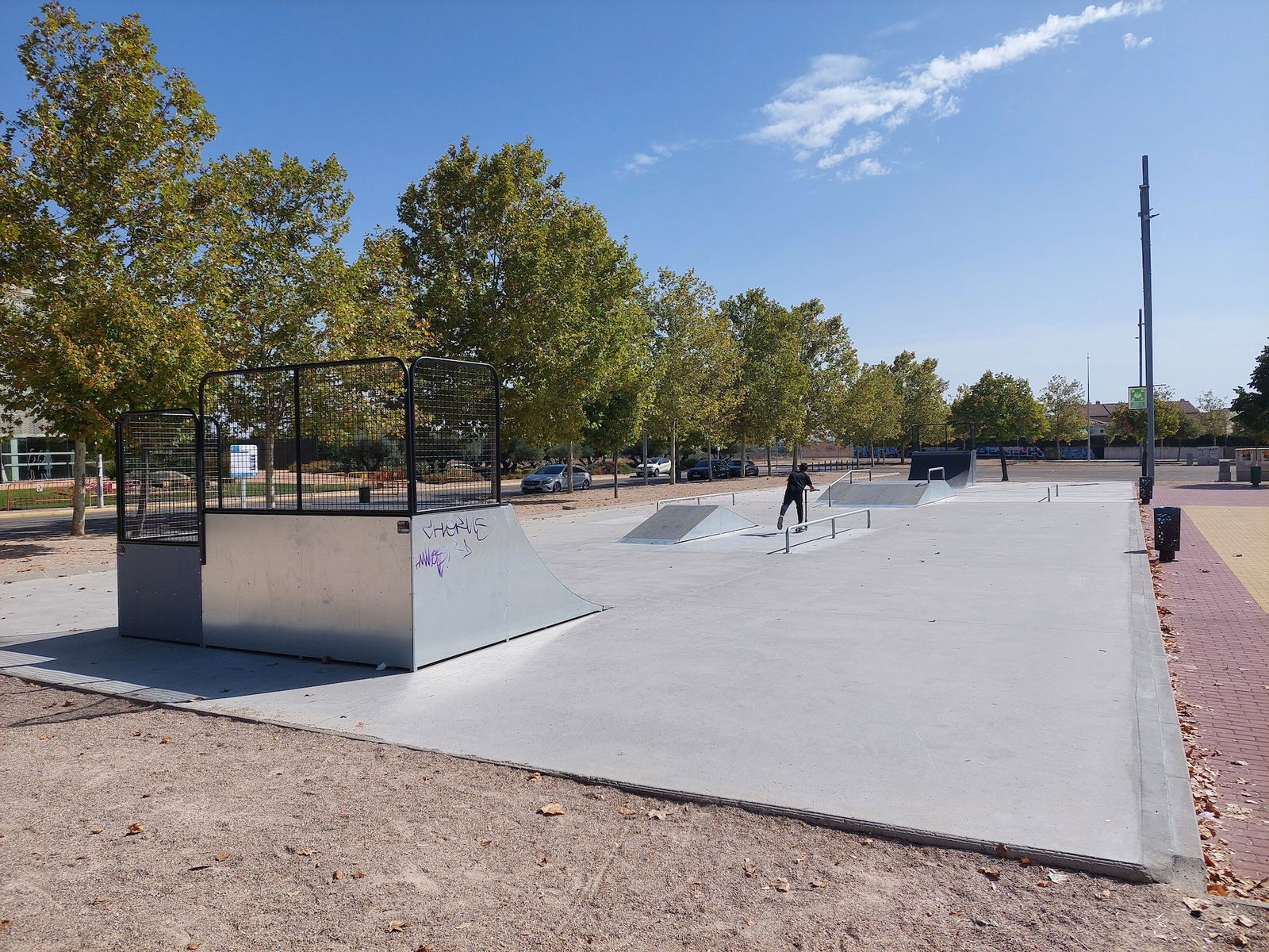 Illescas skatepark is a small park with several basic skateboarding obstacles in a back and forth setup. The skatepark also features an asphalt pumptrack.