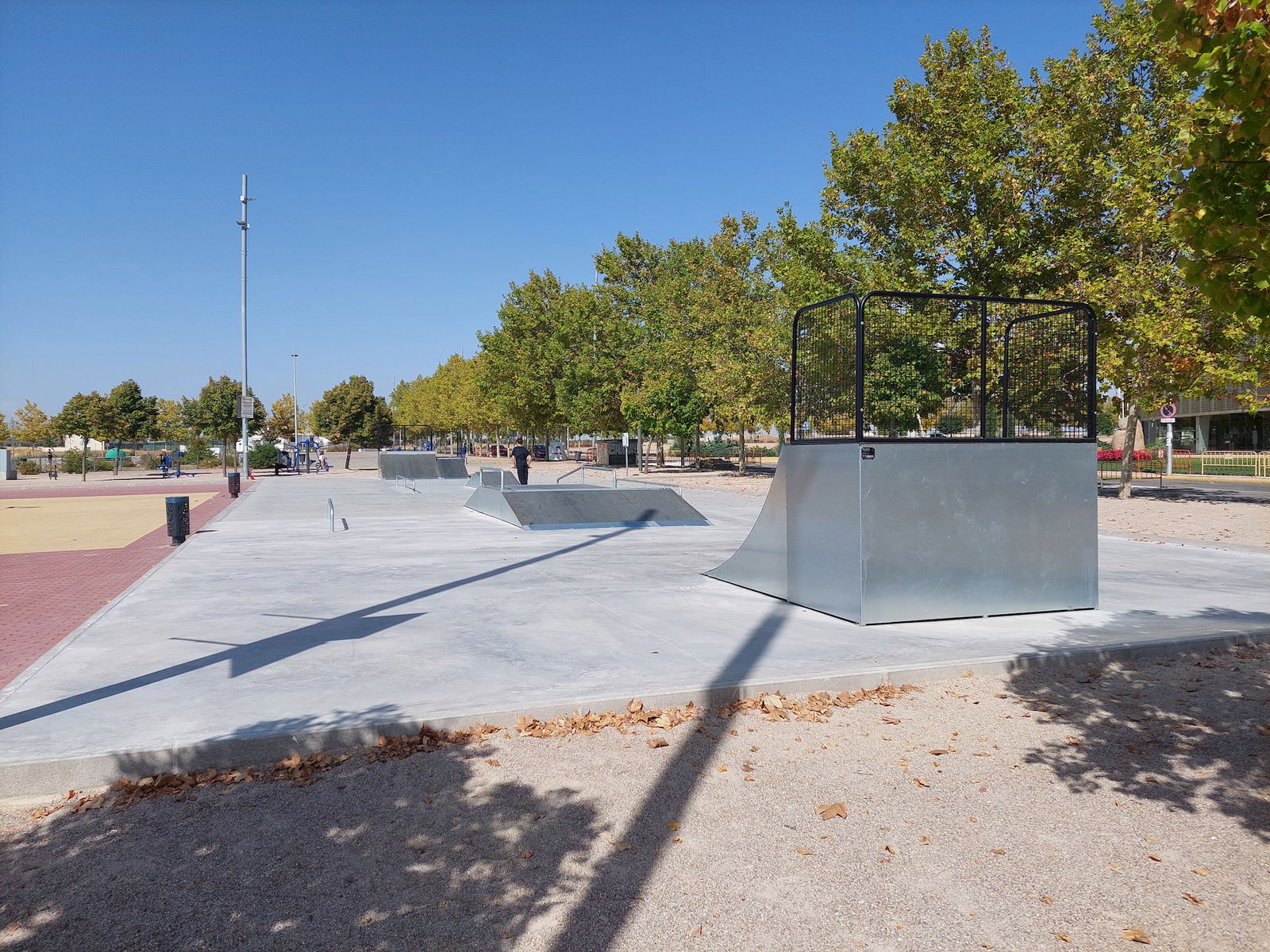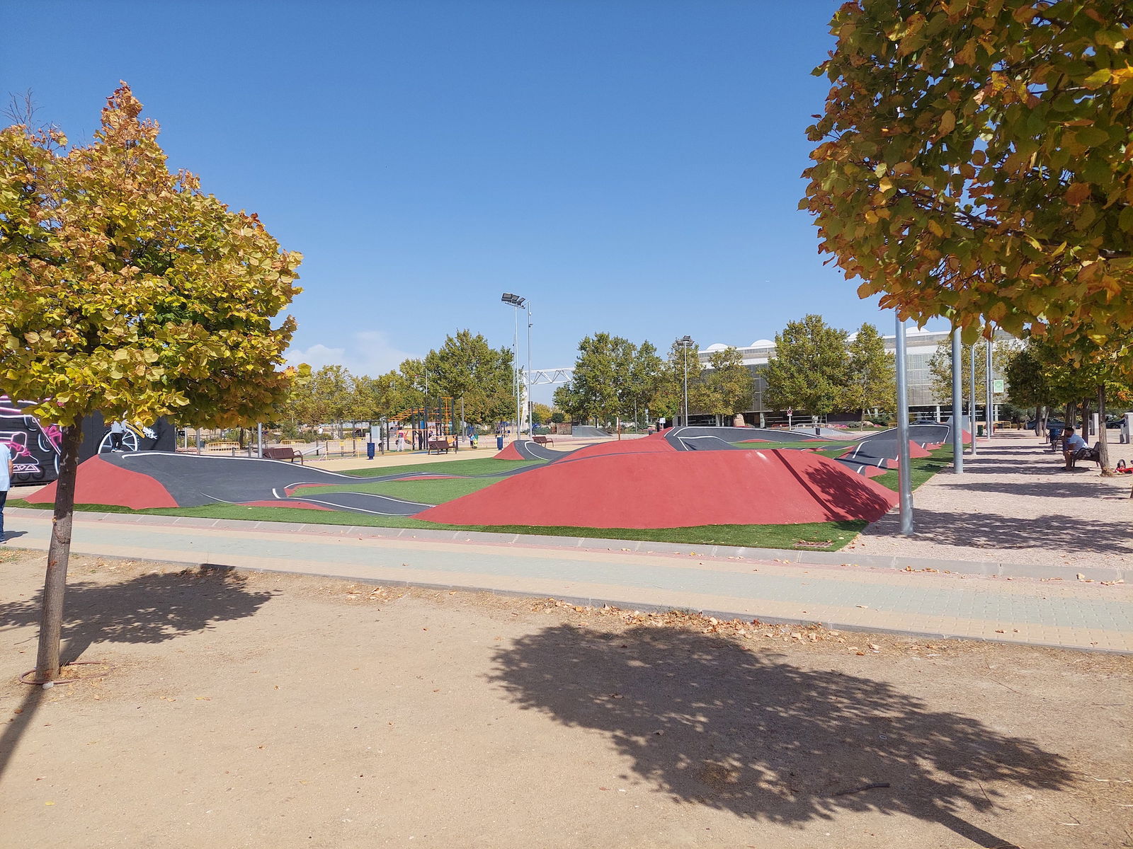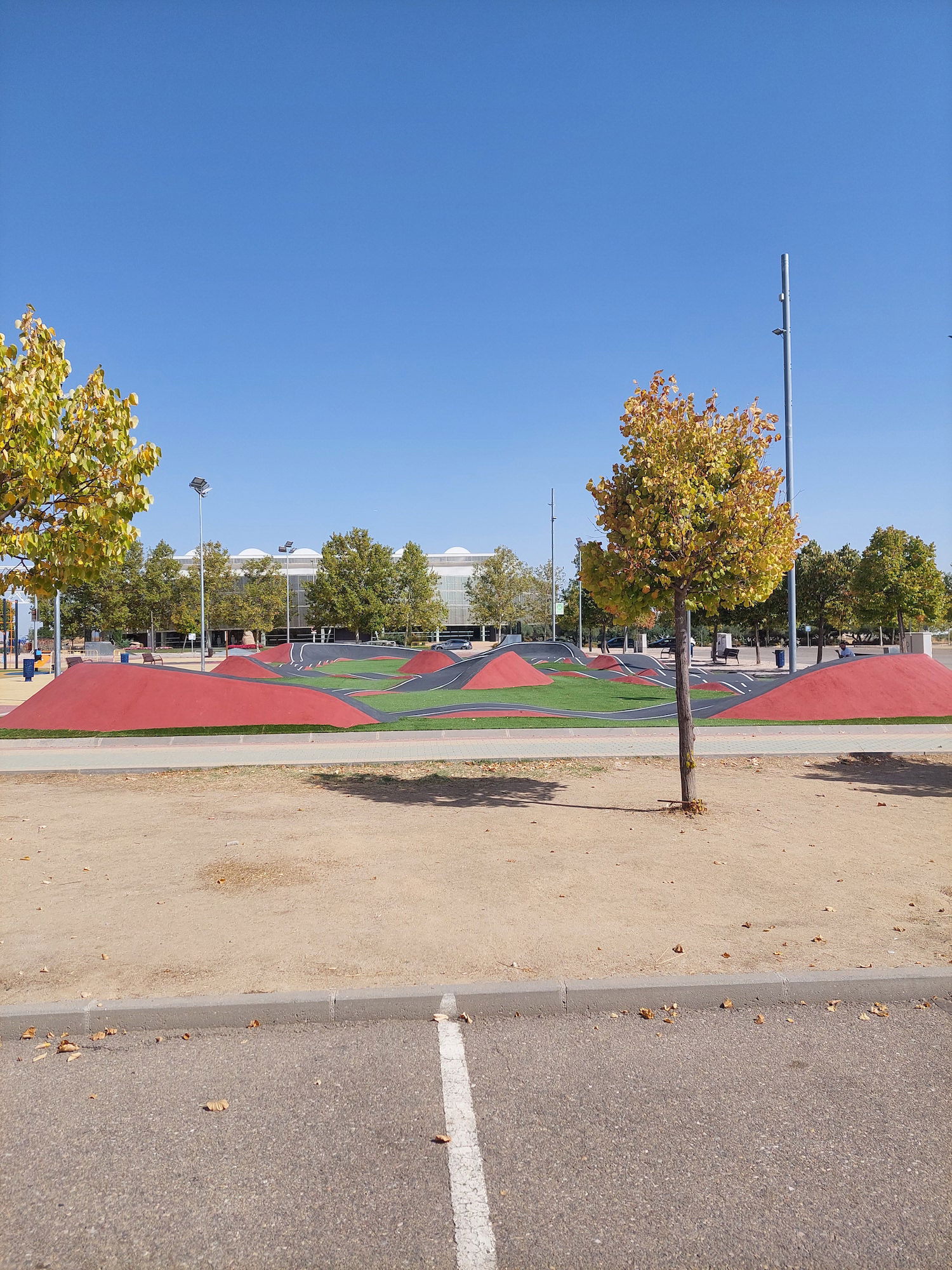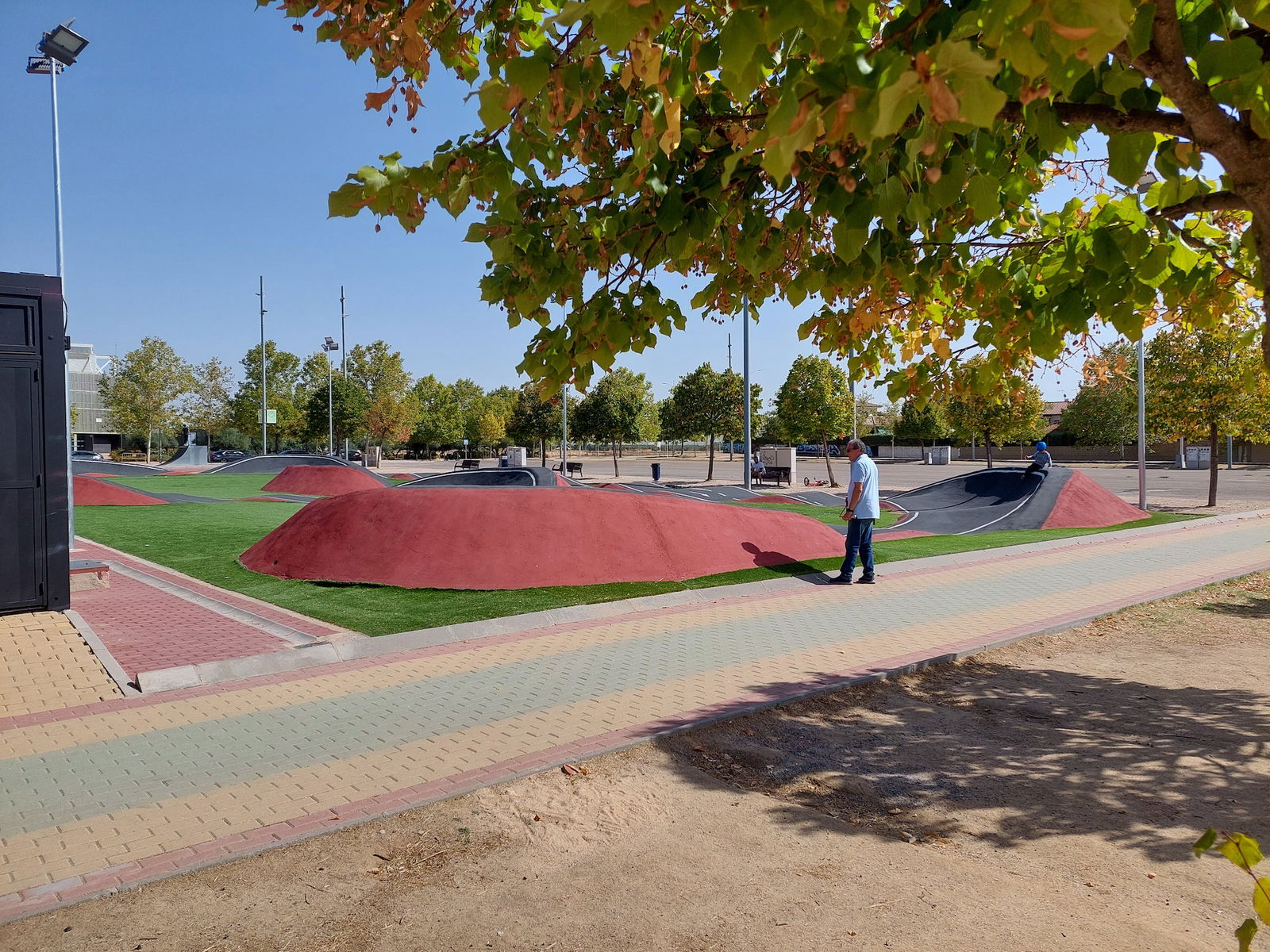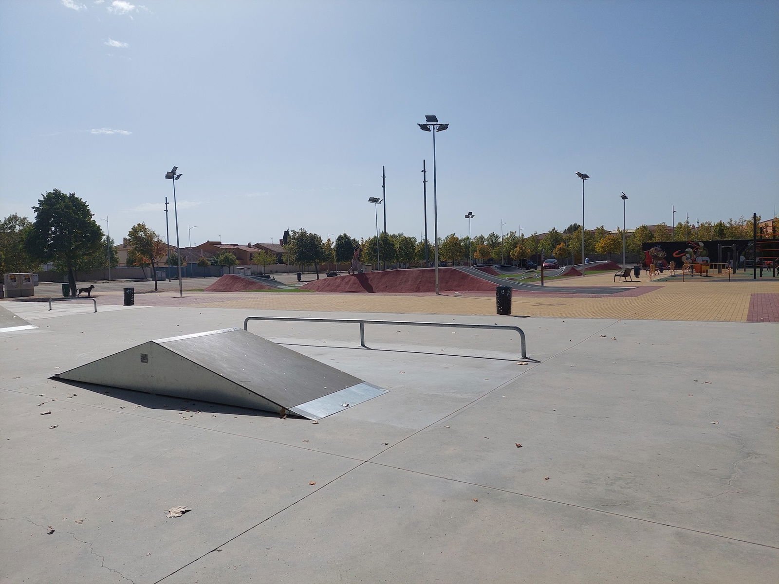 Illescas skatepark is a small park with several basic skateboarding obstacles in a back and forth setup. The skatepark also features an asphalt pumptrack.