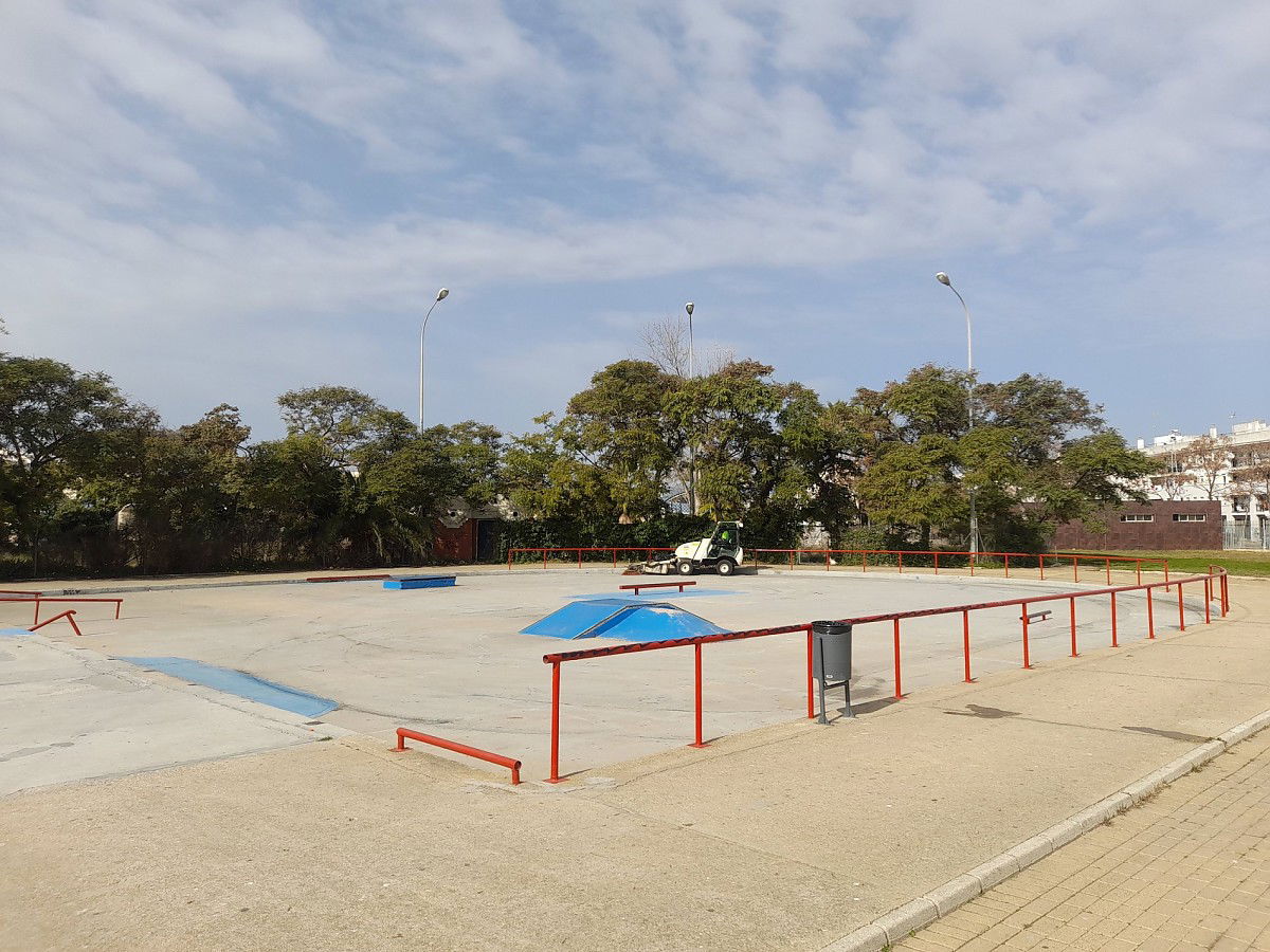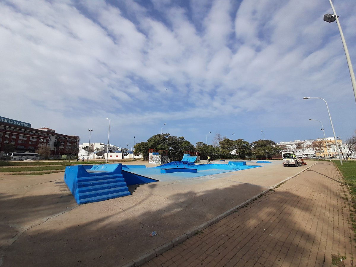Isla Cristina skatepark is located near Playa de Santa. The skatepark features an open bowl and a miniramp.