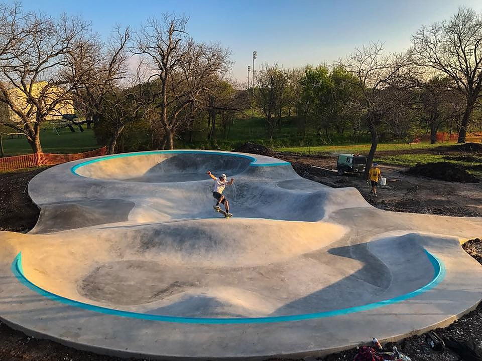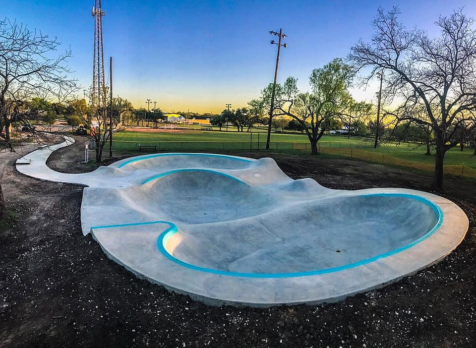 The Johnson City Skatepark in Johnson City, Texas, was built by Evergreen Skateparks and completed around 2017. This small but well-designed park spans 3,000 square feet and includes a dynamic flow and various elements like ledges and manual pads. Despite its compact size, the park is known for its smooth design and speed-focused layout, making it a favorite for skaters in the Texas Hill Country.