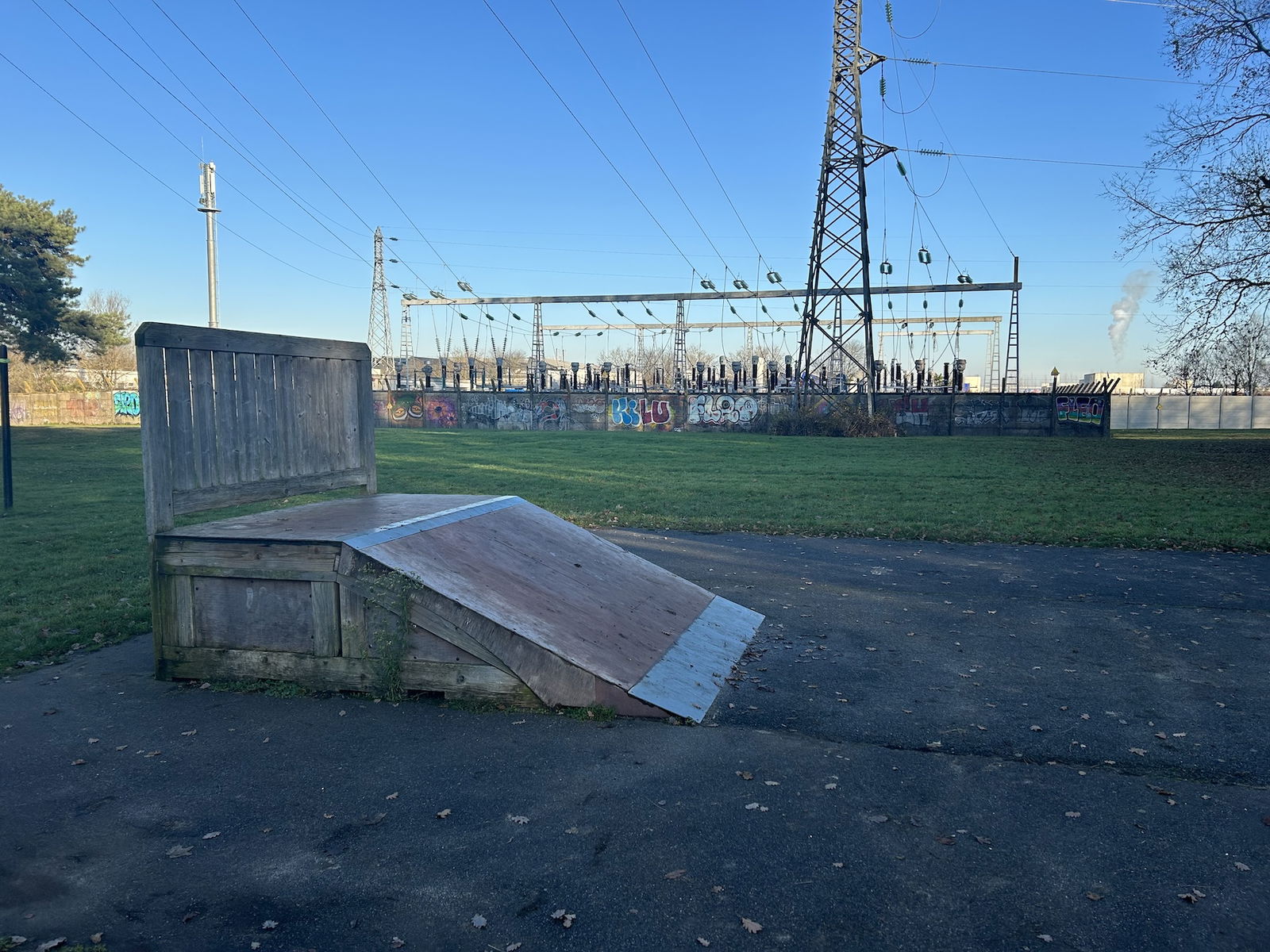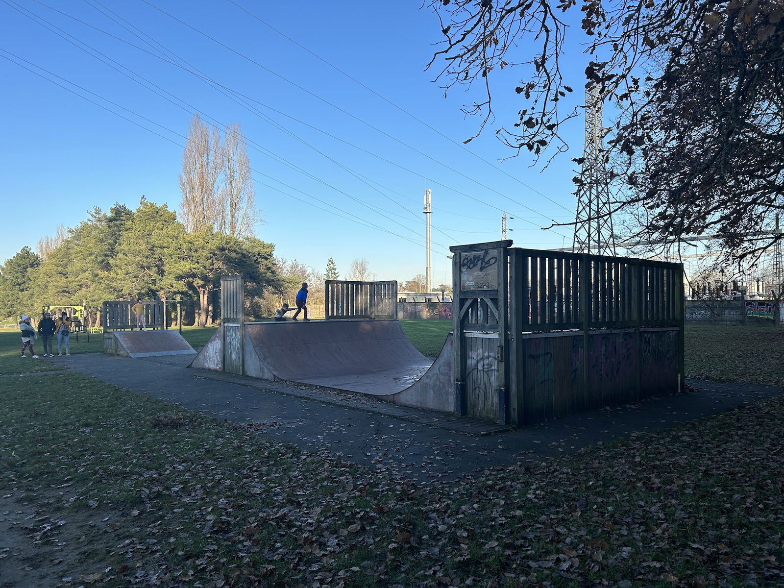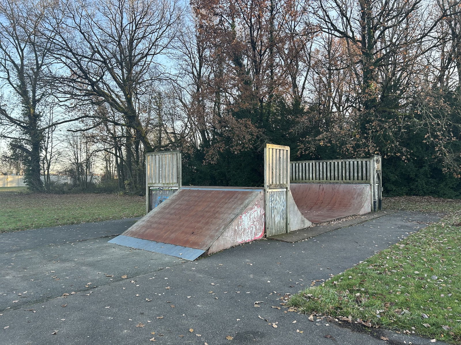 Joué-lès-Tours skatepark features several ramps and a miniramp.