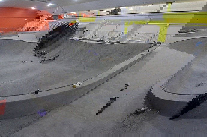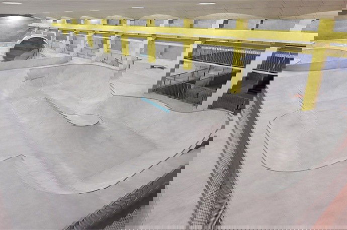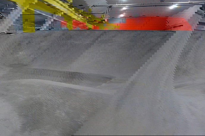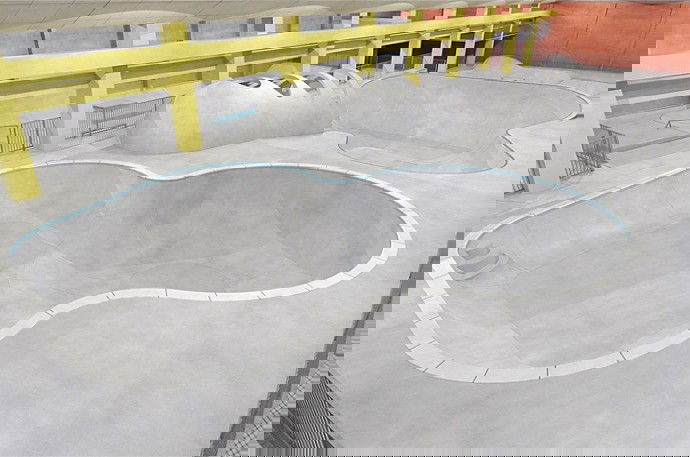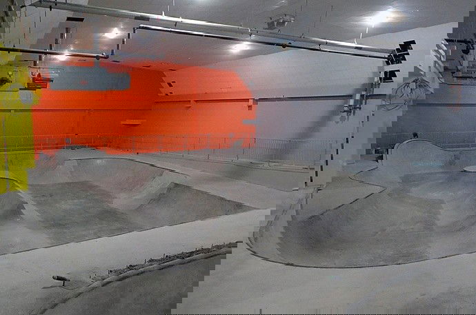 The indoor KAOS skatepark was designed and built closely with Wheelscape skateparks. It‘s a massive indoor facility that is open to the public. KAOS skatepark is one of the largest concrete indoor skateparks in Europe.