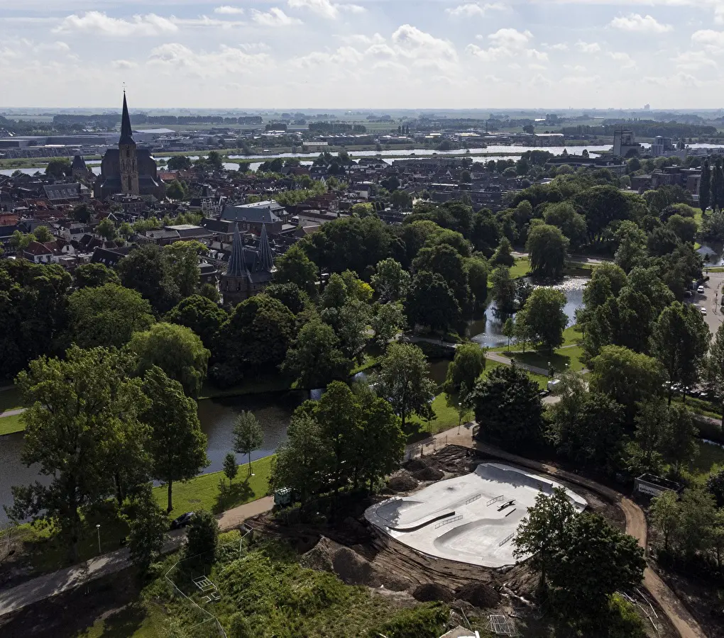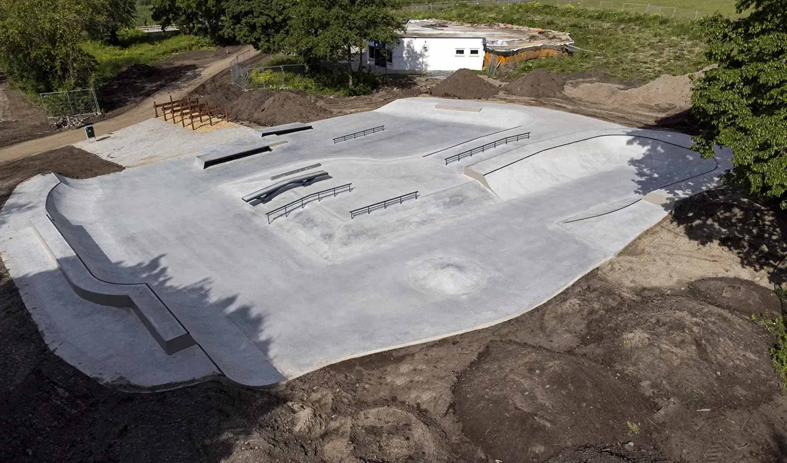 Kampen skatepark features a concrete park made up of a nice mix of transition and street obstacles.