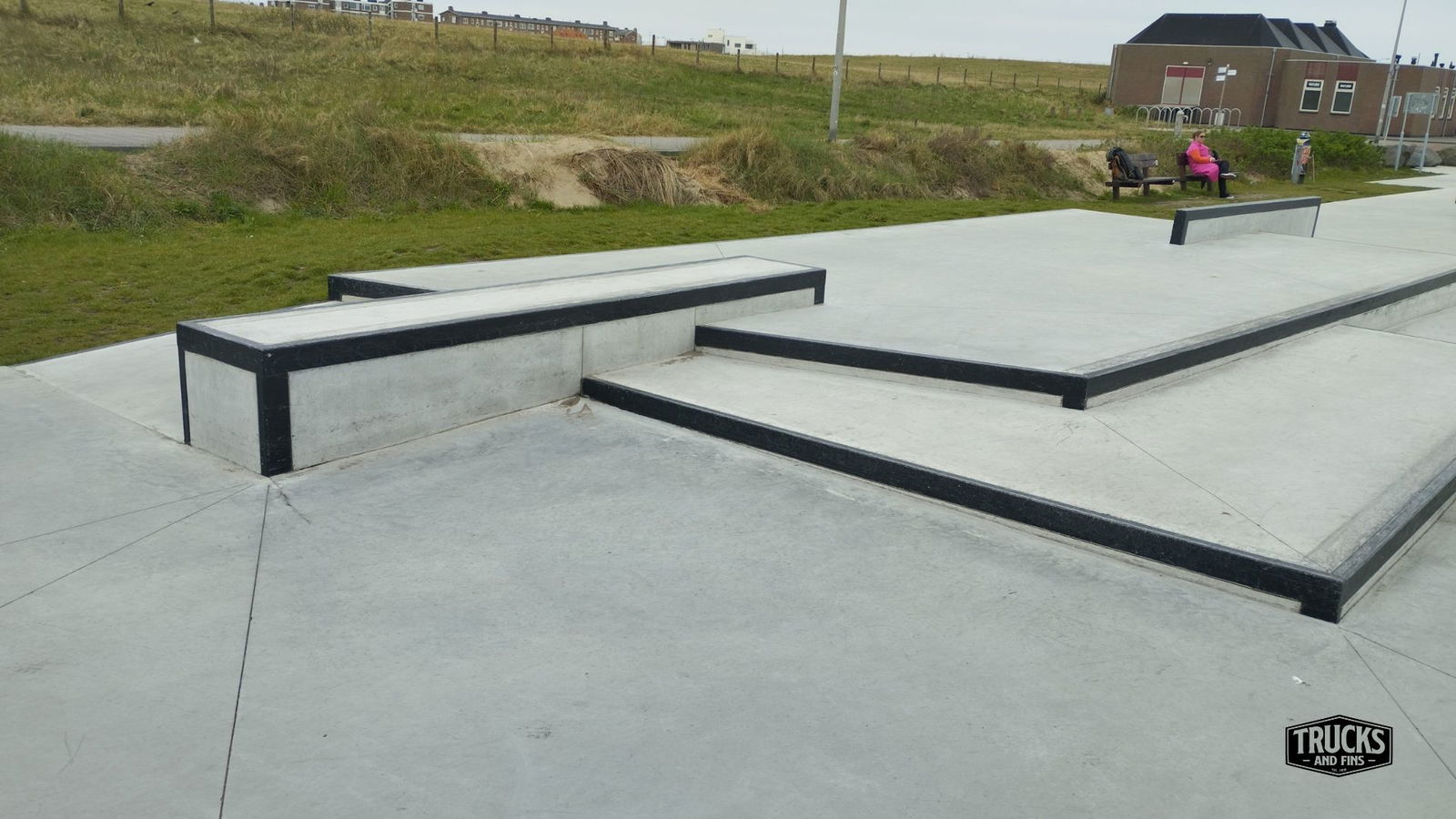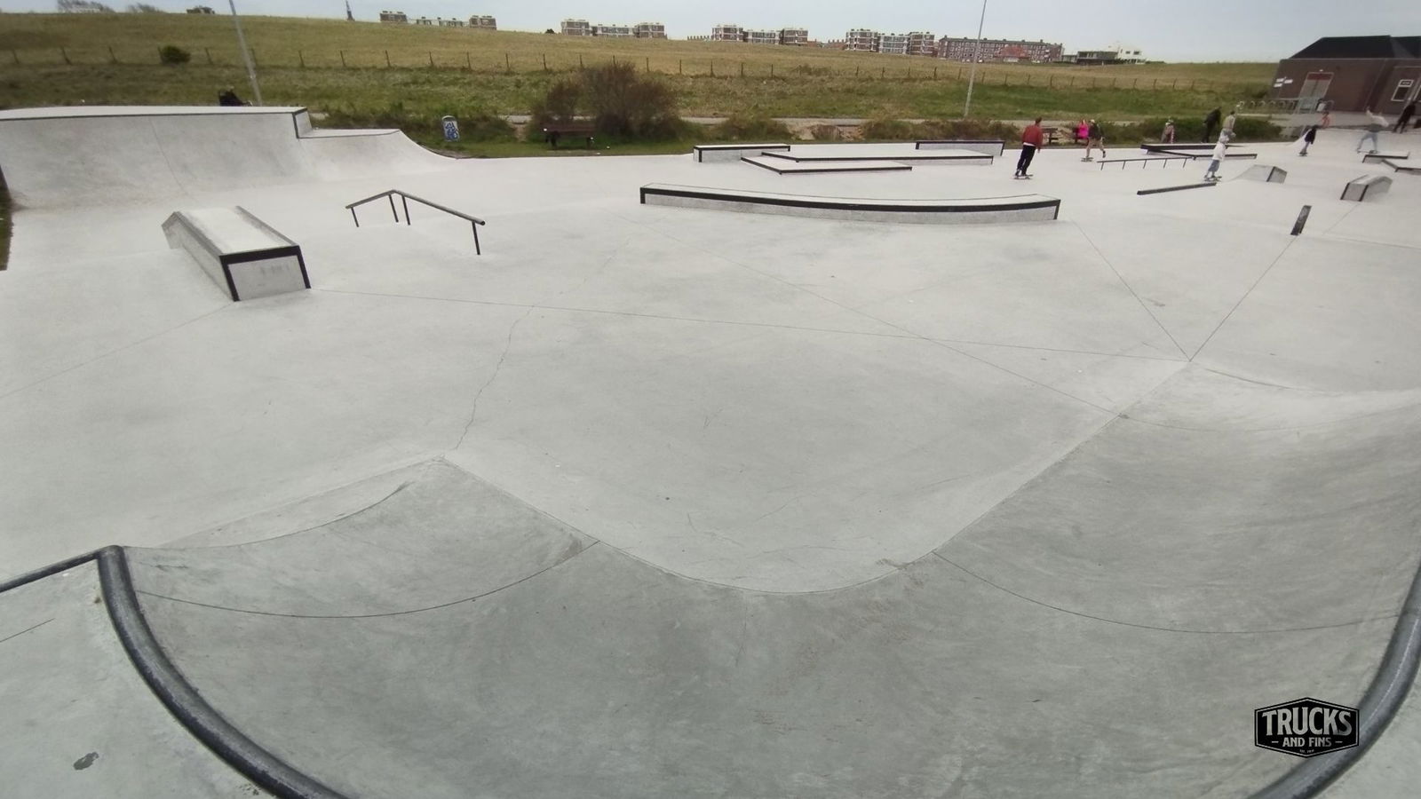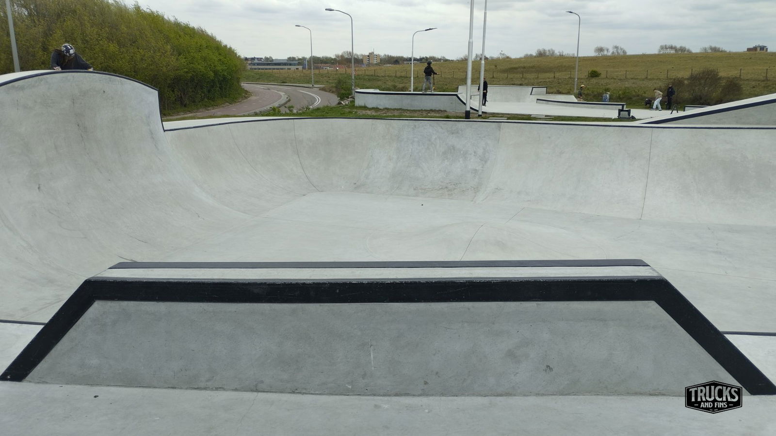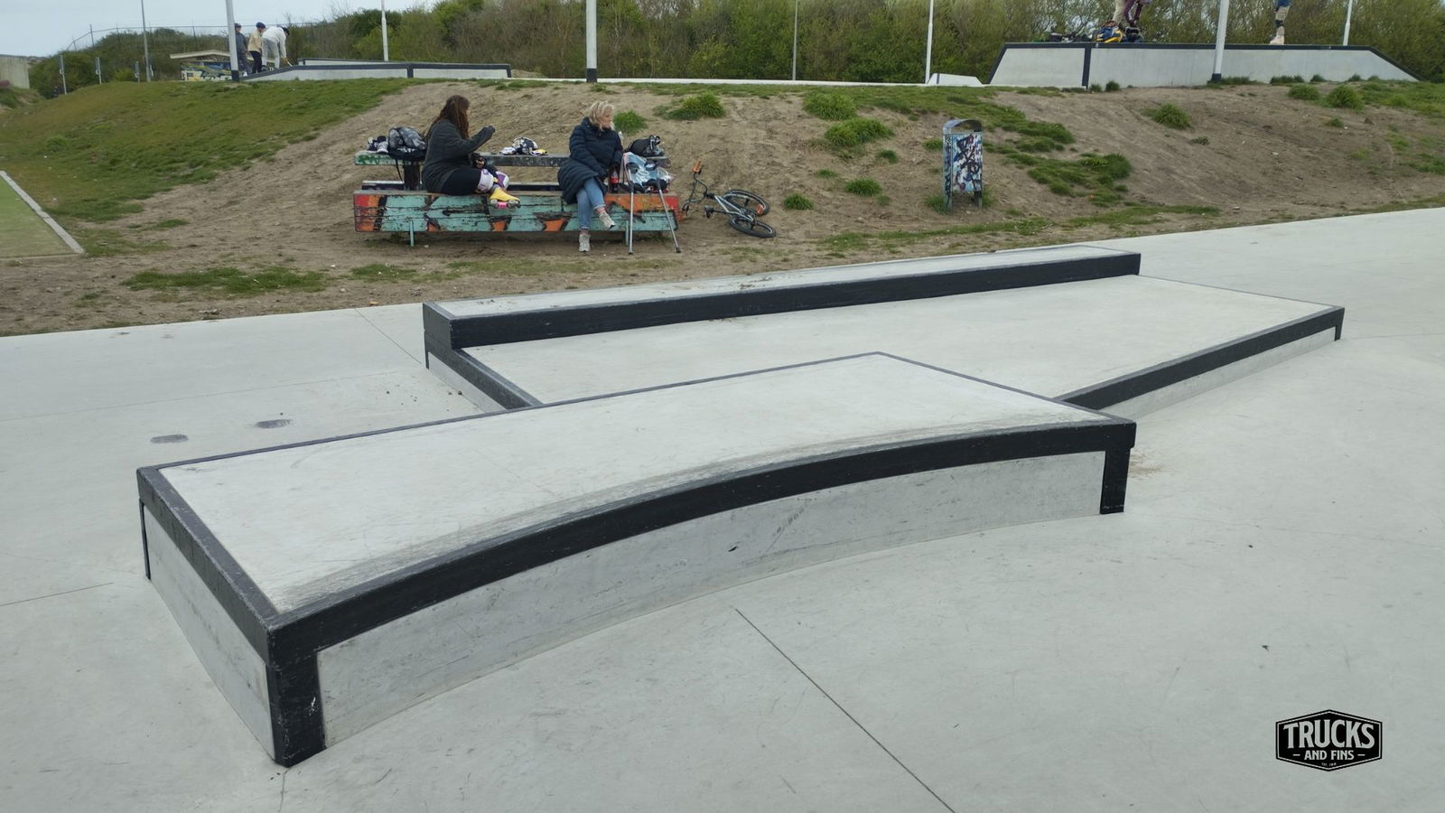 Katwijk skatepark is a large metal skatepark featuring a miniramp with spine, several quarters, banks, ledges, rails, funboxes and jumpboxes.
