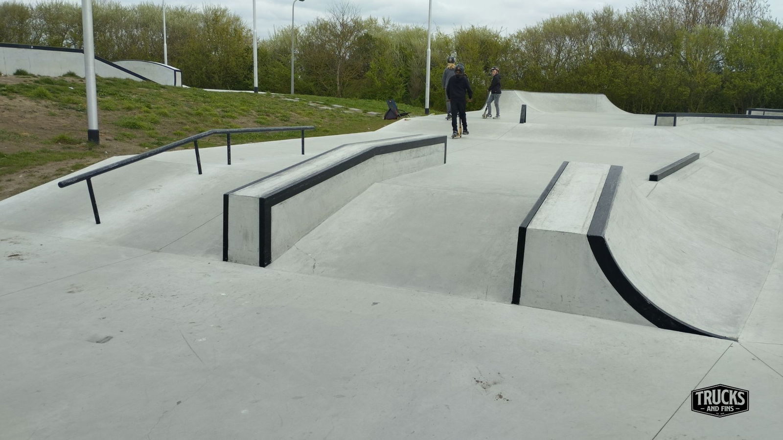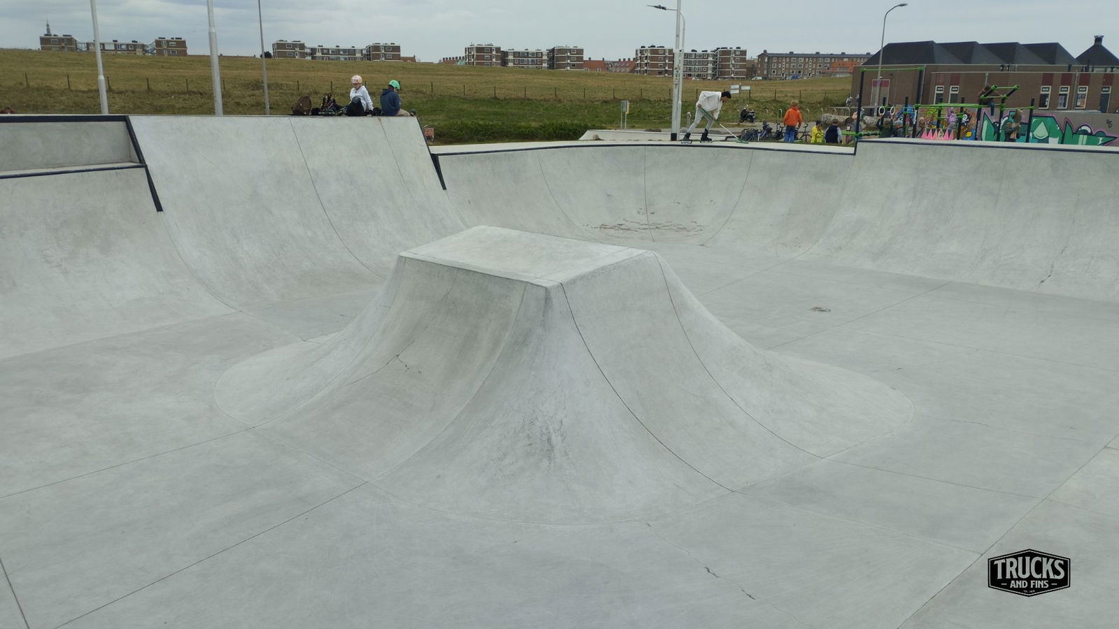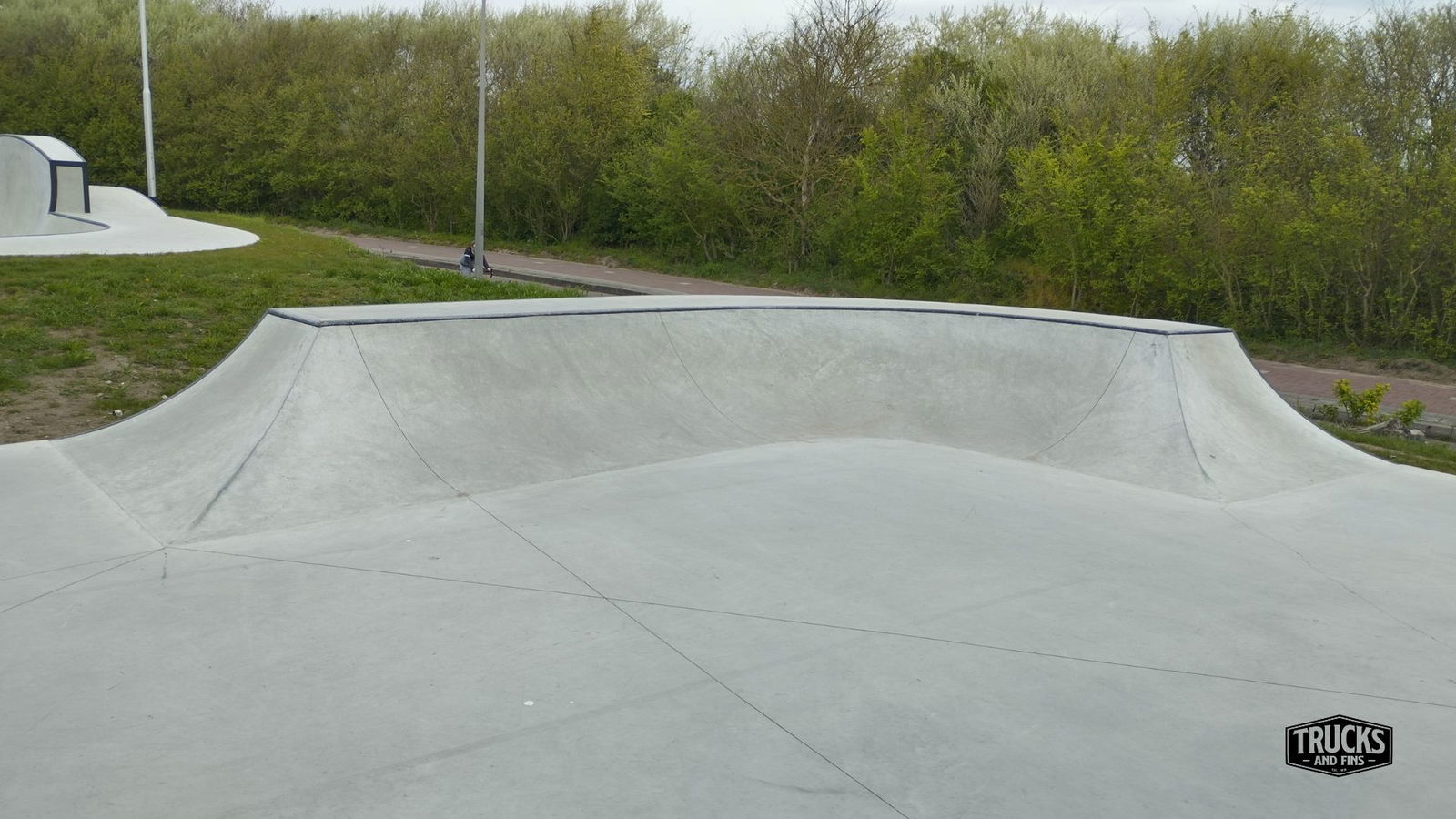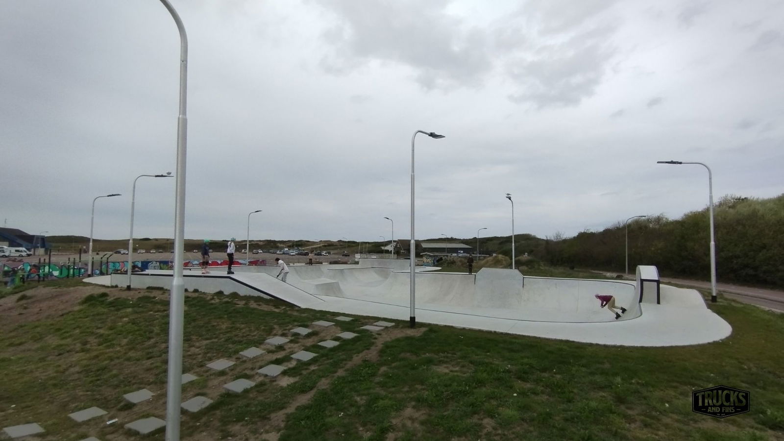 Katwijk skatepark is a large metal skatepark featuring a miniramp with spine, several quarters, banks, ledges, rails, funboxes and jumpboxes.