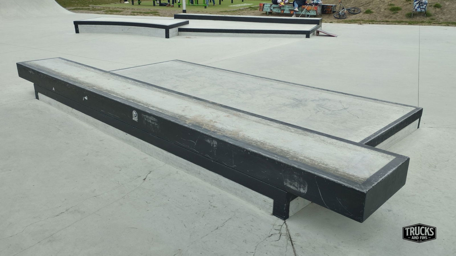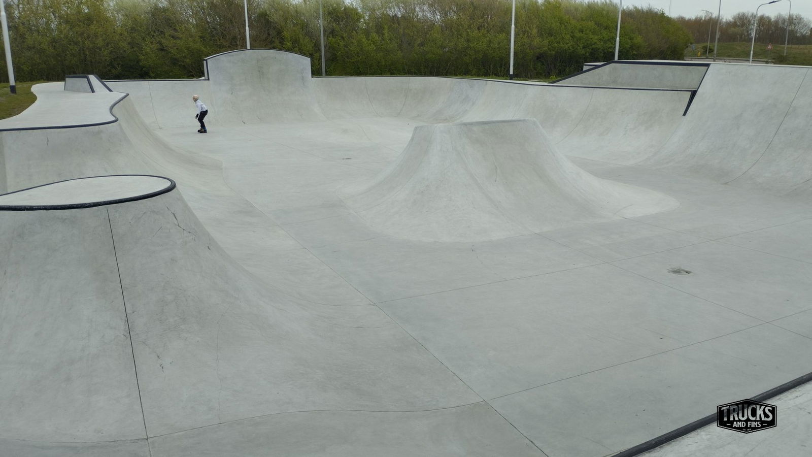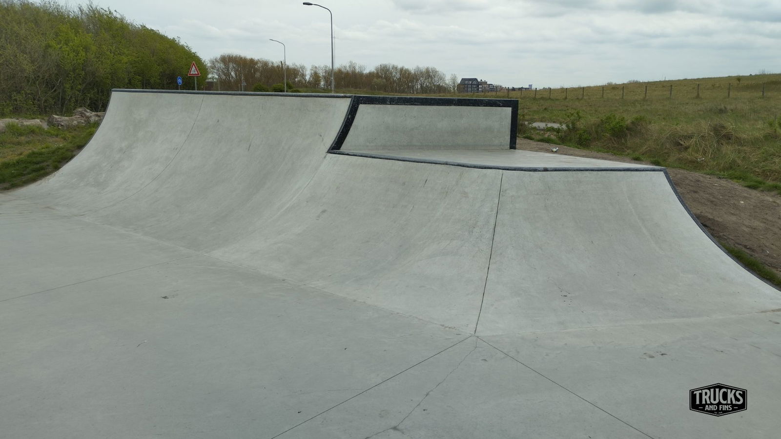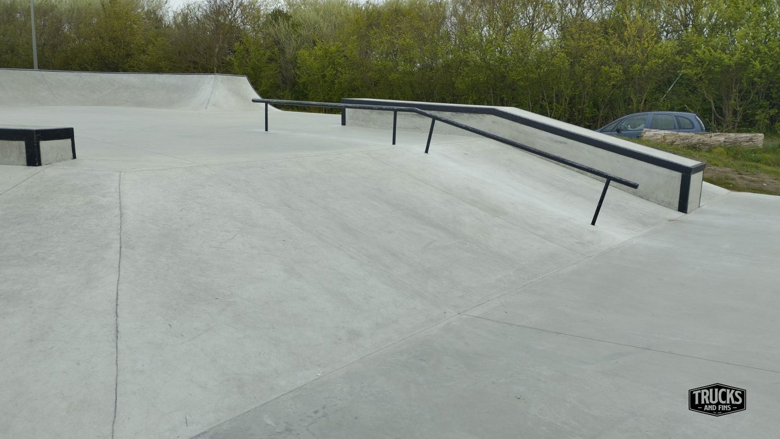 Katwijk skatepark is a large metal skatepark featuring a miniramp with spine, several quarters, banks, ledges, rails, funboxes and jumpboxes.