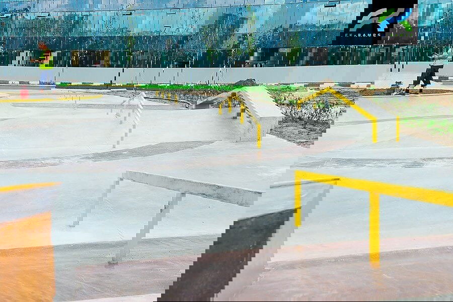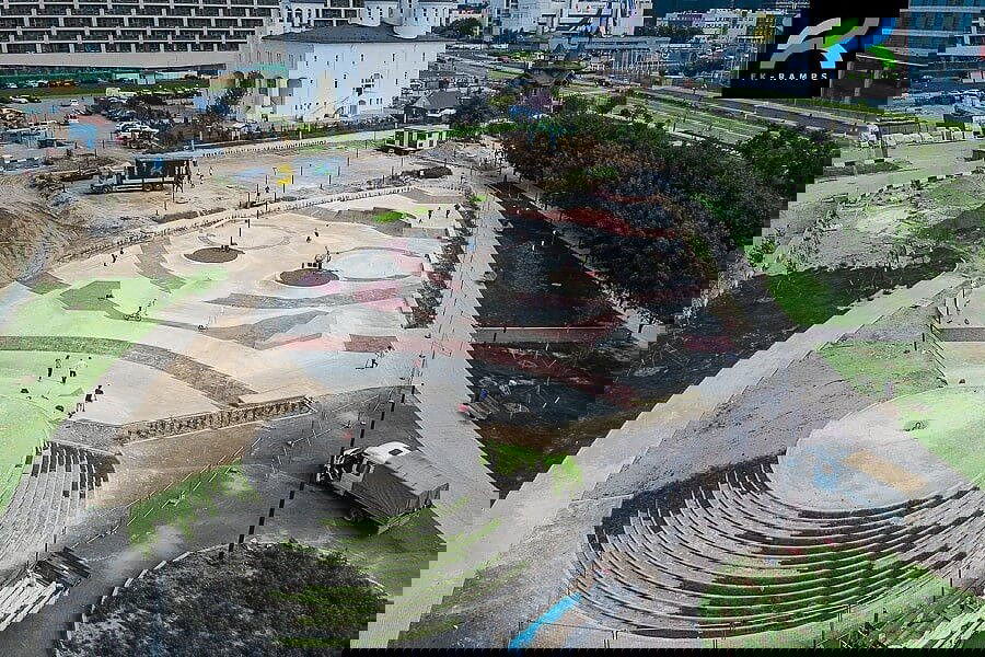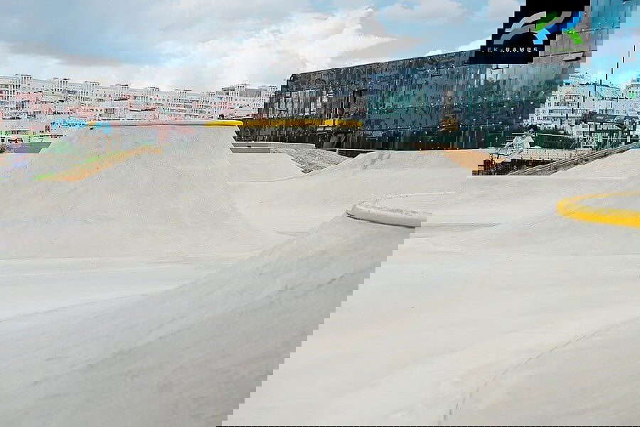Khodynskiy skatepark is a concrete plaza style park, built by FKramps.