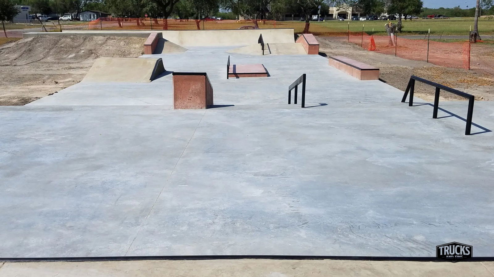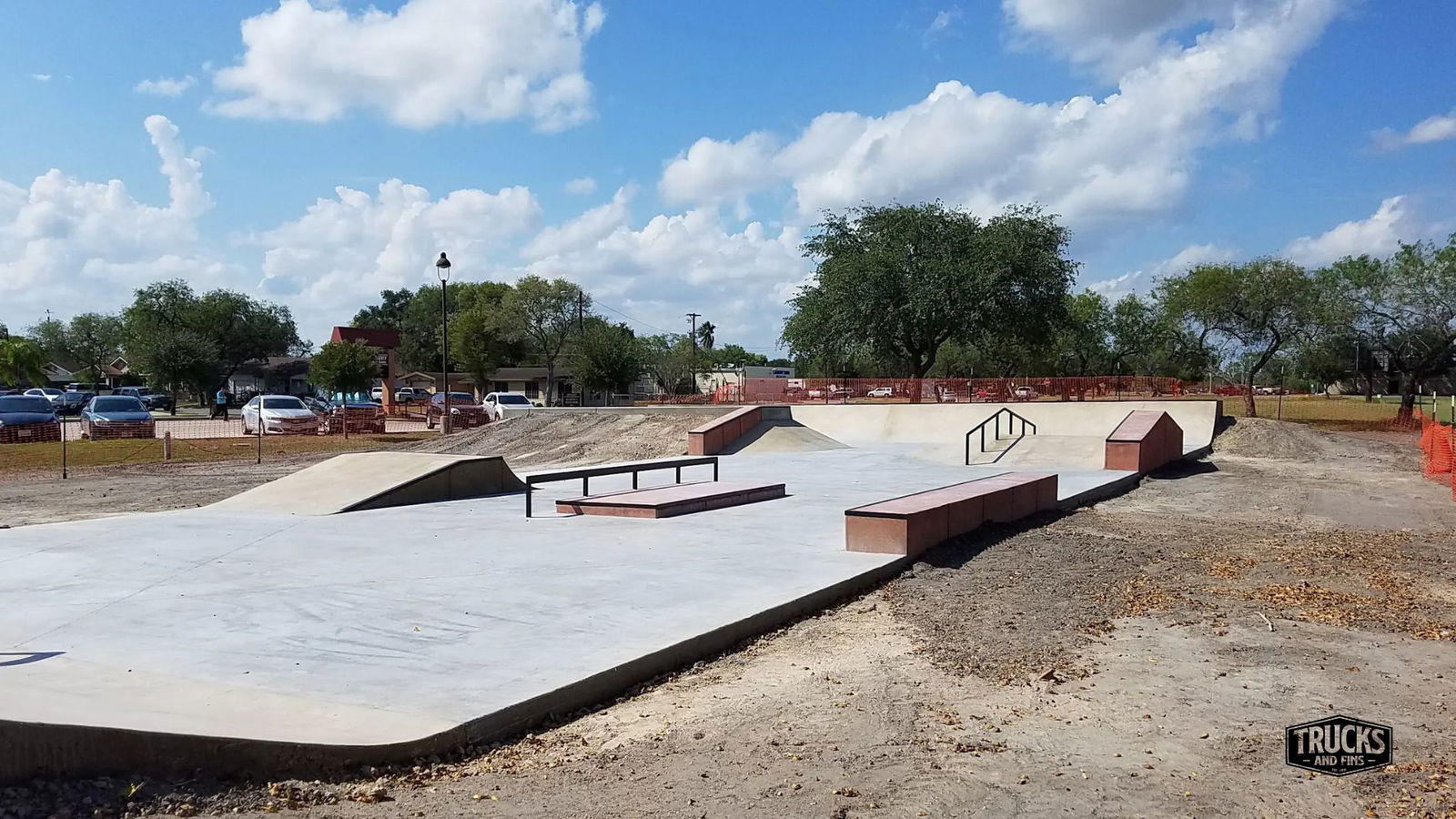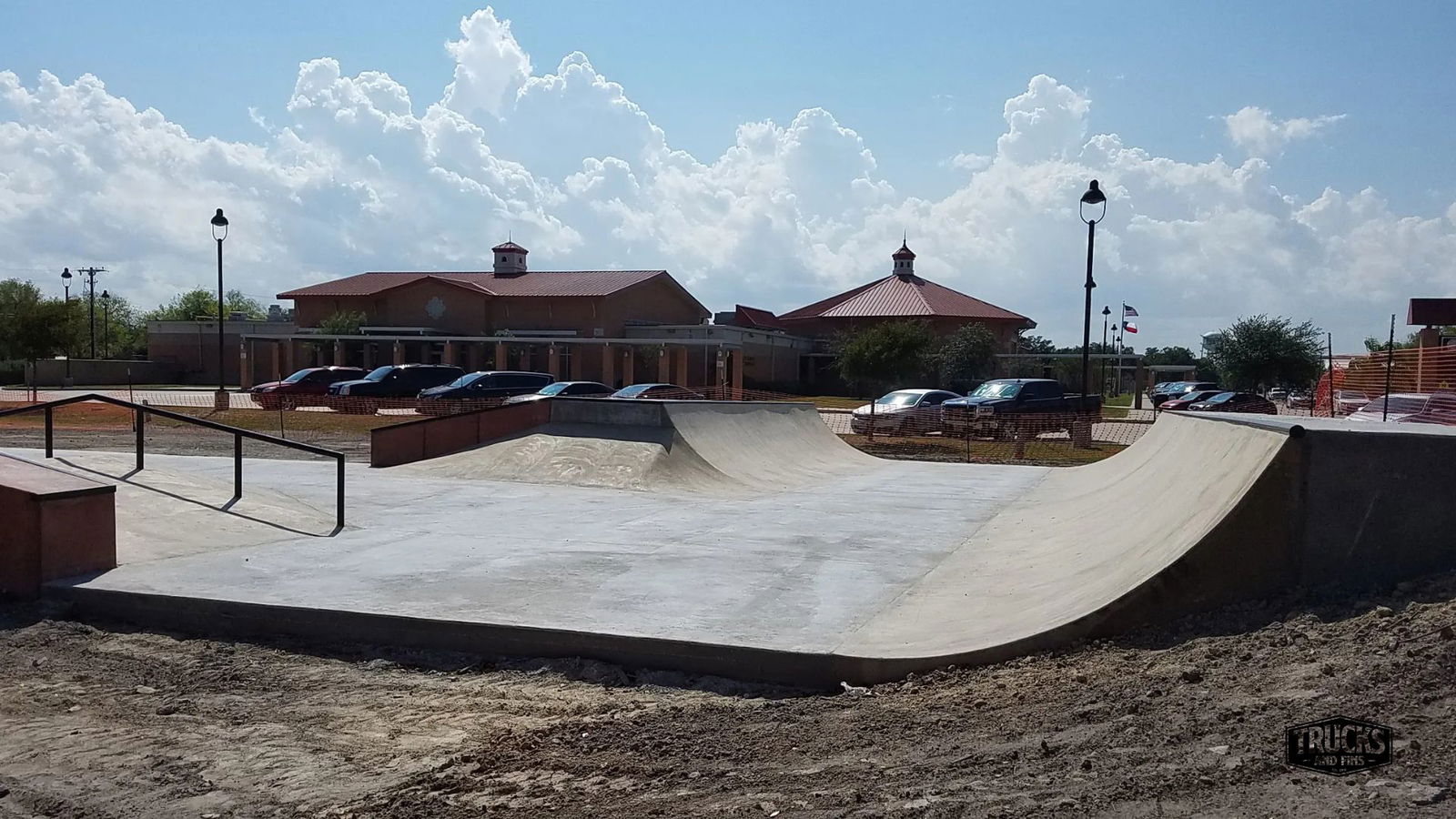 Kingsville’s first public skatepark is proudly located on Kleberg Avenue, nestled between Brookshire Pool and A.D. Harvey Elementary School, and just steps away from both the Kleberg County Sheriff’s Office and Kingsville Police Department. Situated 40 miles south of Corpus Christi, Kingsville is home to the historic King Ranch and Texas A&M University–Kingsville, which serves approximately 13,000 students. The skatepark features over 6,500 square feet of cast-in-place concrete terrain, thoughtfully designed to accommodate all ages and skill levels. Its inclusive layout and central location have made it an instant destination for skaters, bikers, and scooter riders across South Texas.