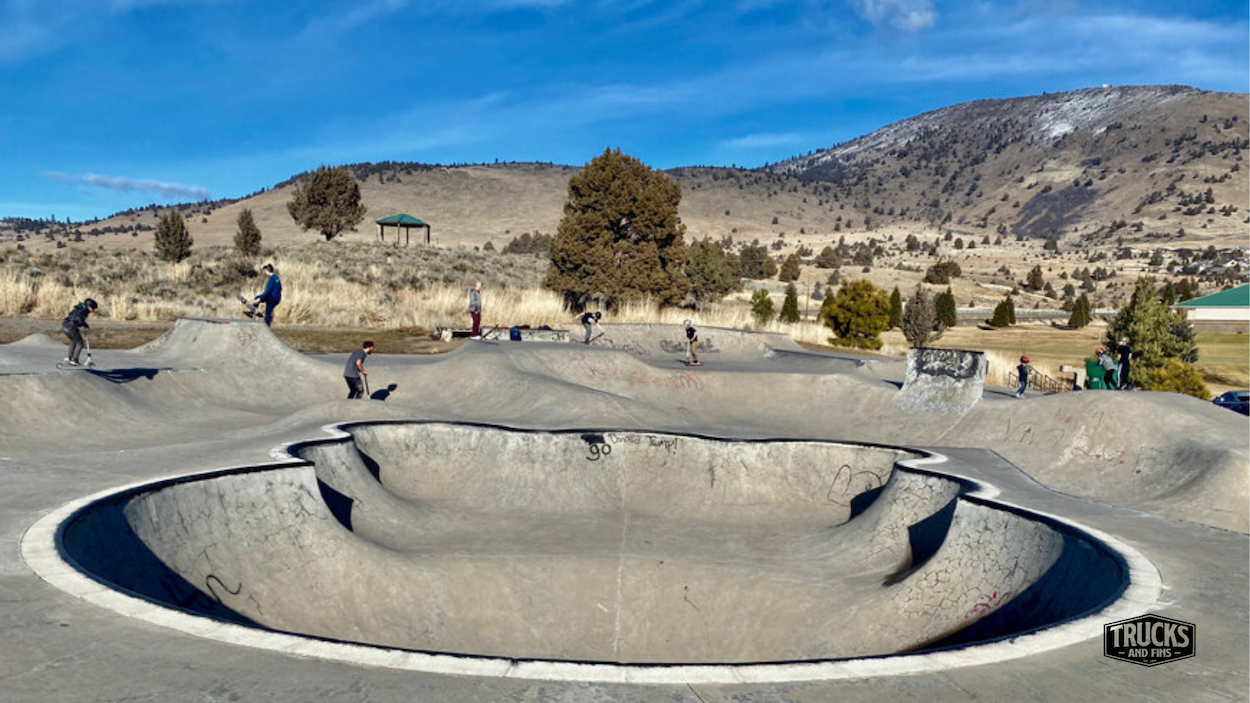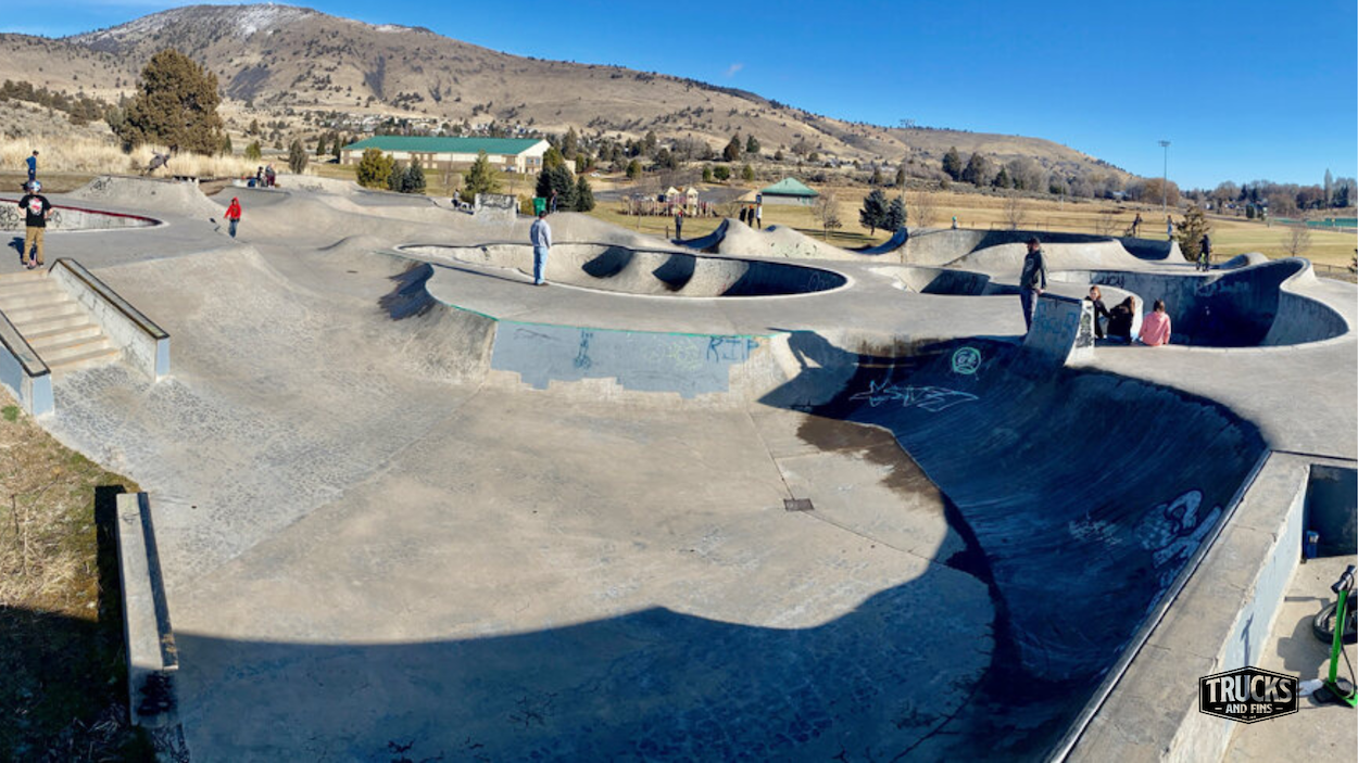 Klamath Falls skatepark is a concrete park featuring four bowls and a transition area. The skatepark is located in Steen sport park and was built by Dreamland skateparks.