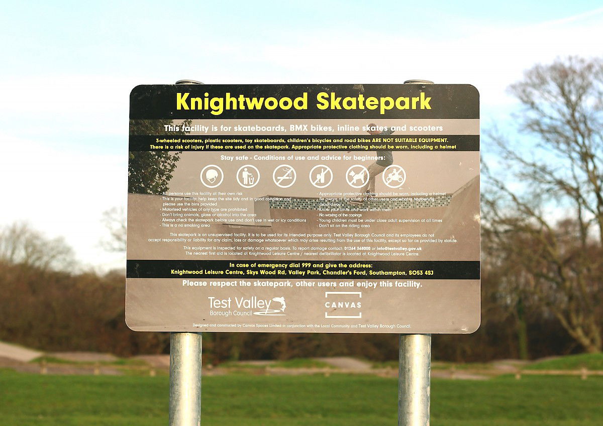 Knightwood Skatepark, also known as Chandlers Ford Skatepark, was built by Canvas Spaces and opened in 2018. It is located next to Knightwood Leisure Centre in Eastleigh, Hampshire. This small but well-designed concrete park features a flow park layout with a variety of elements such as a spine, quarterpipes, a funbox, jump boxes, and ledges. Its design focuses on providing a versatile space suitable for skateboarders, BMX riders, and scooter users. The park was developed to serve the local community and is free to use, enhancing recreational offerings in the area. Its design and construction reflect the growing demand for modern, accessible skate facilities.