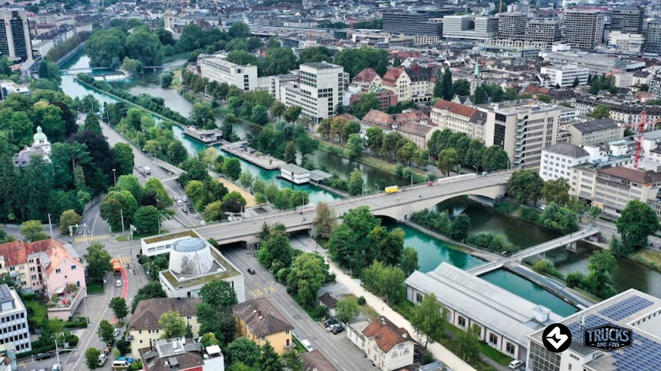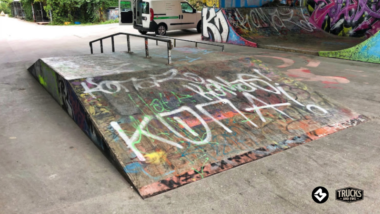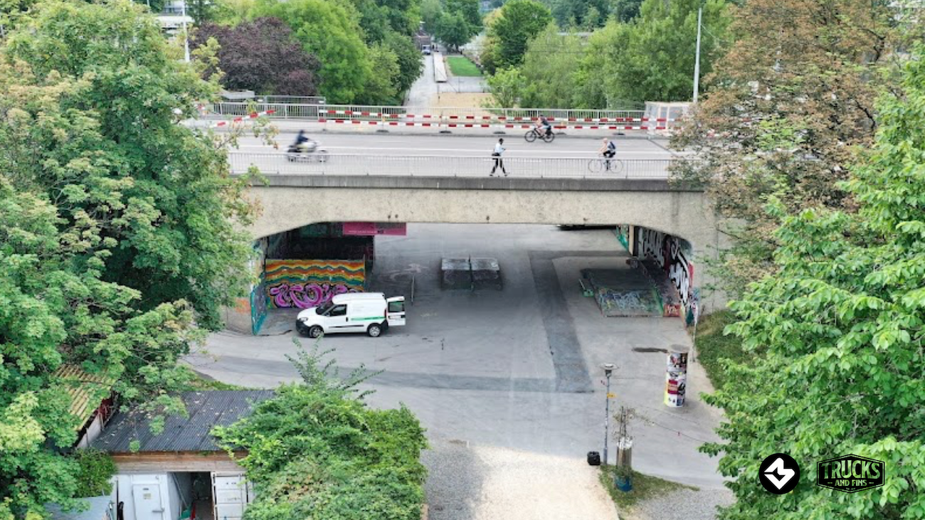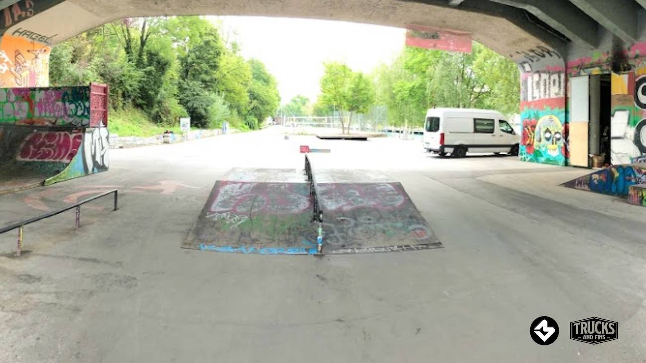 The concrete Korny skate park is located in Zurich at the upper Letten under the Kornhaus bridge.
