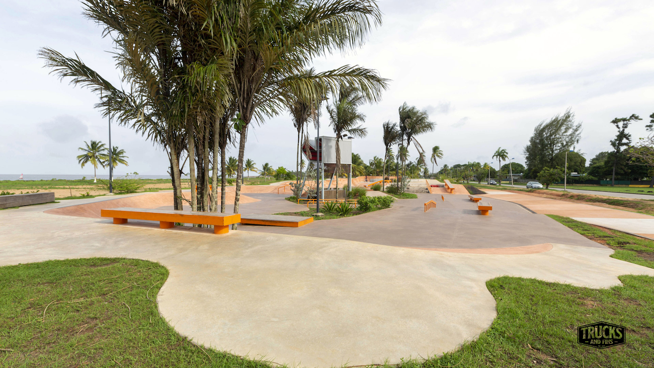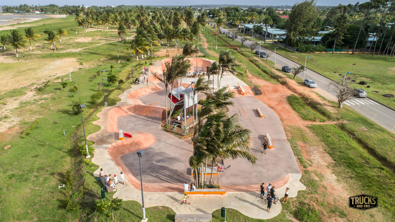 The Kourou Skatepark, officially known as the Skatepark Régional de la Cocoteraie, is located in Kourou, French Guiana. Situated near the picturesque Cocoteraie Beach, this skatepark offers enthusiasts a versatile space to practice and showcase their skills. The skatepark spans approximately 1,680 square meters and was completed in July 2017. It was developed through a collaboration between Constructo Skatepark Architecture and Botanik Paysage, with a project cost of €540,000 (excluding taxes).