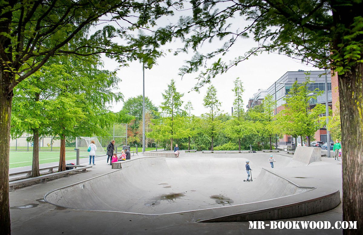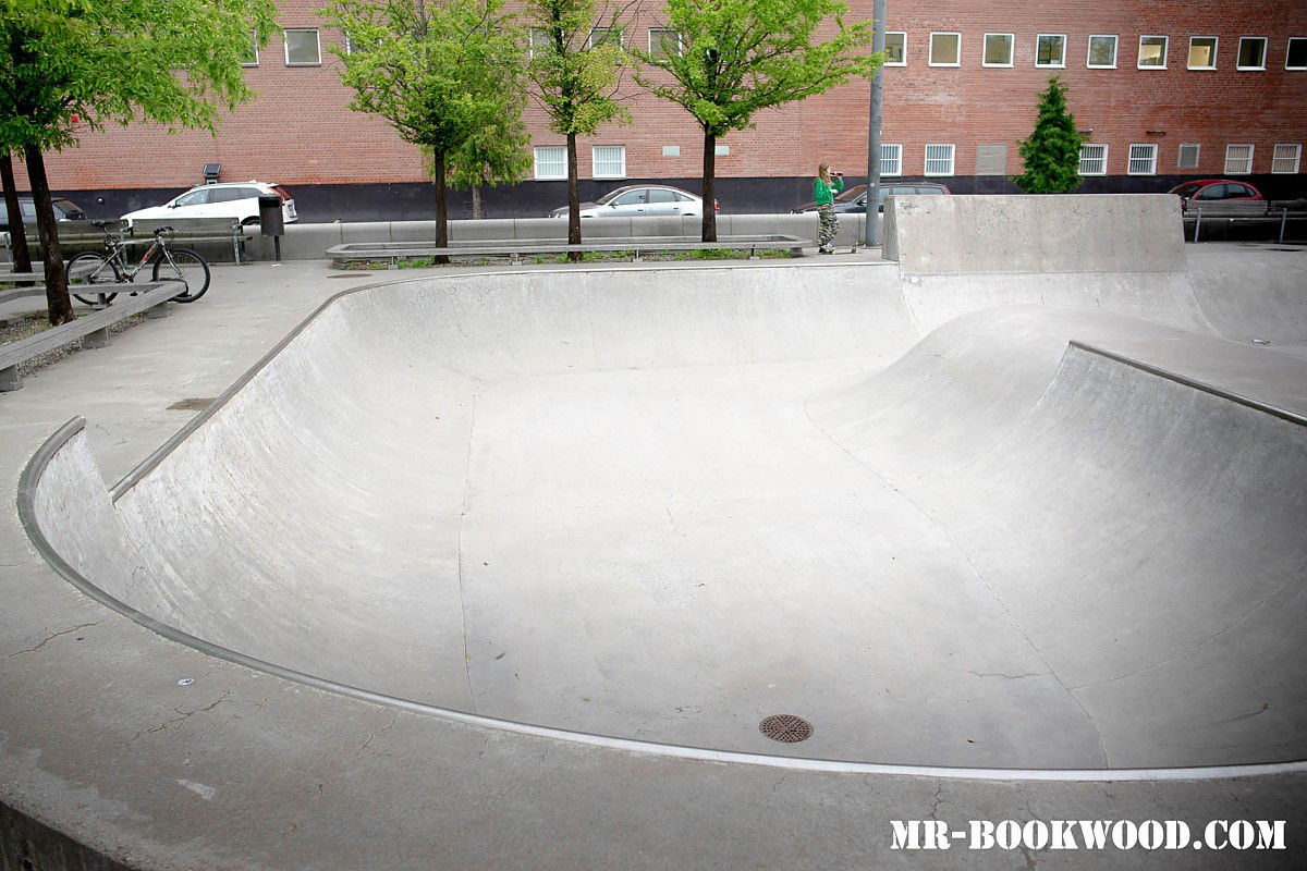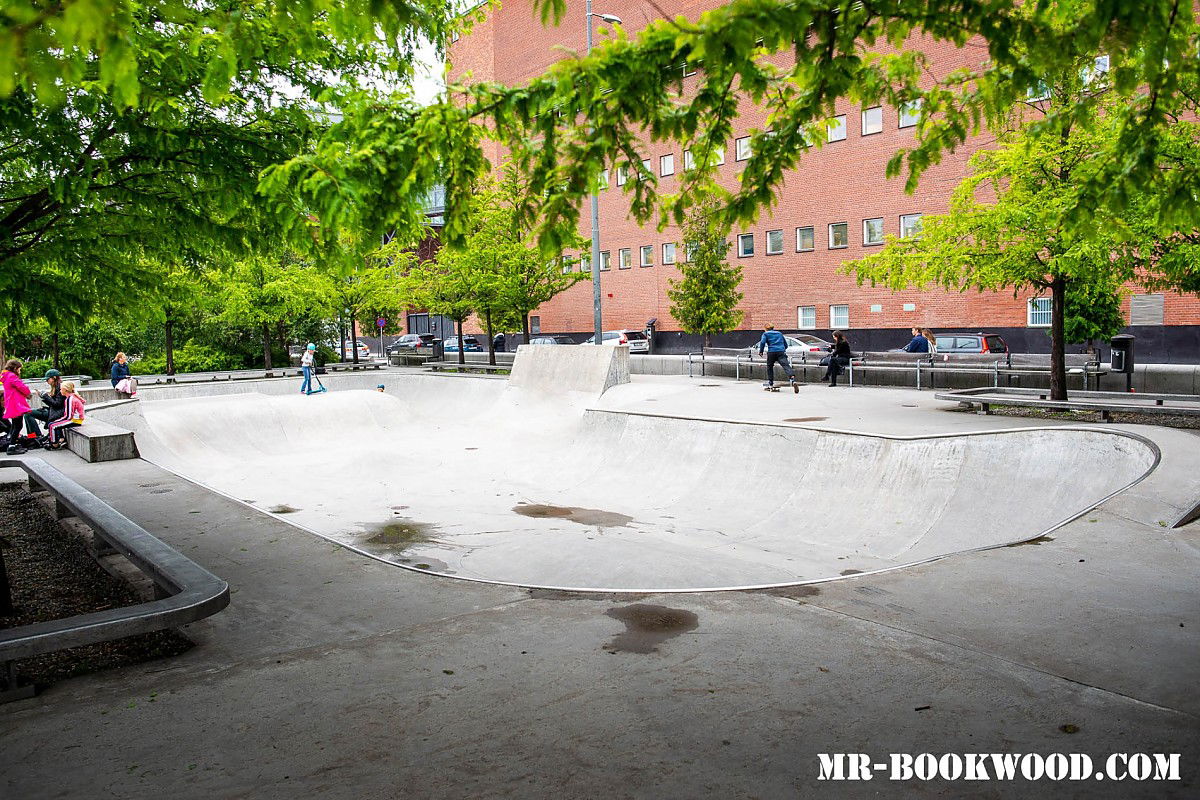 Kristinebergs skatepark is a concrete park featuring a bowl with built in miniramp and jumpbox.