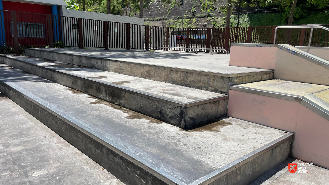 Kwok Shui Road Park Skateboard Ground is a popular skateboarding facility located in Tsuen Wan, Hong Kong. The park features a variety of street-style obstacles, including ledges, banks, a nine-stair handrail, and manual pads, catering to skaters of different skill levels.The skatepark is easily accessible from the Tai Wo Hau MTR Station.