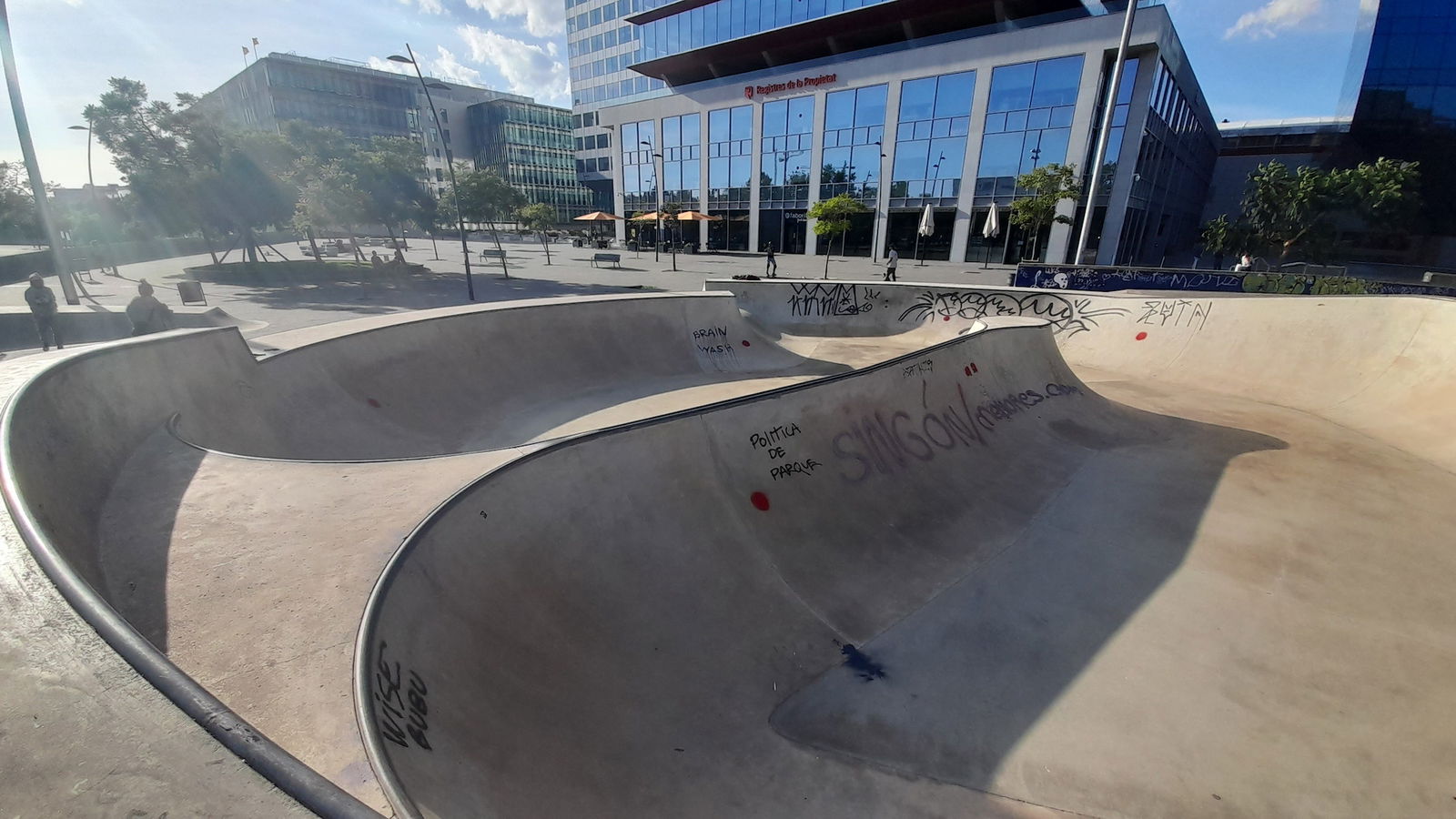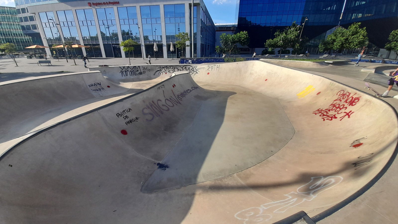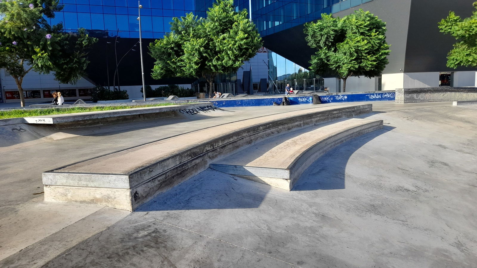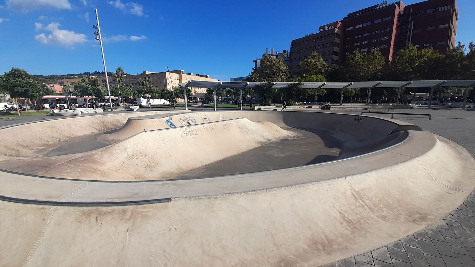 Buena localización con un par de bowls, unas olas, algunos planos inclinados, boxes y algún rail. Faltaría algo más de street pero está muy bien para hacer bowl. A partir de las 10 de la mañana en findes se peta de clases a niños.