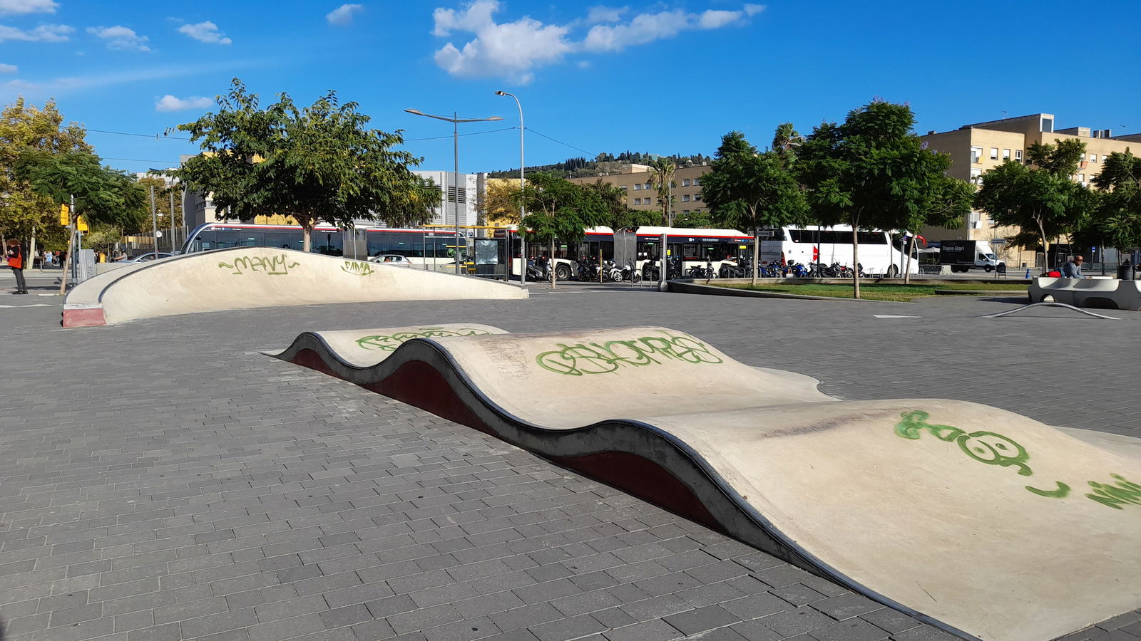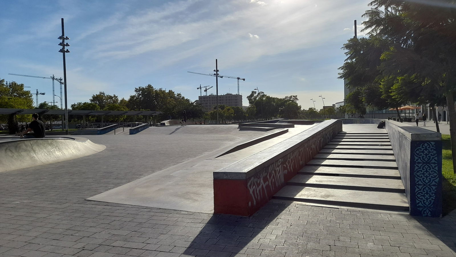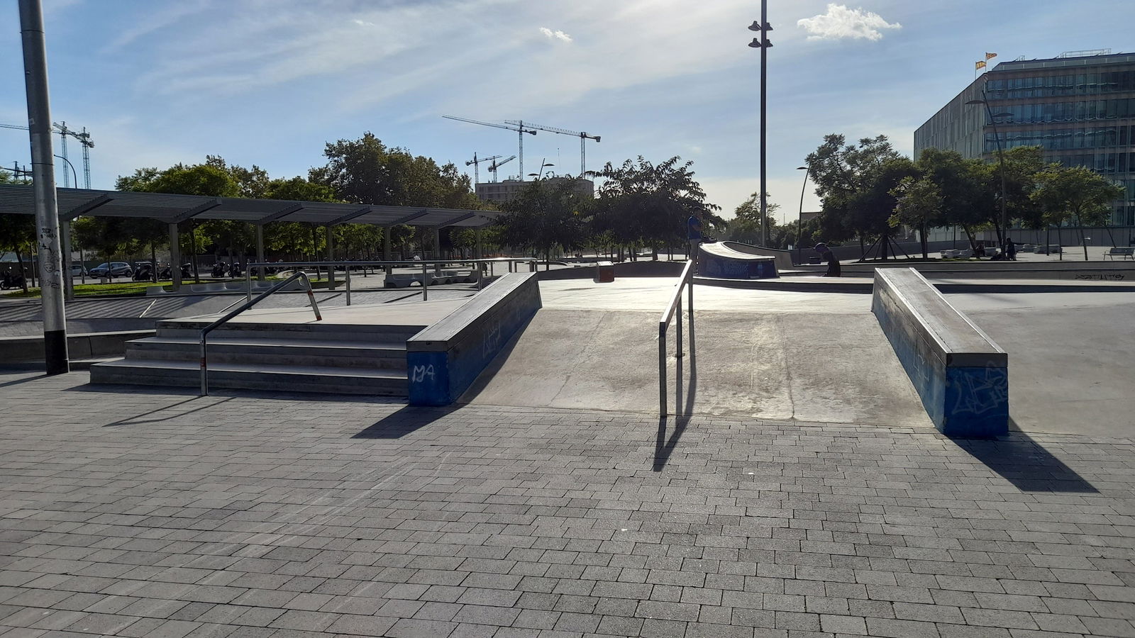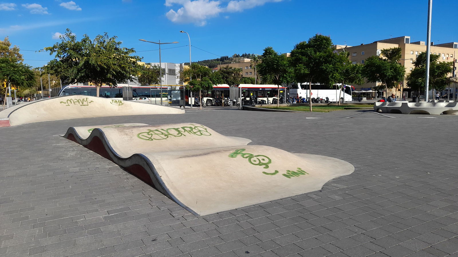 Buena localización con un par de bowls, unas olas, algunos planos inclinados, boxes y algún rail. Faltaría algo más de street pero está muy bien para hacer bowl. A partir de las 10 de la mañana en findes se peta de clases a niños.