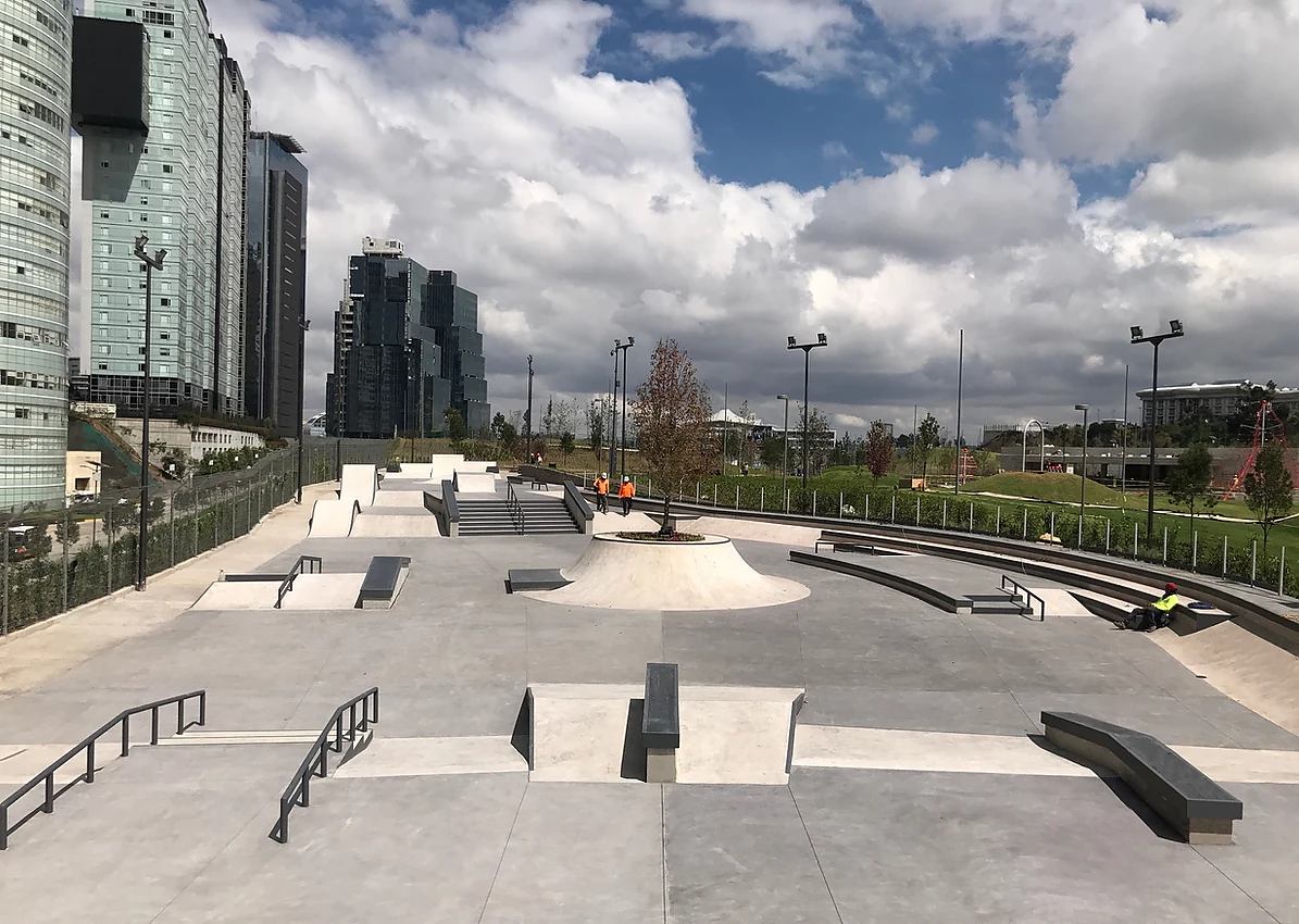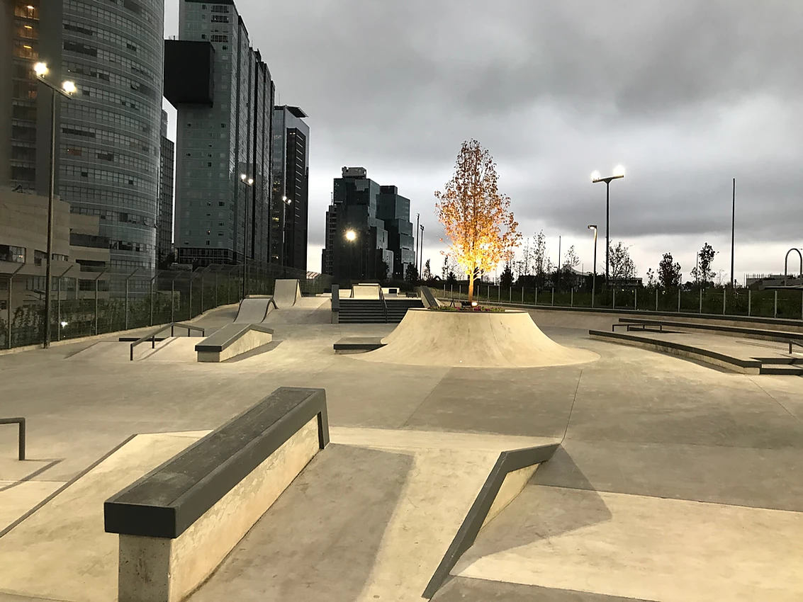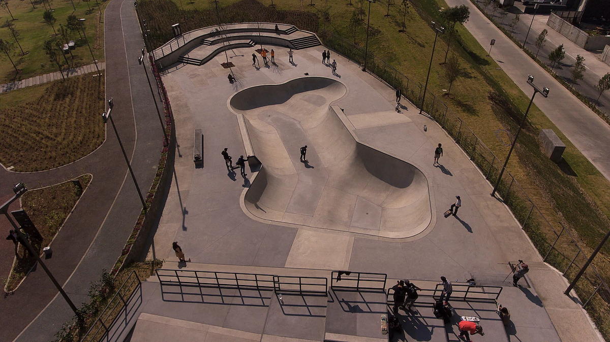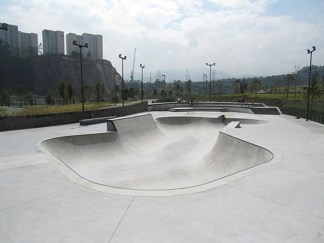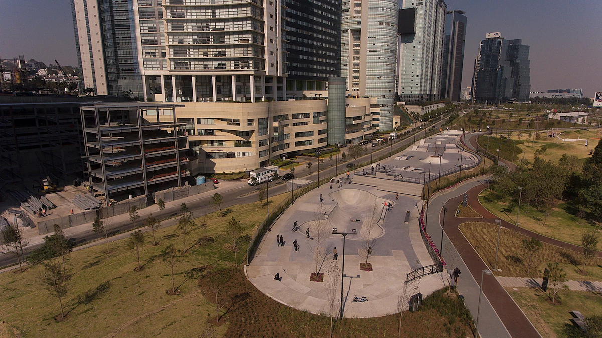 La Mexicana Skatepark, located in Mexico City's Santa Fe district, is part of La Mexicana Park, a large urban green space that opened in November 2017. Designed by Mario Schjetnan and Víctor Márquez, the park was created in response to local residents' calls for more public spaces and green areas. It spans 70 acres, with 30% of the land sold to fund the park's development, while the remaining 70% was dedicated to the park itself. This park does not rely on public funds but instead generates revenue through its facilities, restaurants, and parking areas.