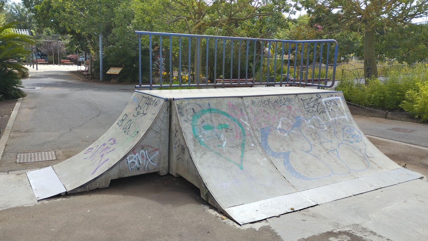 La Vega skatepark is a concrete park featuring several ramps, rails and a miniramp. The skatepark is located in Parque de La Vega.