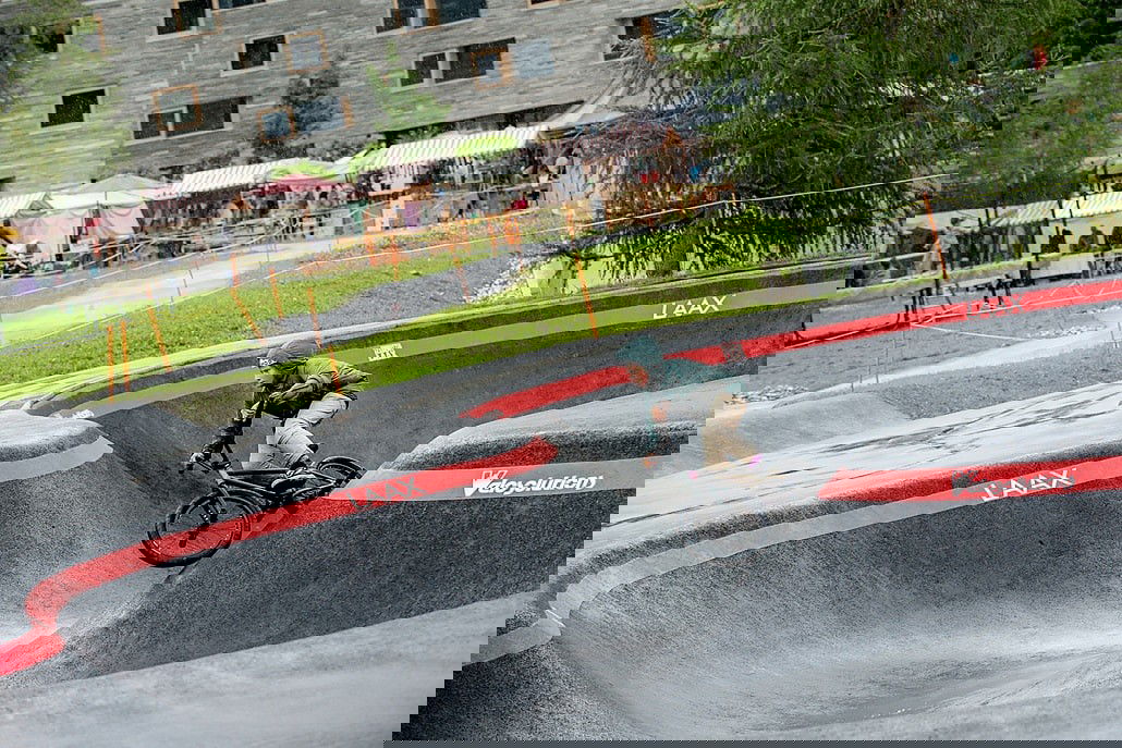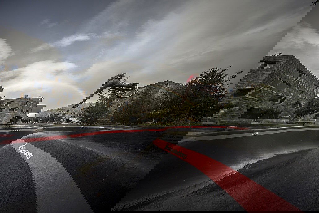 The Urban Wave was a first of its kind build. The pumptrack combines traditional pump track lines and skate bowl features. Located in the heart of the Rock Resort in Laax. The pumptrack is an asphalt bike and skateboard track built by Velosolutions.
