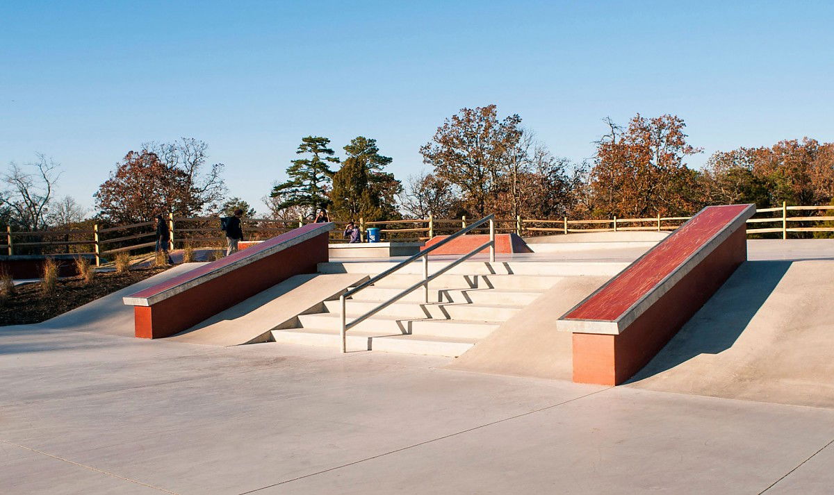 Lake Fairfax Skatepark in Reston, Virginia, is a 16,000-square-foot facility that opened in October 2012. Designed and built by SpohnRanch, the skatepark was part of the Fairfax County Park Authority's efforts to enhance recreational spaces in the region. The park’s layout includes a wide variety of features designed to cater to skateboarders of all skill levels, including a clover-shaped bowl, multiple street features, ledges, rails, and banks. One unique aspect of the park is its streetscape-inspired design, featuring "skateable art" elements that add to its aesthetic appeal.