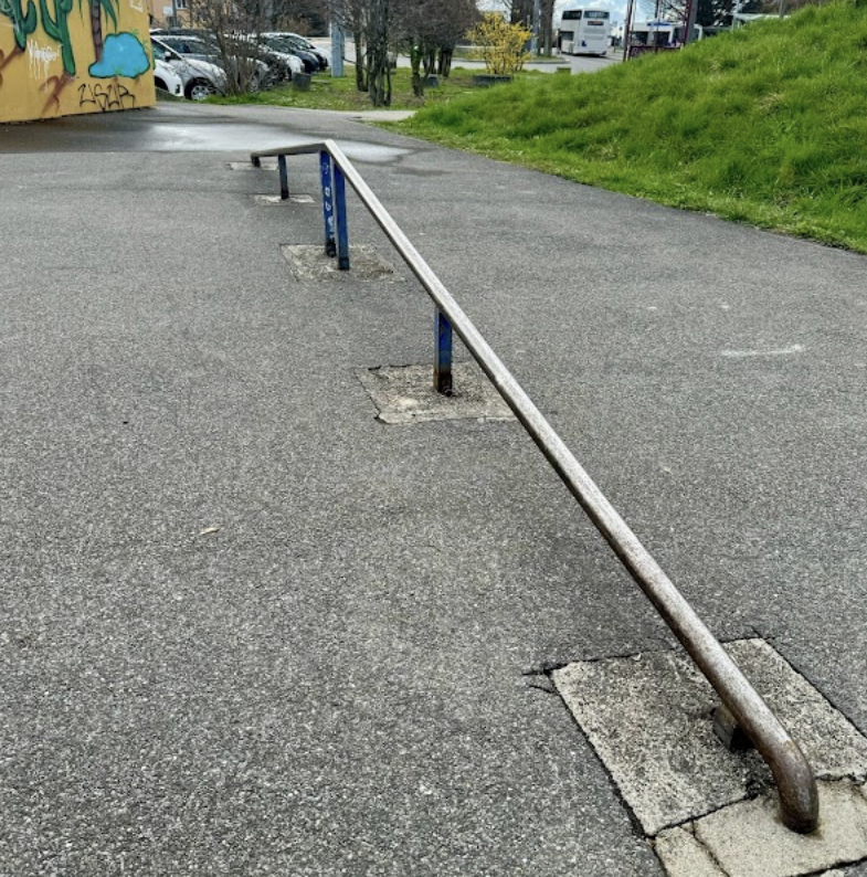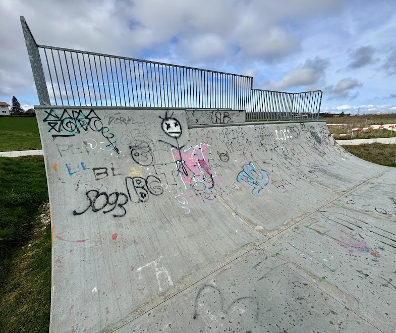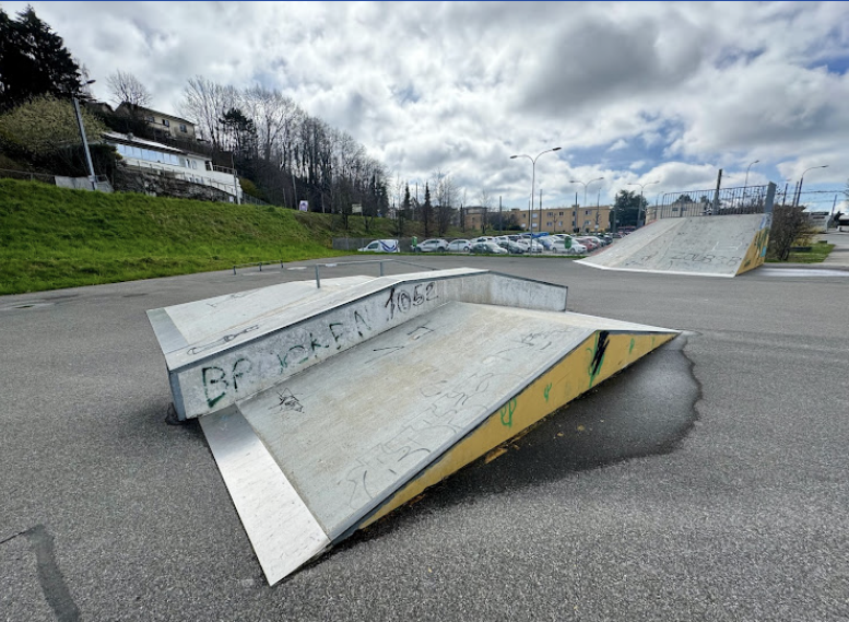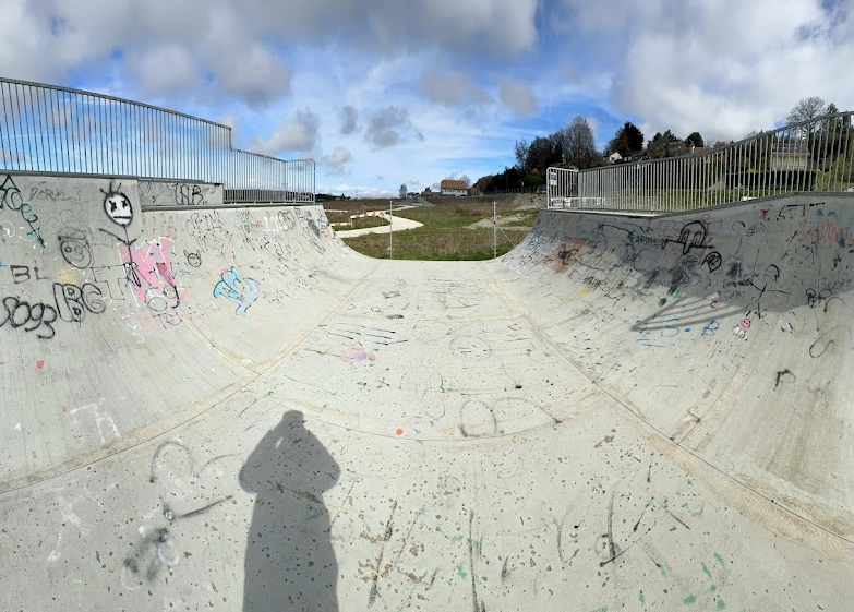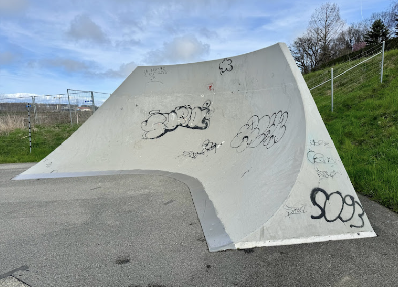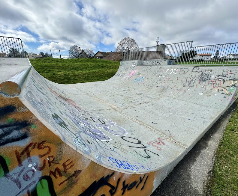 Mont-sur-Lausanne skatepark is made up of a back and forth run with a quarter pipe and bank on the sides of a funbox. The skatepark also features a miniramp and several other obstacles.