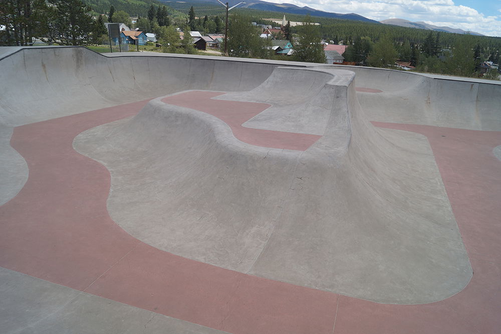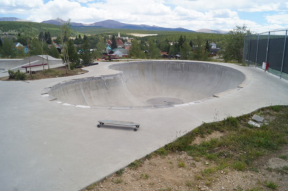 Leadville skatepark, also known as Huck Finn skatepark, is a large park featuring a pool, large bowl and street section. This is a large cement skatepark with a GREAT vert/transition section. A fun street section with a variety of obstacles, as well as a stand alone bean shaped pool bowl with cement coping.