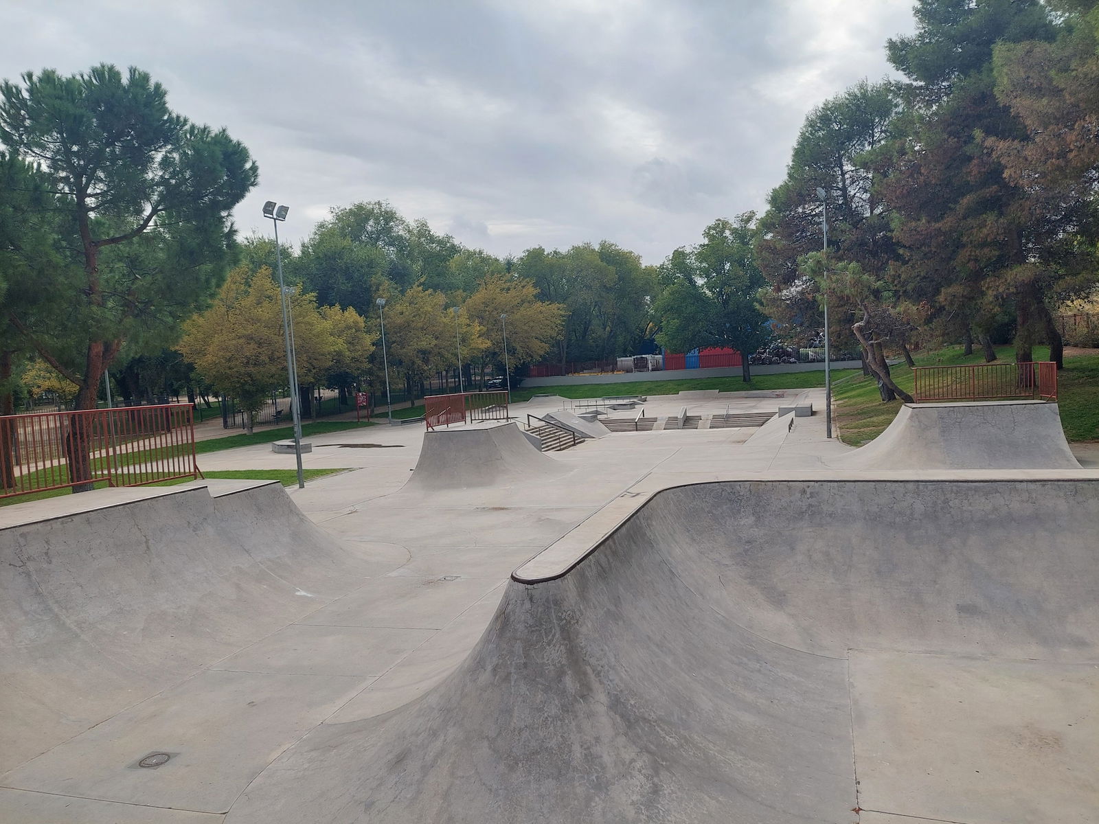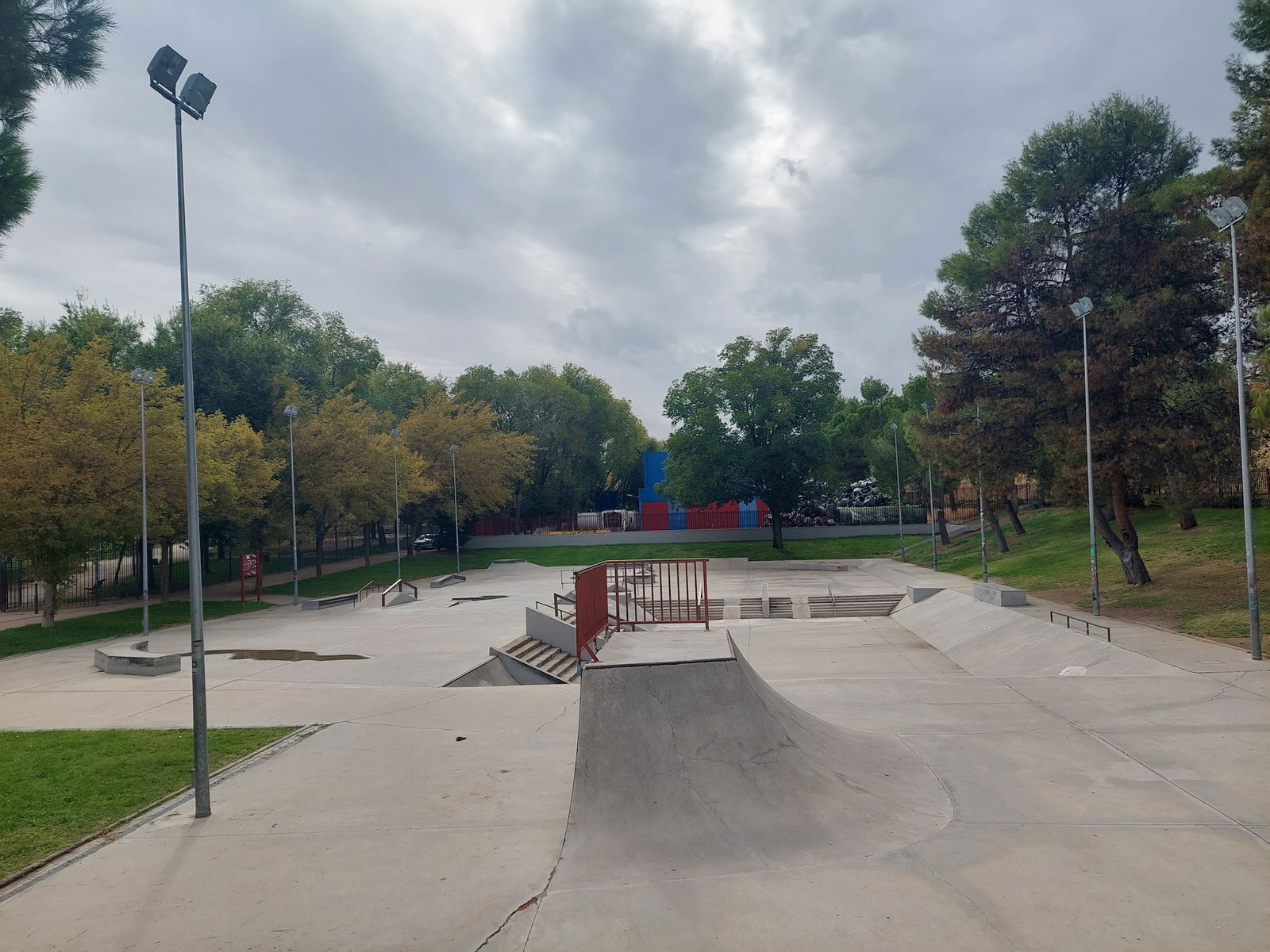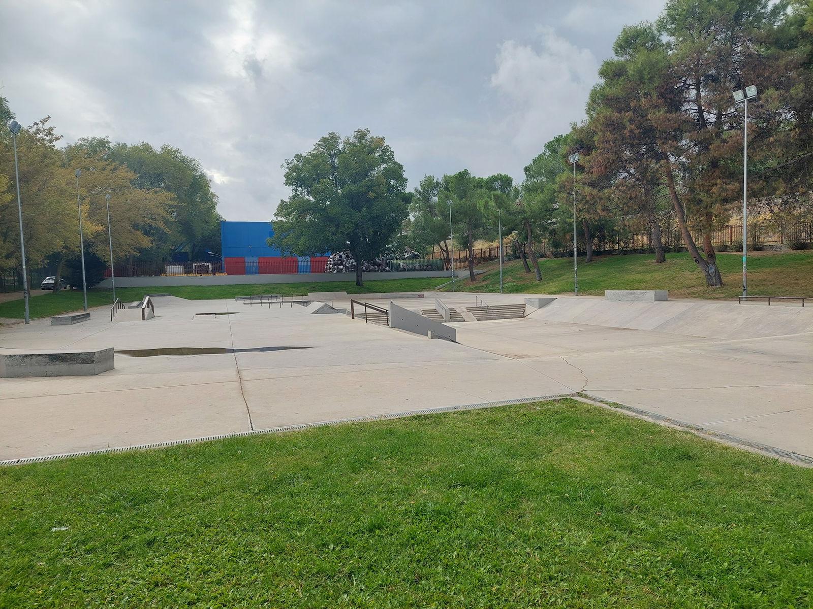 Leganés skatepark is a concrete skatepark featuring an open bowl, miniramp and large street area. The park has lights.