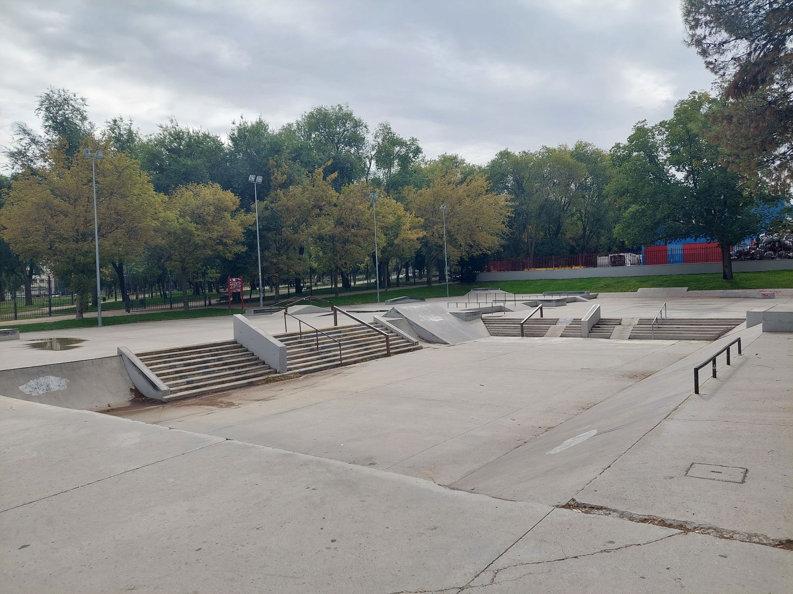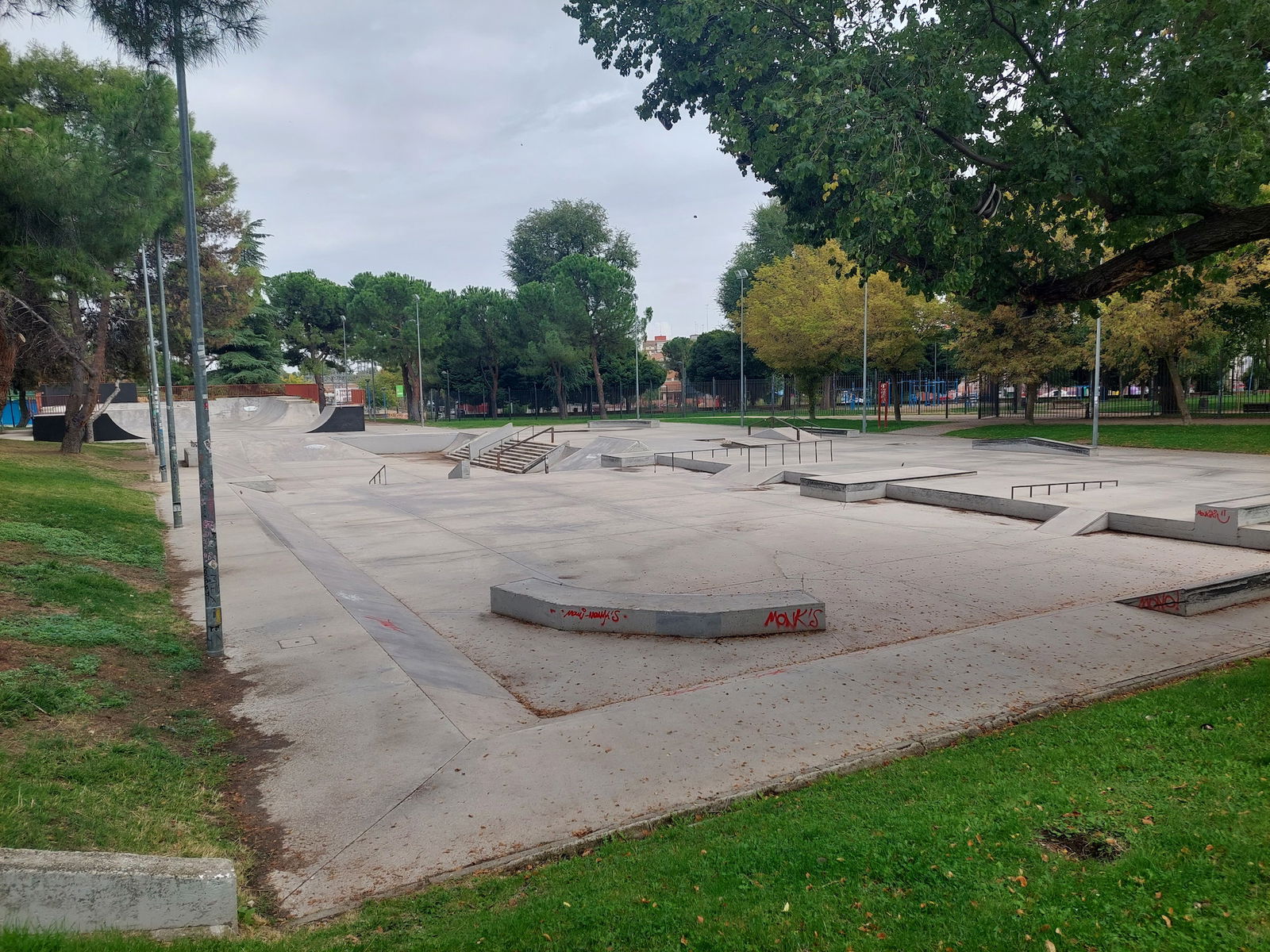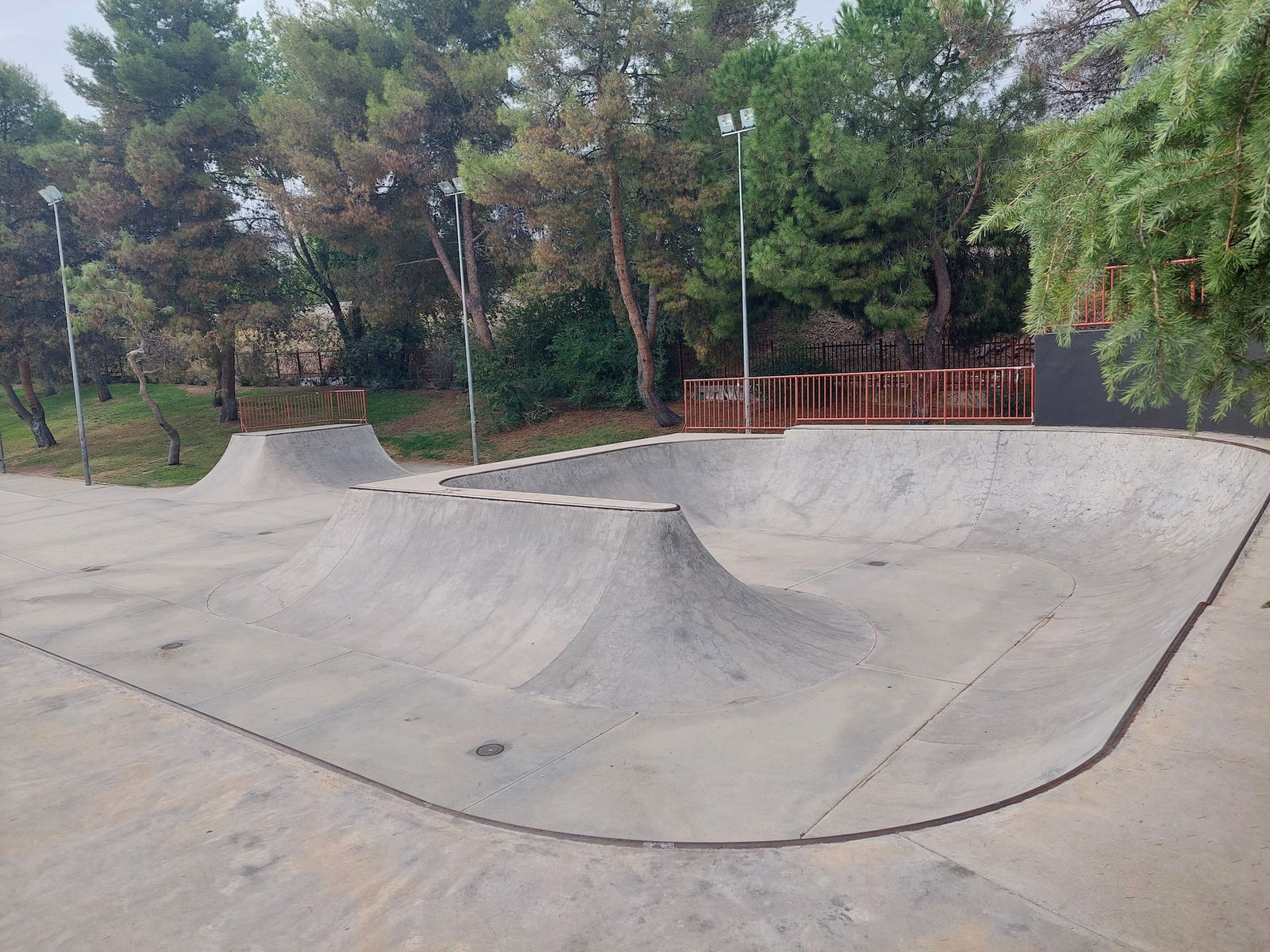Leganés skatepark is a concrete skatepark featuring an open bowl, miniramp and large street area. The park has lights.