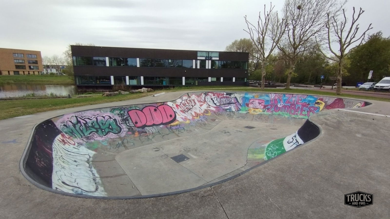 Leiden skatepark, aka S.O.R Skatepool Leiden, features a concrete bowl.