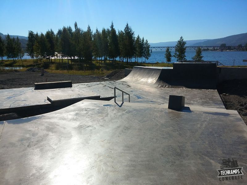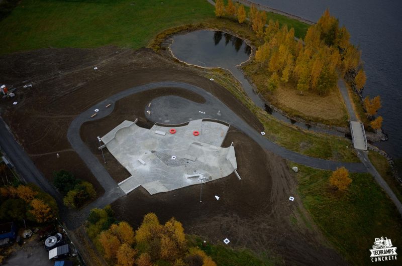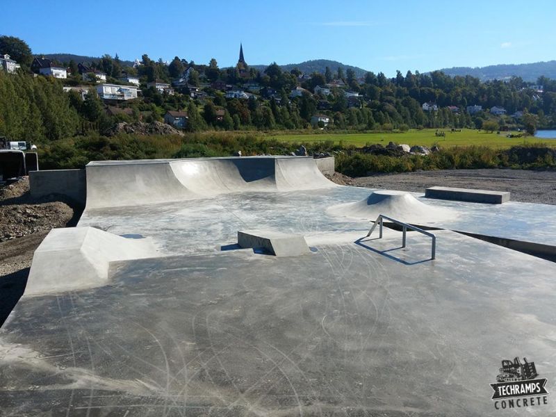 Lillehammer Skatepark is a big concrete street park with ledge, handrail, bank, manualpad, quarterpipe. The skatepark was built in 2014 by Techramps and designed by Fritjof C. Krogvold.