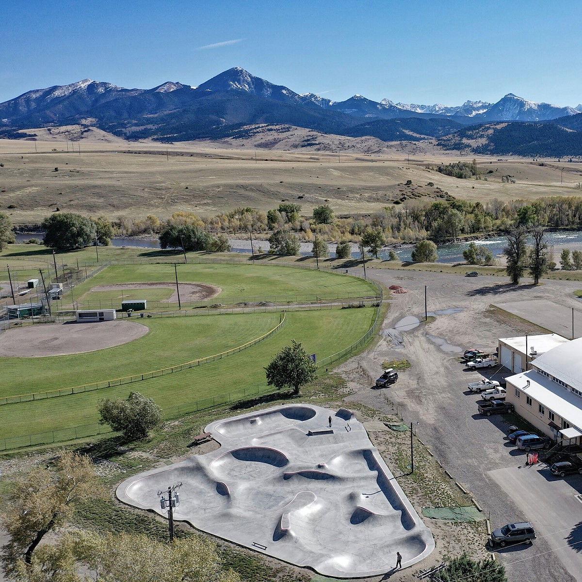 The Livingston Skatepark in Montana was designed and built by Evergreen Skateparks and completed in 2018. This park, located at 229 River Drive, is a modern facility that incorporates unique design elements, including flowing concrete transitions and a bowl feature. The project was supported by Montana Pool Service, a nonprofit founded by Pearl Jam's Jeff Ament, who is dedicated to building skateparks in rural Montana communities. The park was designed to cater to skaters of all skill levels, offering a mix of street obstacles and a smooth, flowing bowl.