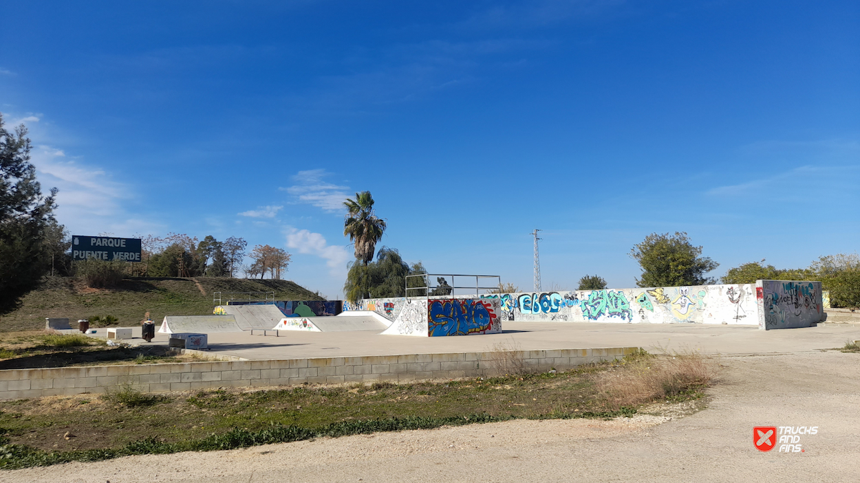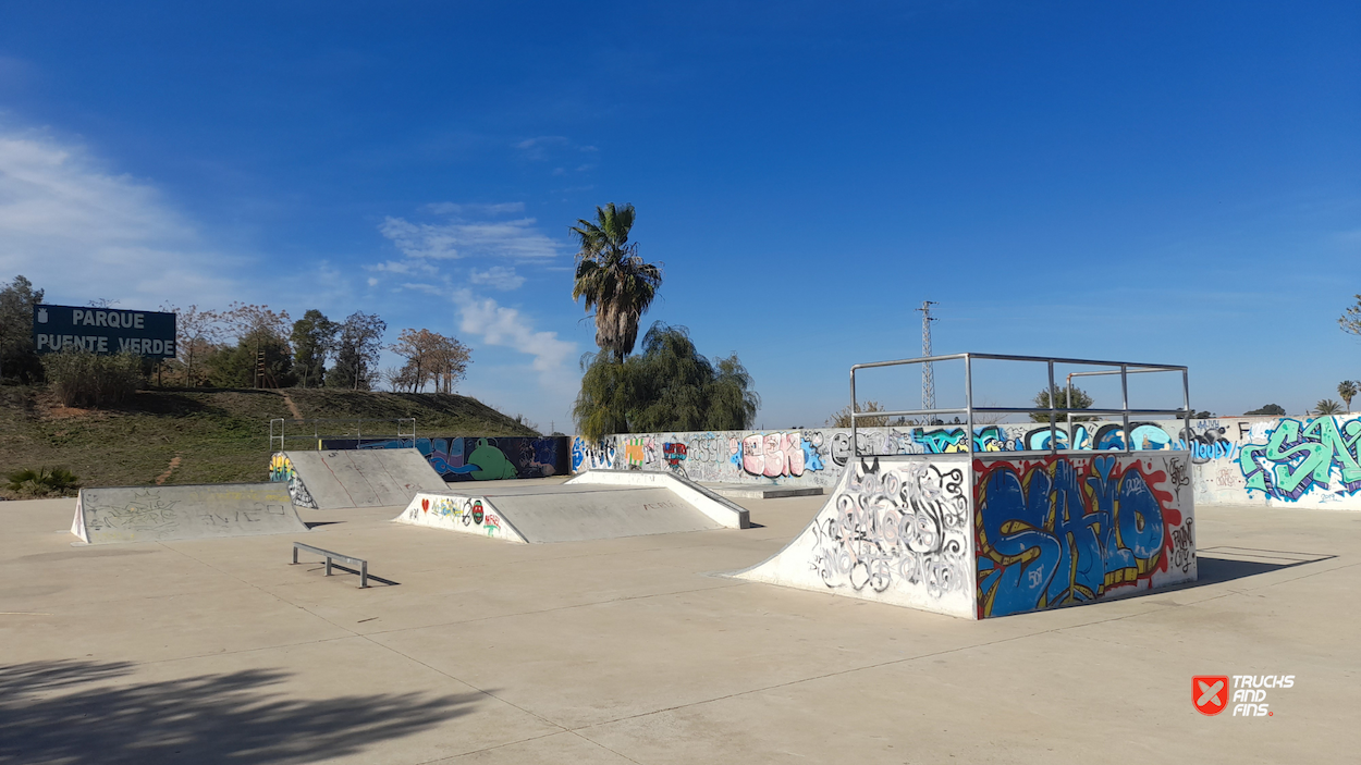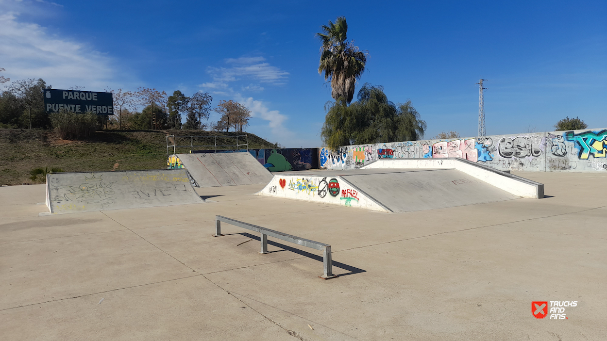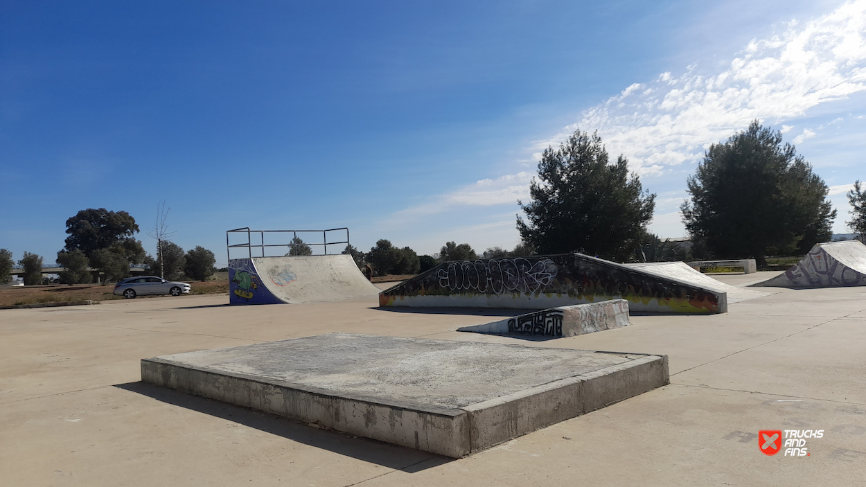 Los Palacios y Villafranca skatepark is made up of a back and forth run with a quarter pipe and bank on the sides of a funbox. The skatepark also features several other basic skateboarding obstacles.