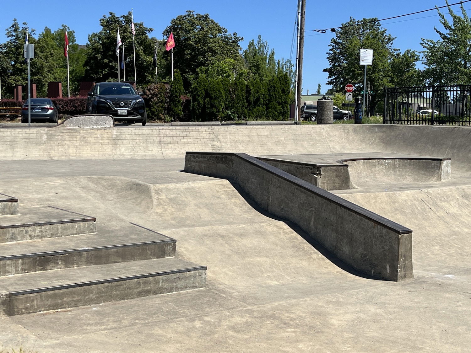 Gresham skatepark, aka Main City skatepark, is a concrete park featuring an open bowl kind of thing, connected to a street area.