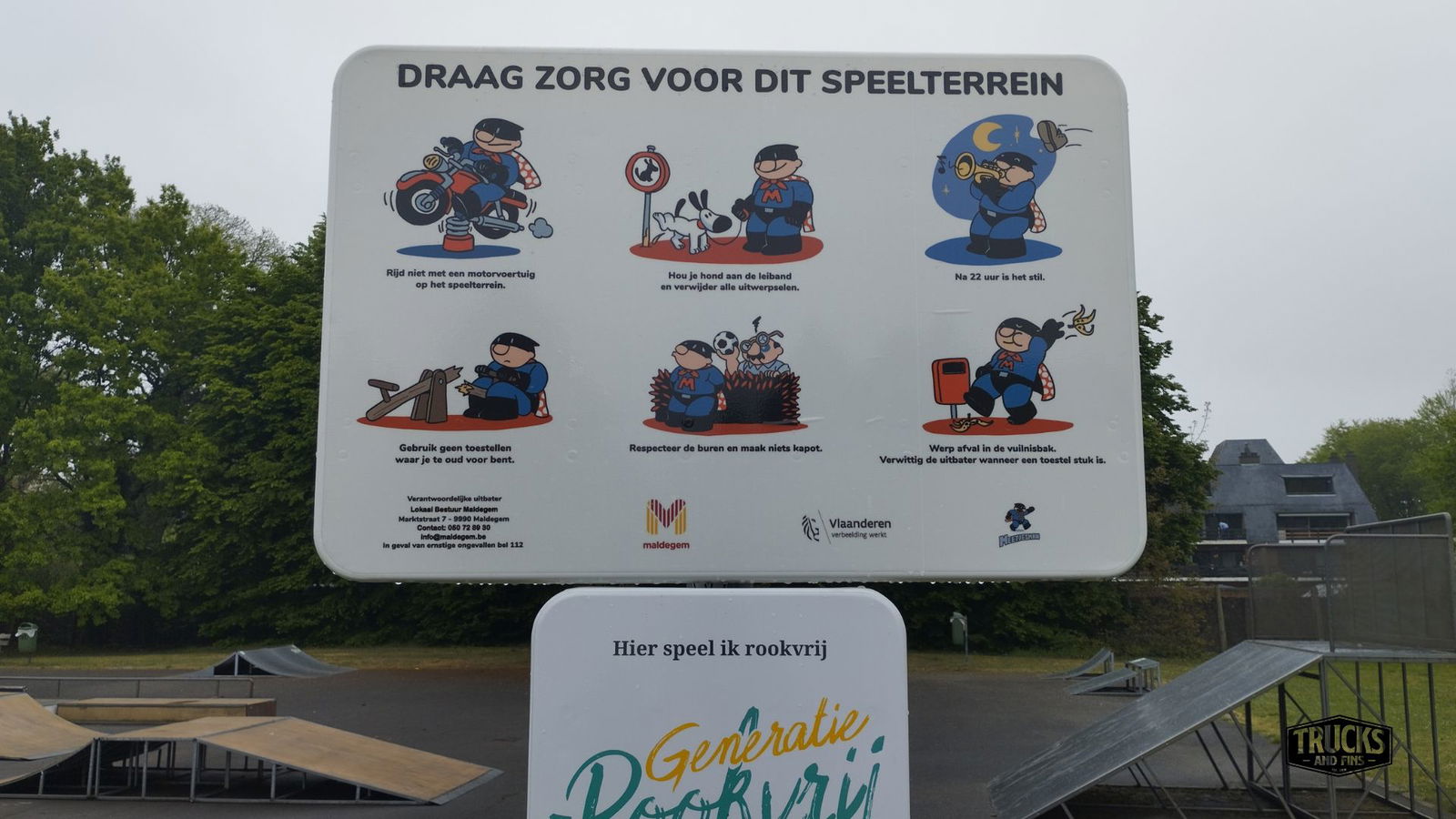 Maldegem skatepark is a small metal skatepark. The park is good enough to learn some basic skateboarding skills, but is definitely not a bucket list spot.