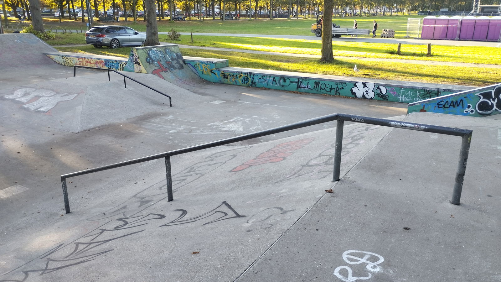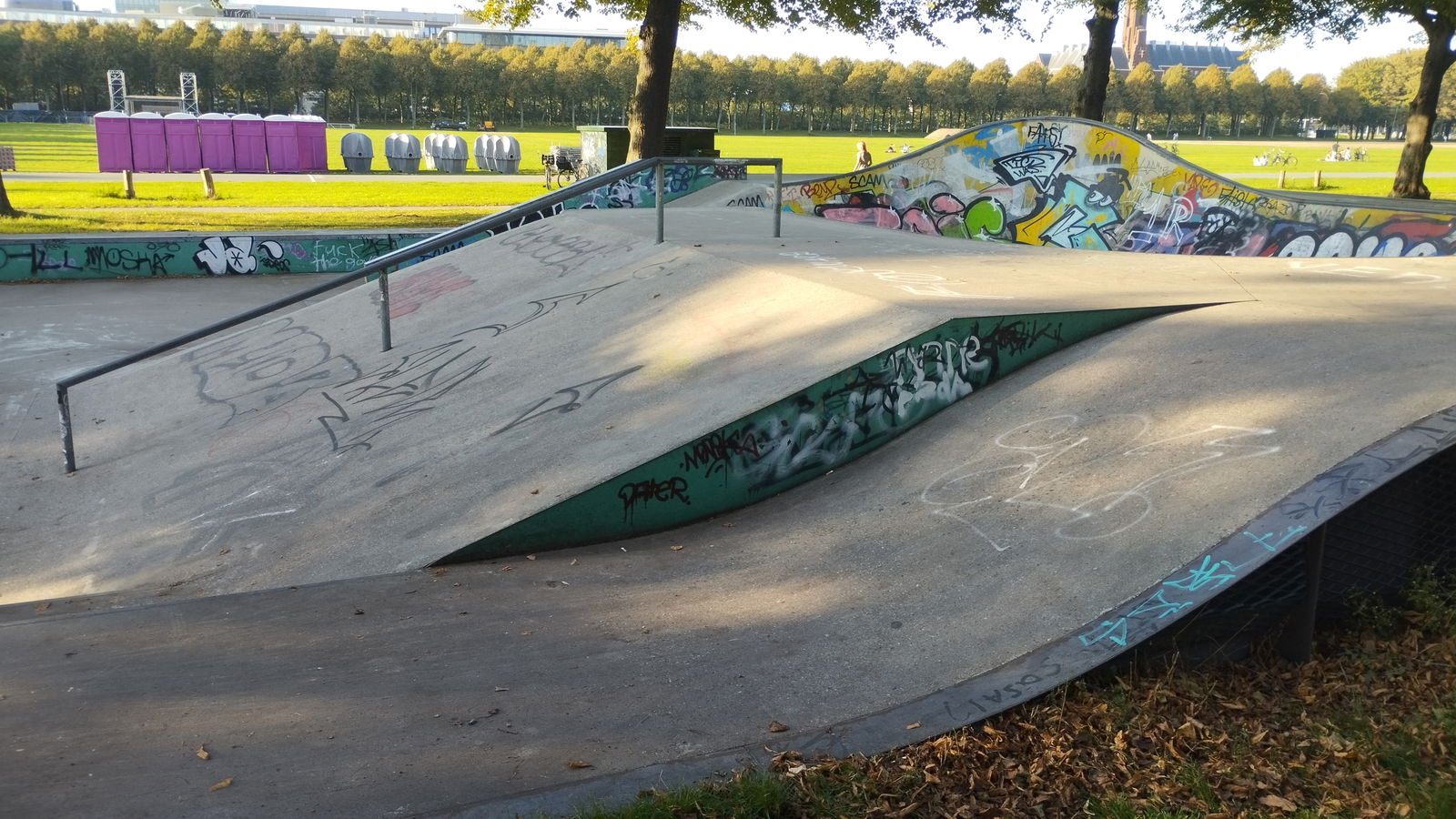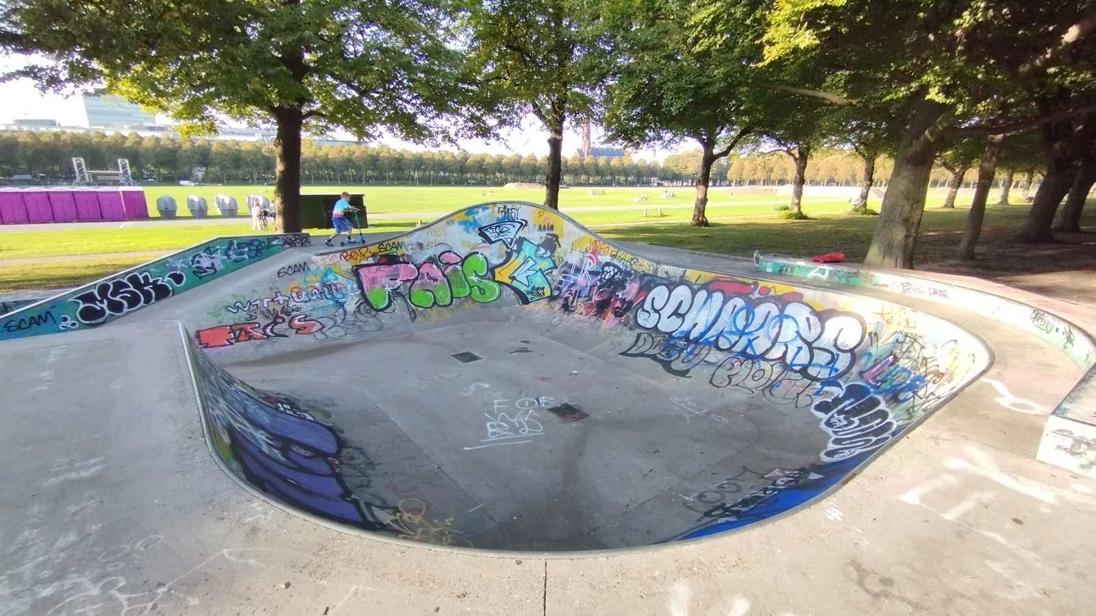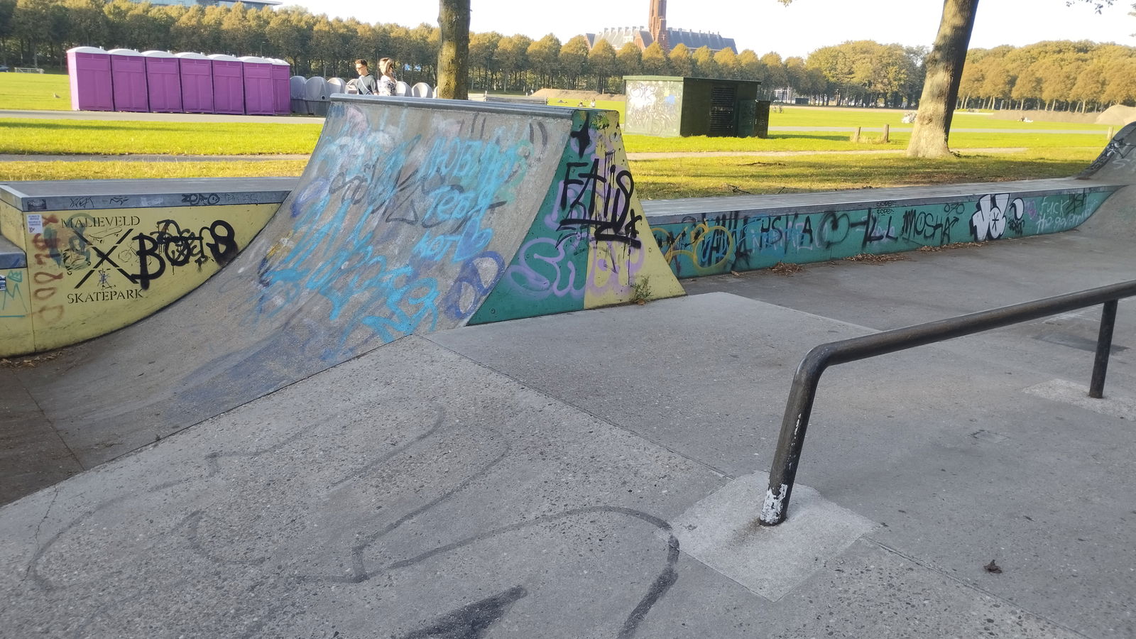 Malieveld skatepark is a concrete skatepark featuring a bowl and street area.